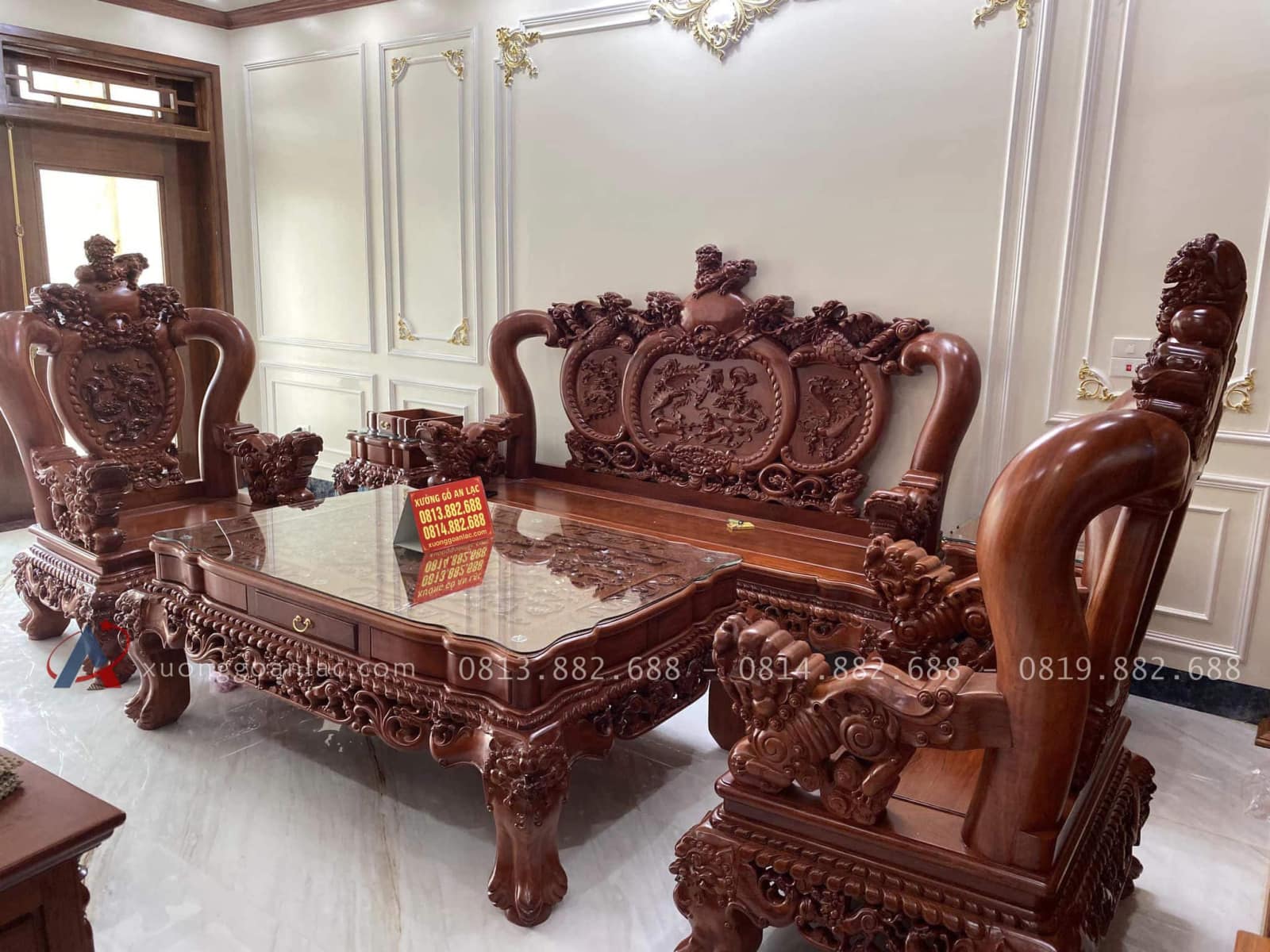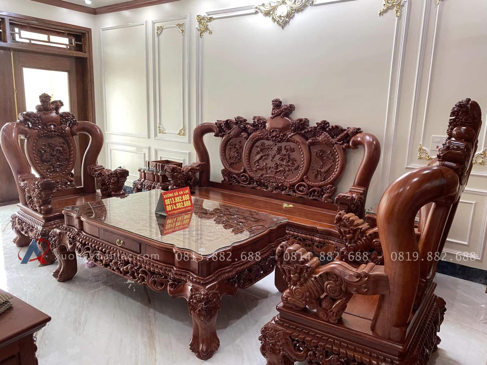 Xưởng Gỗ An Lạc vừa bàn giao hoàn thiện bộ bàn ghế nghê đỉnh vào không gian phòng khách nhà anh Nam ở Đồng Nai. Cả gia đình anh đều rất hài lòng về chất lượng sản phẩm và dịch vụ tại cơ sở.