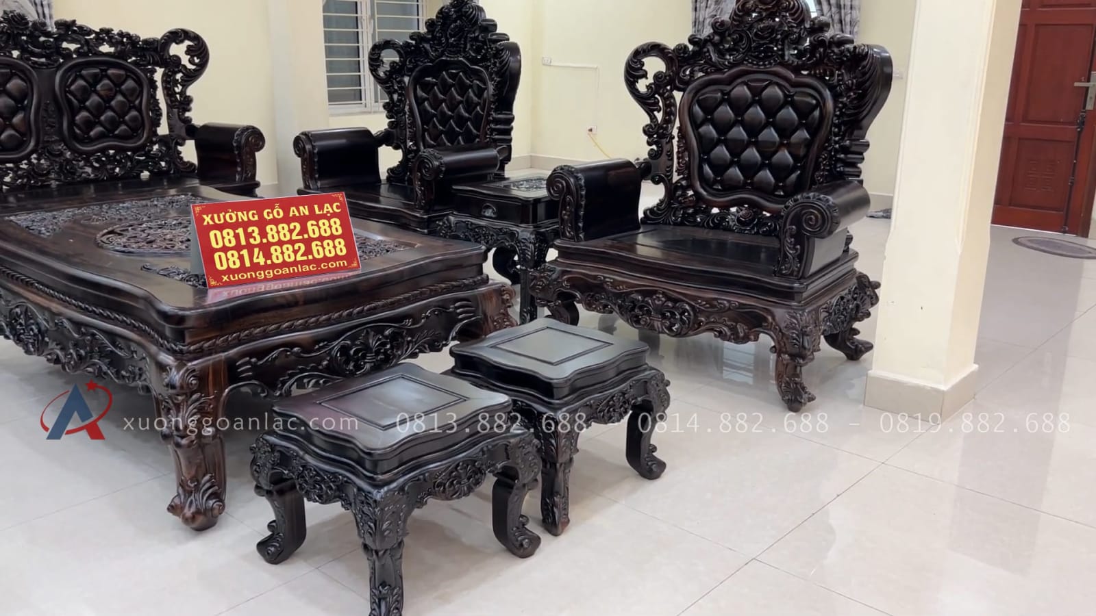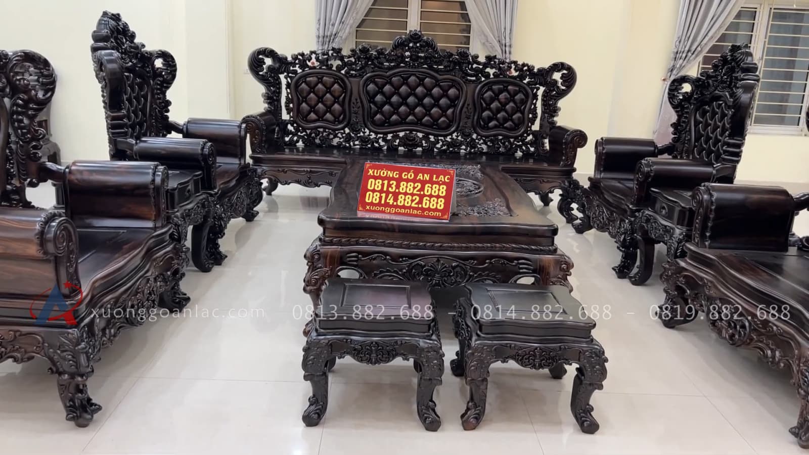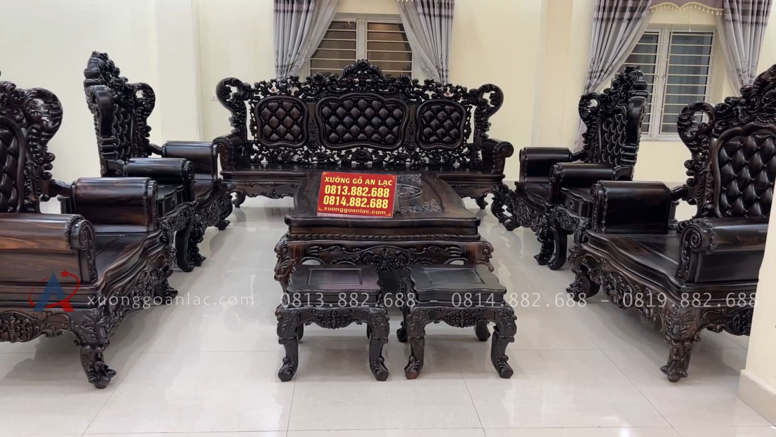Với mong muốn có một không gian phòng khách hoàn hảo nhất, chú Quốc ở Nghệ An đã không quản xa xôi đến trực tiếp Xưởng Gỗ An Lạc để xem mẫu và đặt hàng một bộ bàn ghế louis hoàng gia chất liệu gỗ mun Lào cao cấp gồm 10 món cực hoành tráng. Đây là mẫu siêu phẩm hàng vip được rất nhiều khách hàng đại gia yêu thích, mời các bác cùng chiêm ngưỡng thành phẩm.