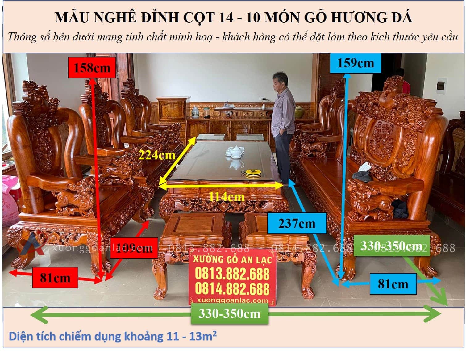 ![[Bàn giao] Bộ bàn ghế Minh Nghê 3 đầu tay 14 gỗ hương đá 10 món (chú Khôi, Tuyên Quang) 22 KÍCH THƯỚC MẪU NGHÊ ĐỈNH CỘT 14 - 10 MÓN GỖ HƯƠNG ĐÁ](https://xuonggodongky.com/wp-content/uploads/2022/05/MAU-NGHE-DINH-COT-14-10-MON-GO-HUONG-DA.jpg)