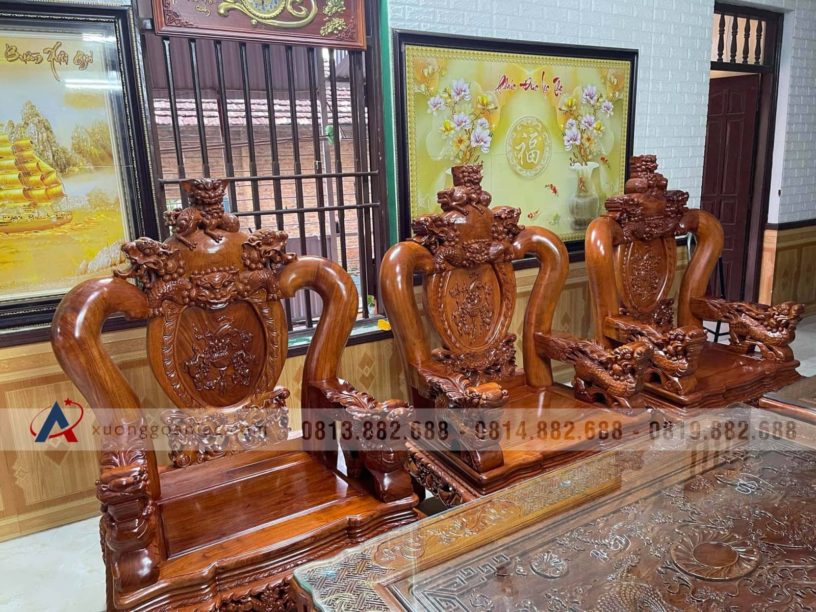 Bộ bàn ghế Nghê Bảo Đỉnh hàng thửa đục tay là nội thất cao cấp được ưa thích tại xưởng gỗ An Lạc. Anh Thanh đặt xưởng làm bộ tay cột 14 gỗ hương đá 8 món từ cách đây 4 tháng xưởng em mới kịp làm cho gia chủ.Mời các bác chiêm ngưỡng: