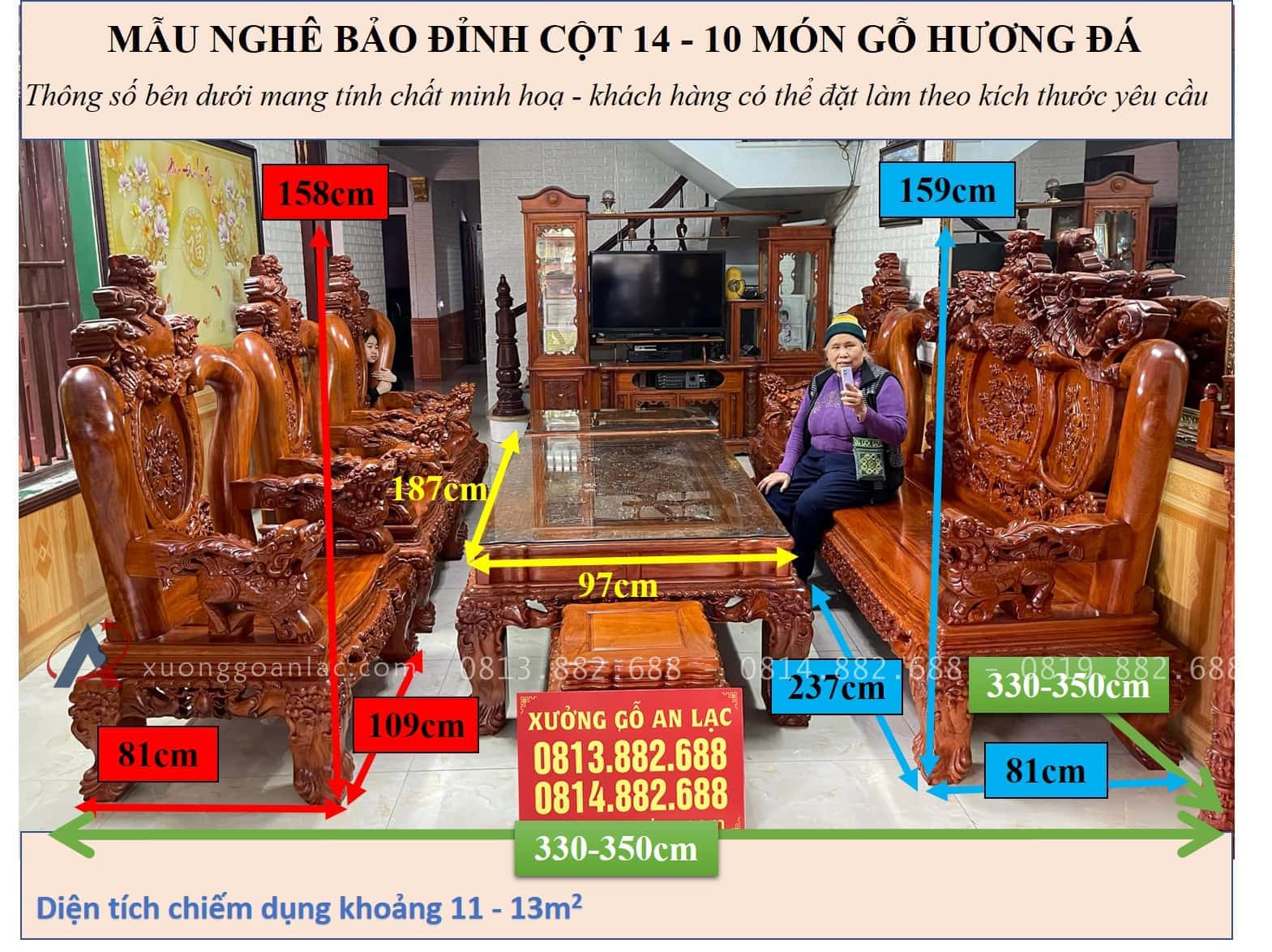 ![[Bàn giao] Bộ bàn ghế Nghê Bảo Đỉnh tay 14 gỗ hương đá 8 món (anh Thành, Hòa Bình) 13 KÍCH THƯỚC MẪU NGHÊ BẢO ĐỈNH CỘT 14 - 10 MÓN GỖ HƯƠNG ĐÁ](https://xuonggodongky.com/wp-content/uploads/2022/05/MAU-NGHE-BAO-DINH-COT-14-10-MON-GO-HUONG-DA.jpg)
