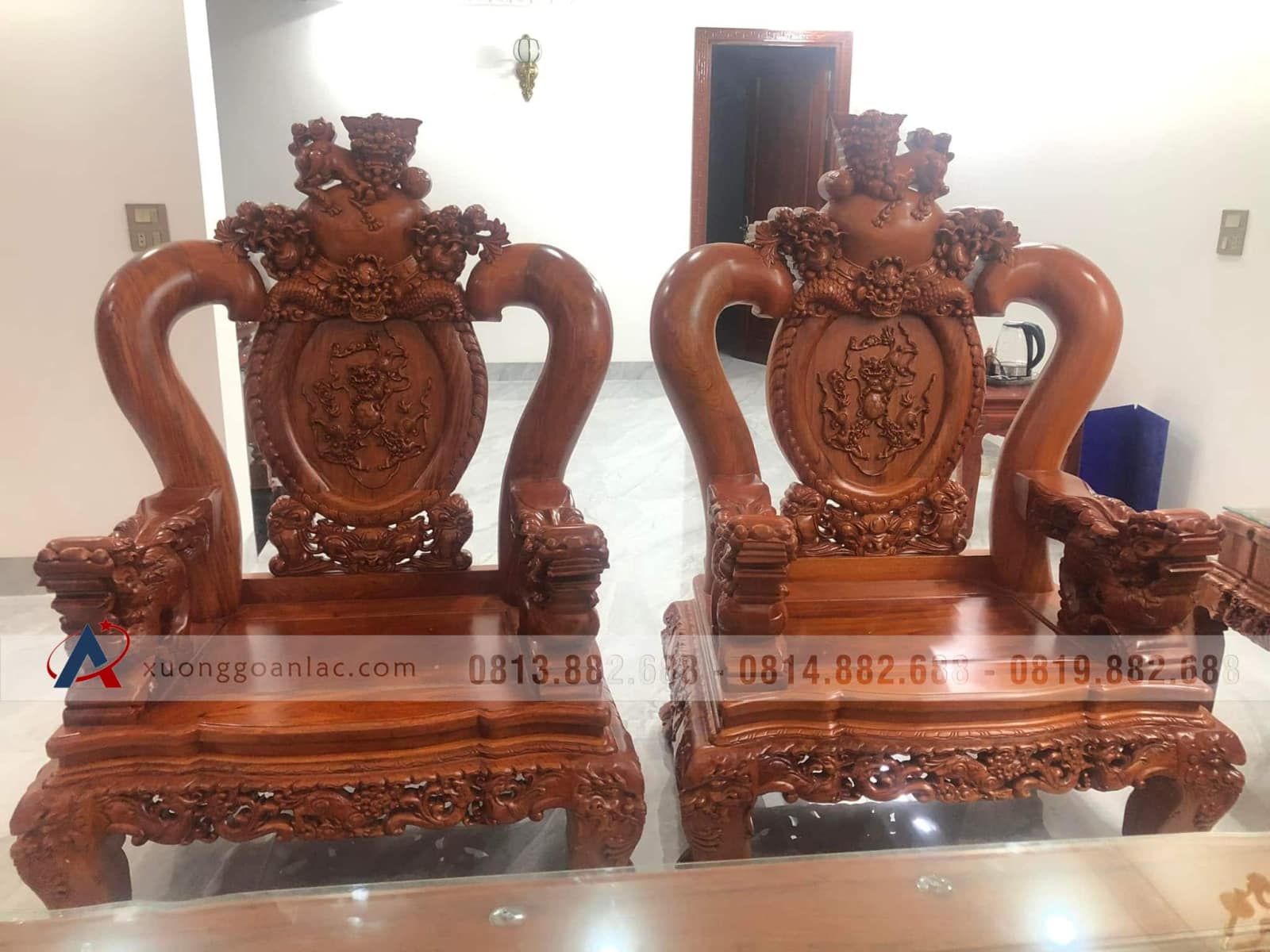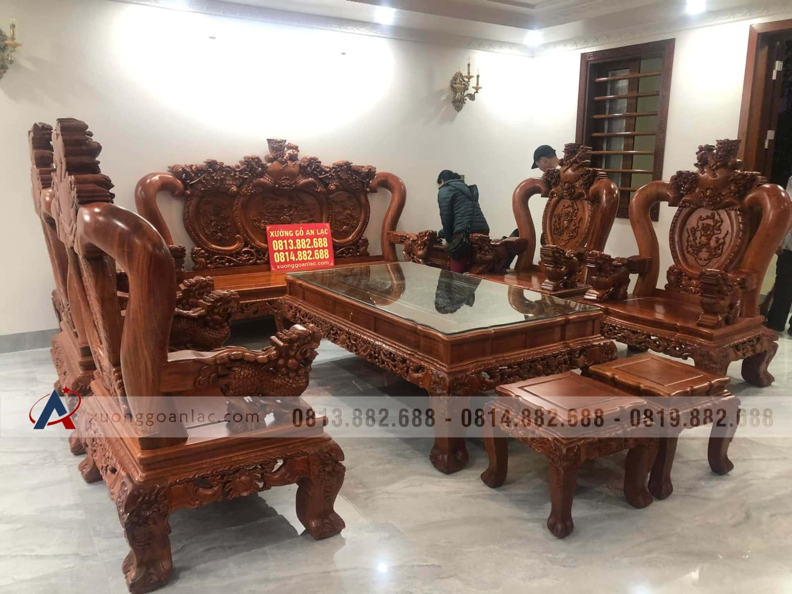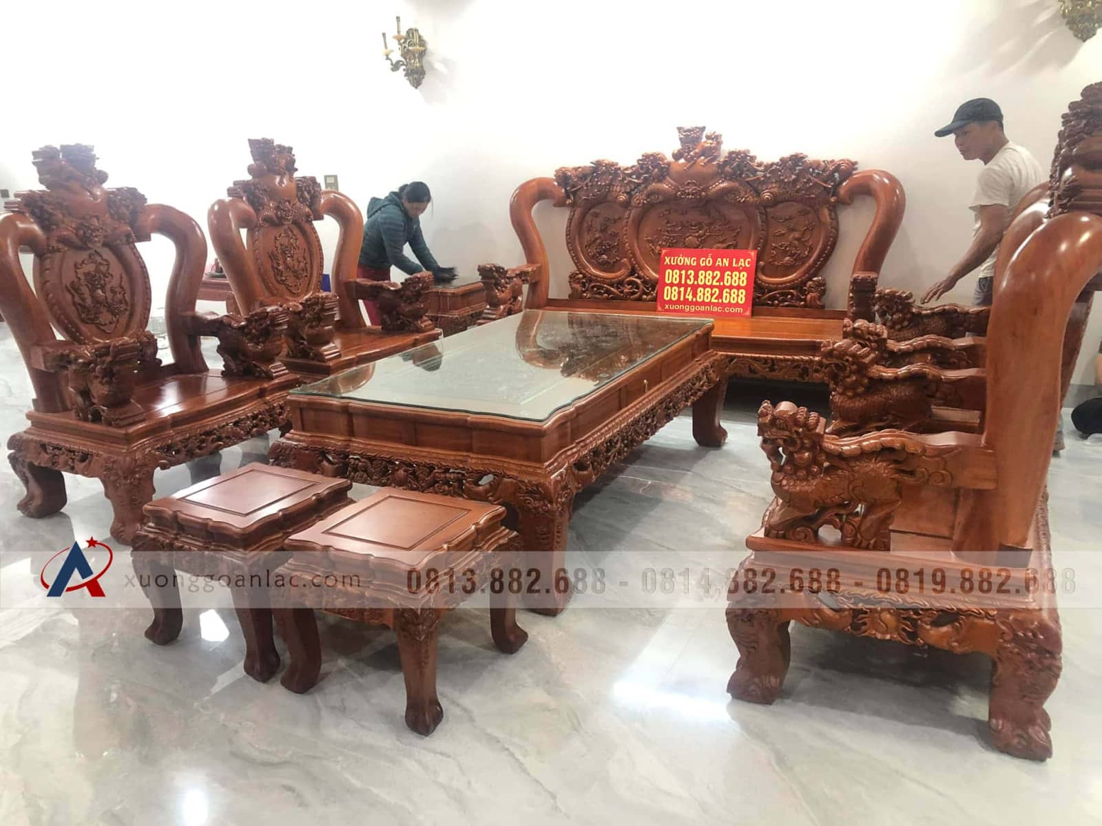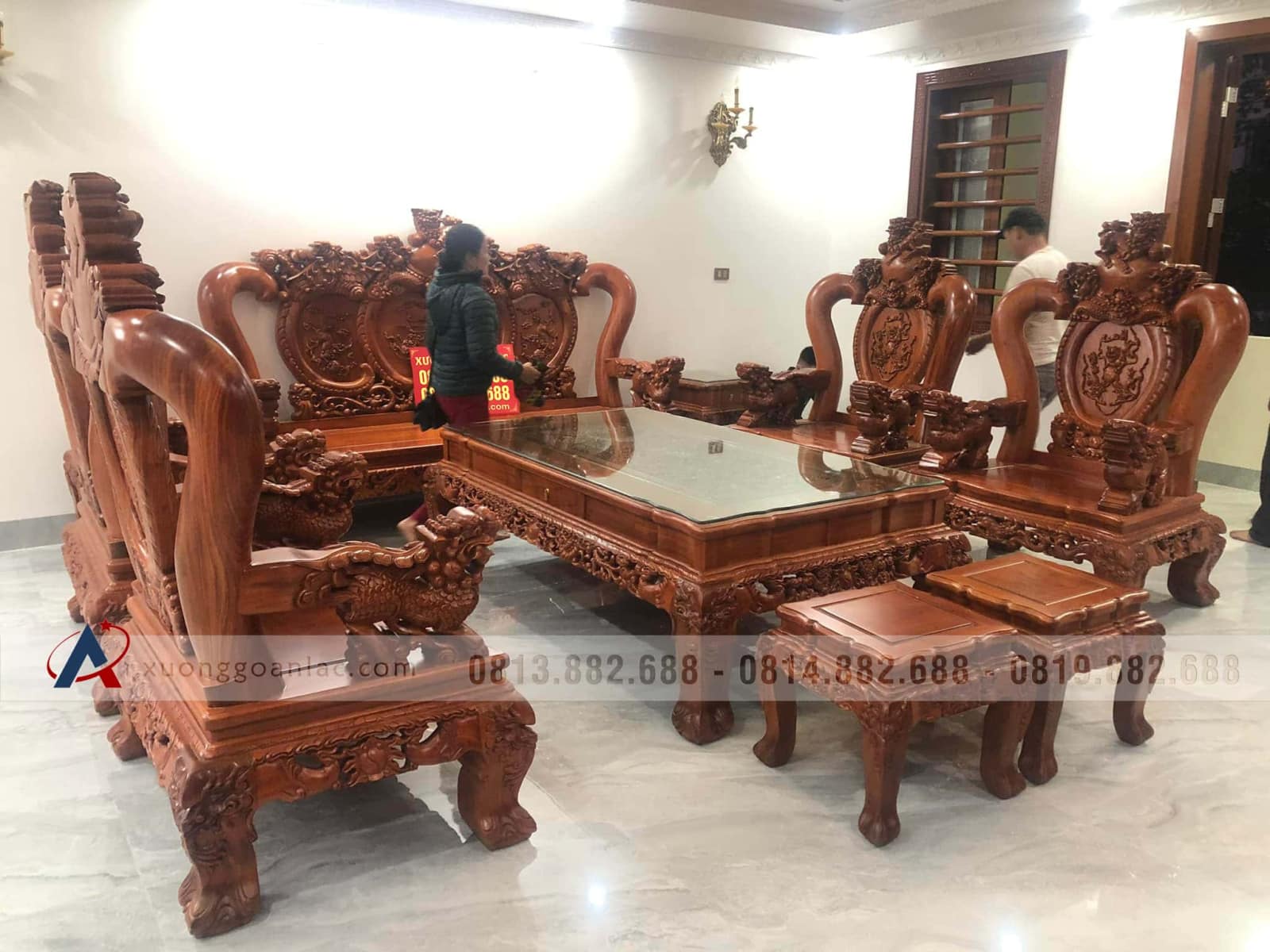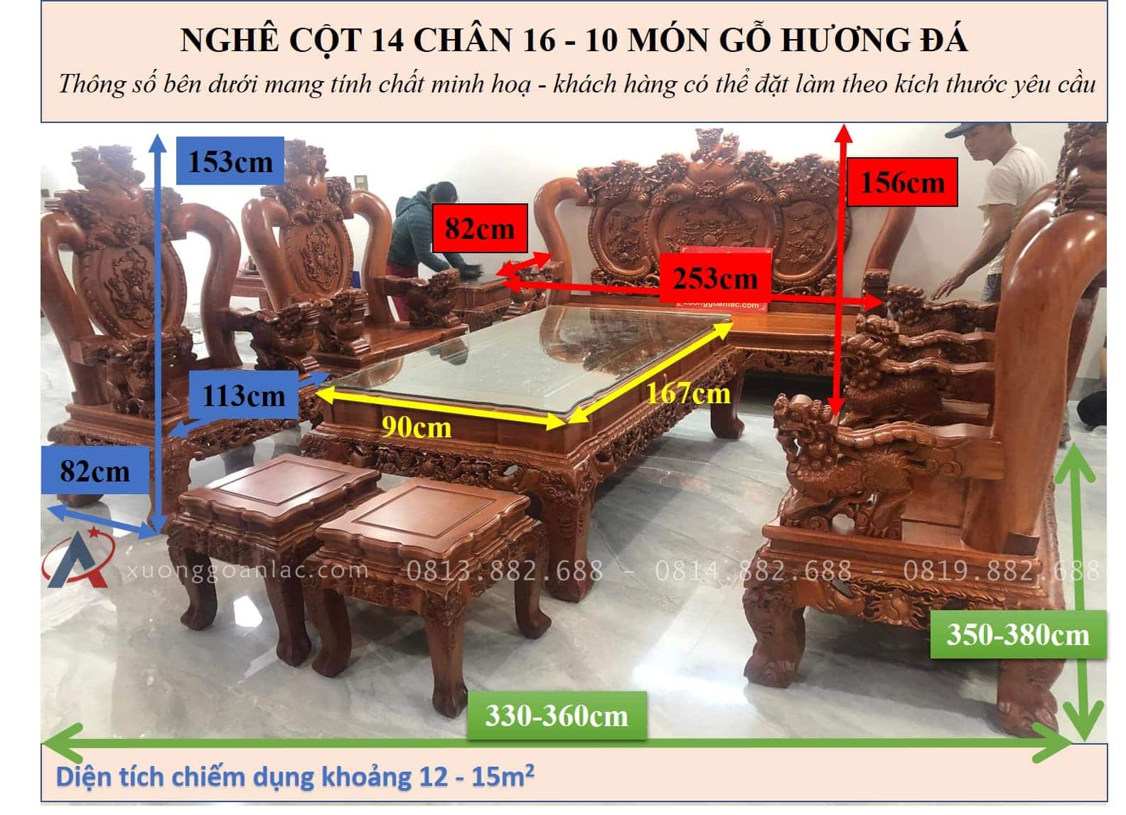 [Bàn giao] Bộ bàn ghế Nghê Phượng cột 14 chân 16 - 10 món gỗ hương đá (chú Tịnh, Hà Nội)
