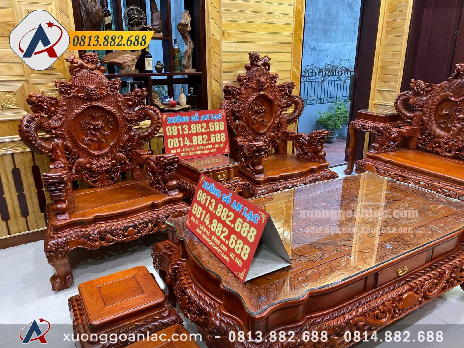 [Bàn giao] Bộ bàn ghế rồng đỉnh 12 món gỗ hương đá (anh chị Vinh Thoa ở Vĩnh Phúc)