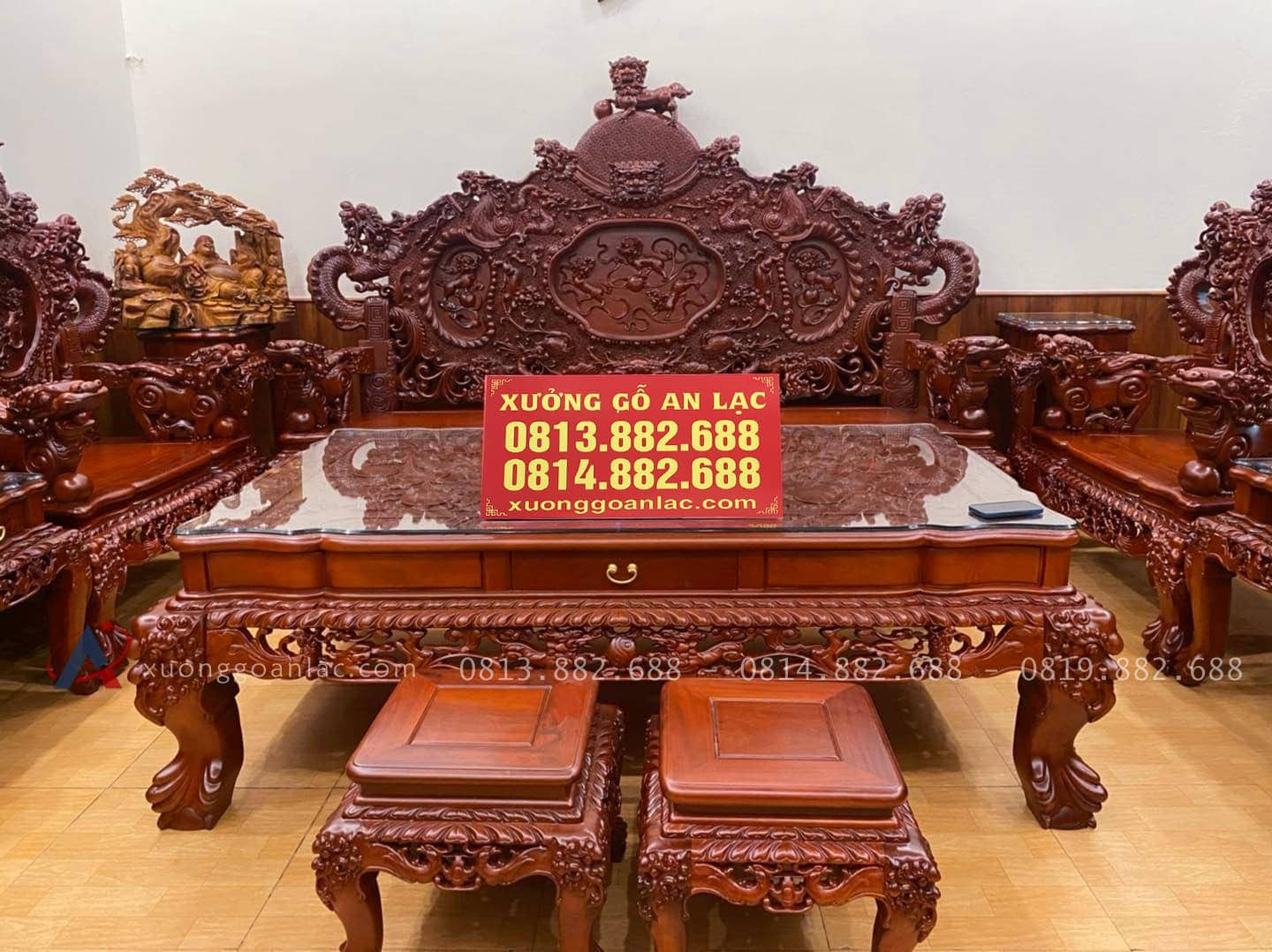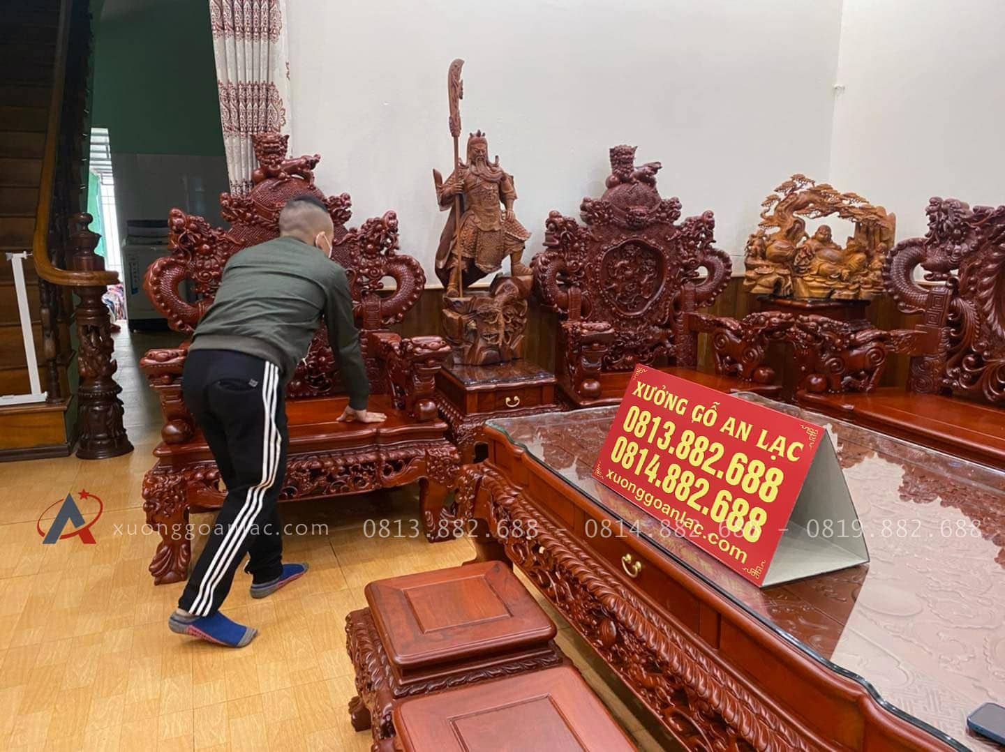[Bàn giao] Bộ Bàn Ghế Rồng Khuỳnh Nghê Bảo Đỉnh 12 Món Gỗ Hương Đỏ Lào (Anh Kiên, Quảng Ninh)