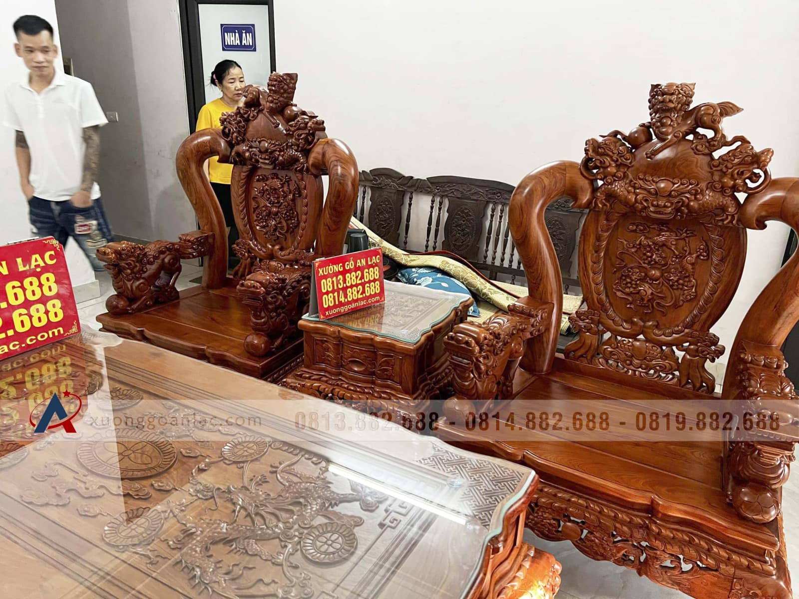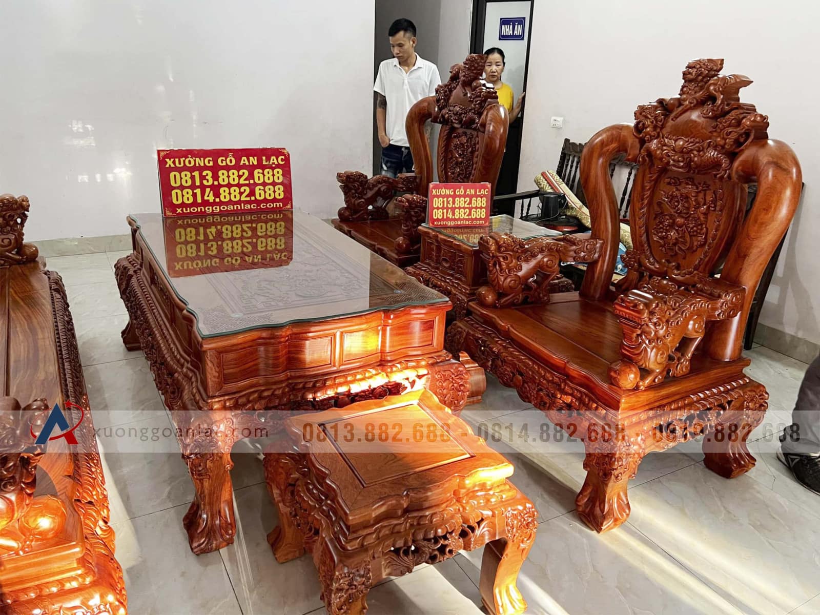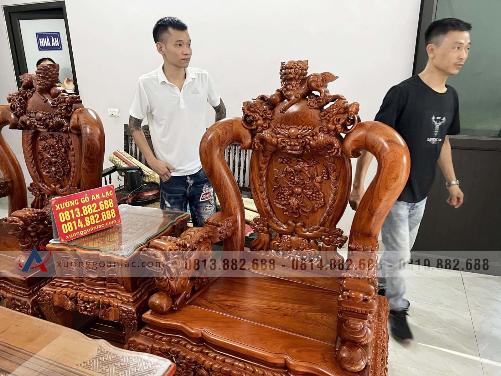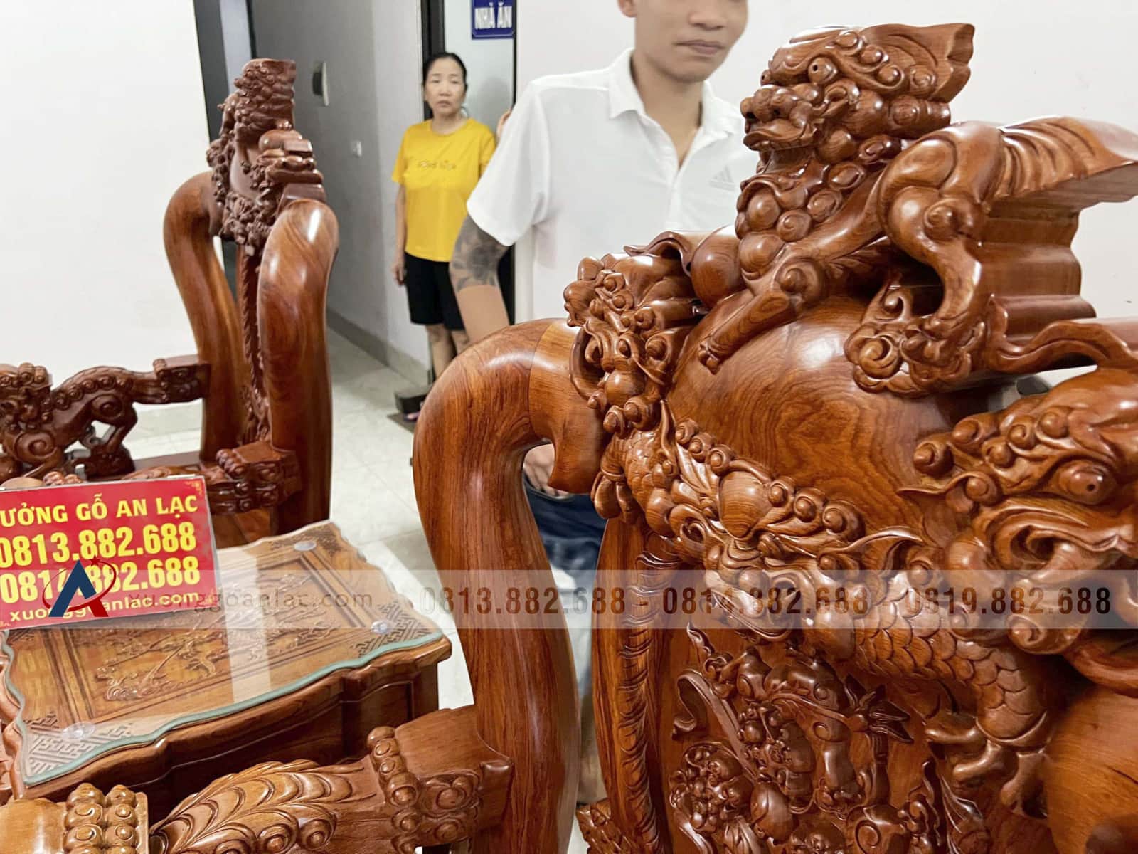 [Bàn giao] Bộ ghế Nghê Phượng 6 món cột 12 chân 14 đục tay gỗ hương đá