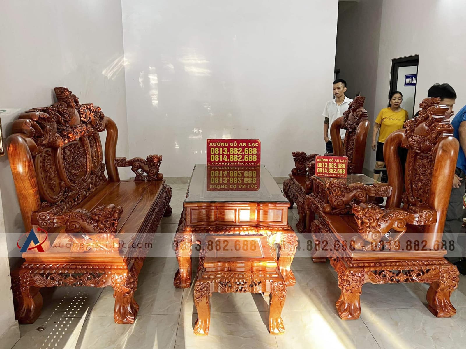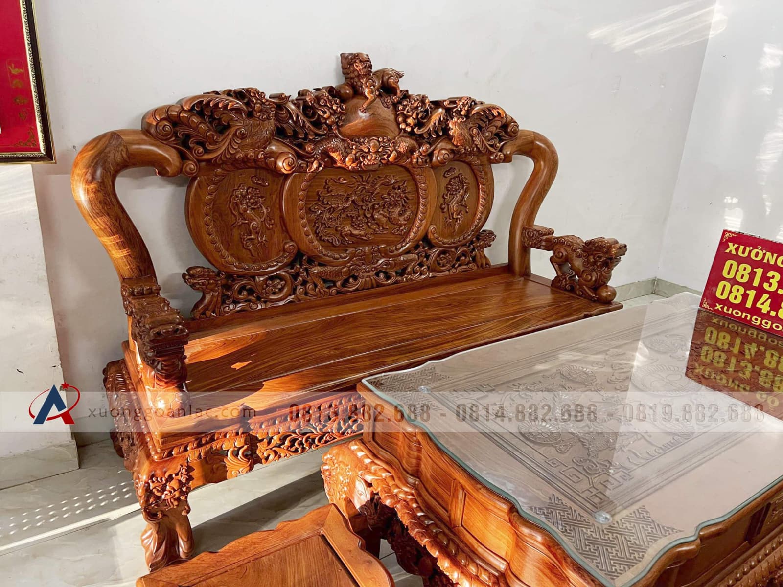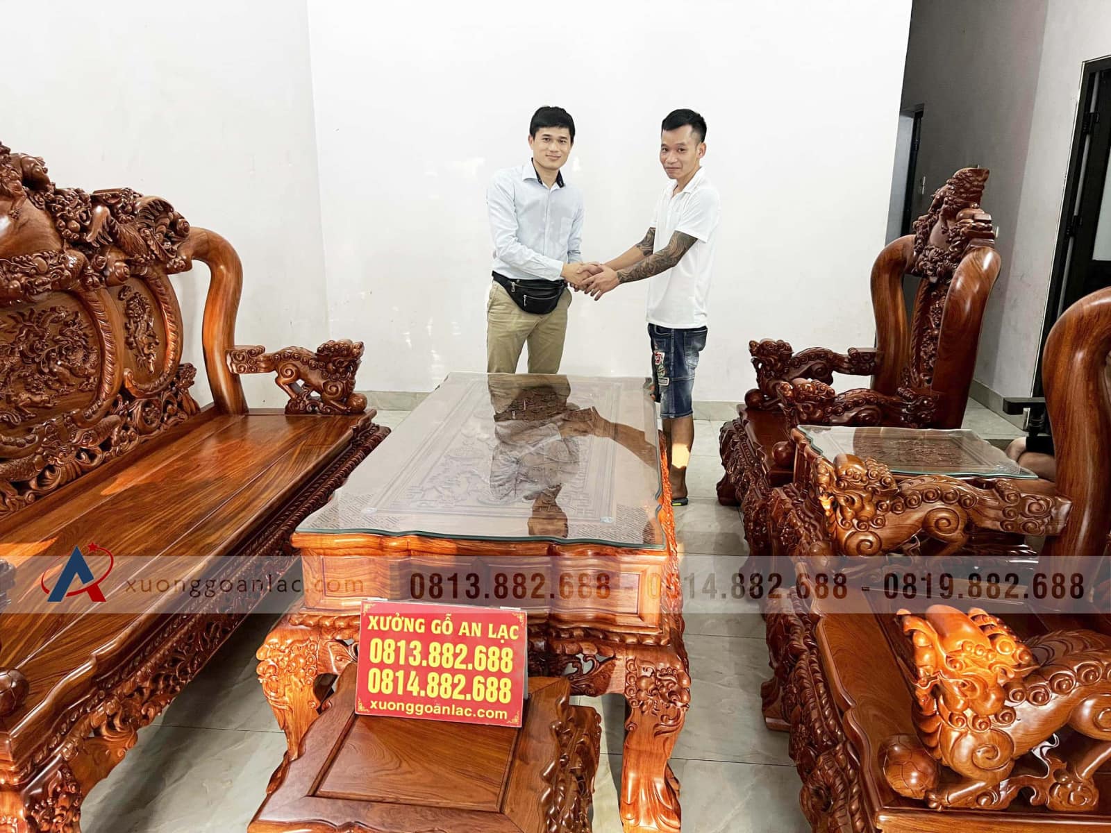 [Bàn giao] Bộ ghế Nghê Phượng 6 món cột 12 chân 14 đục tay gỗ hương đá