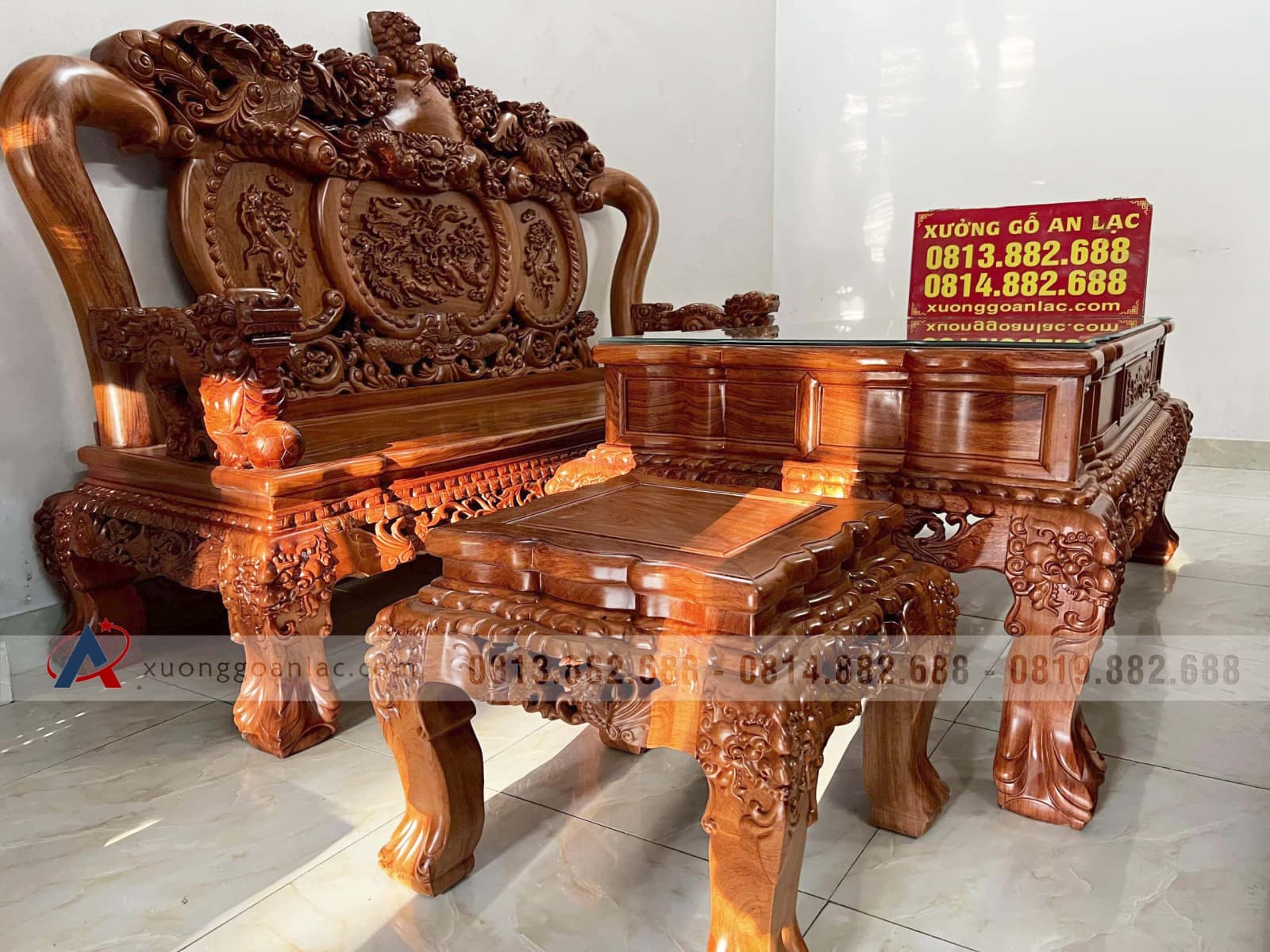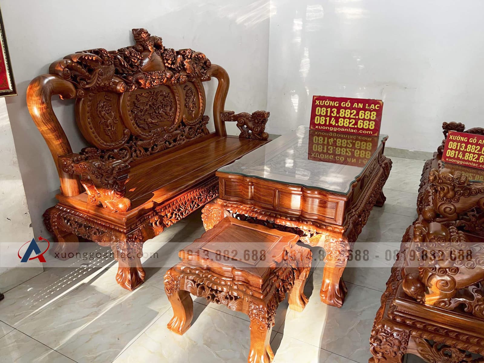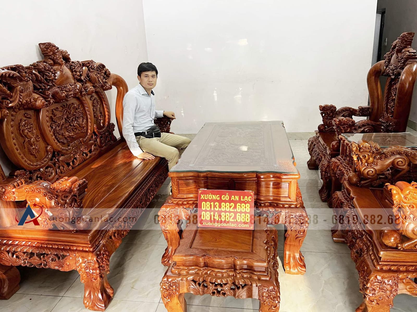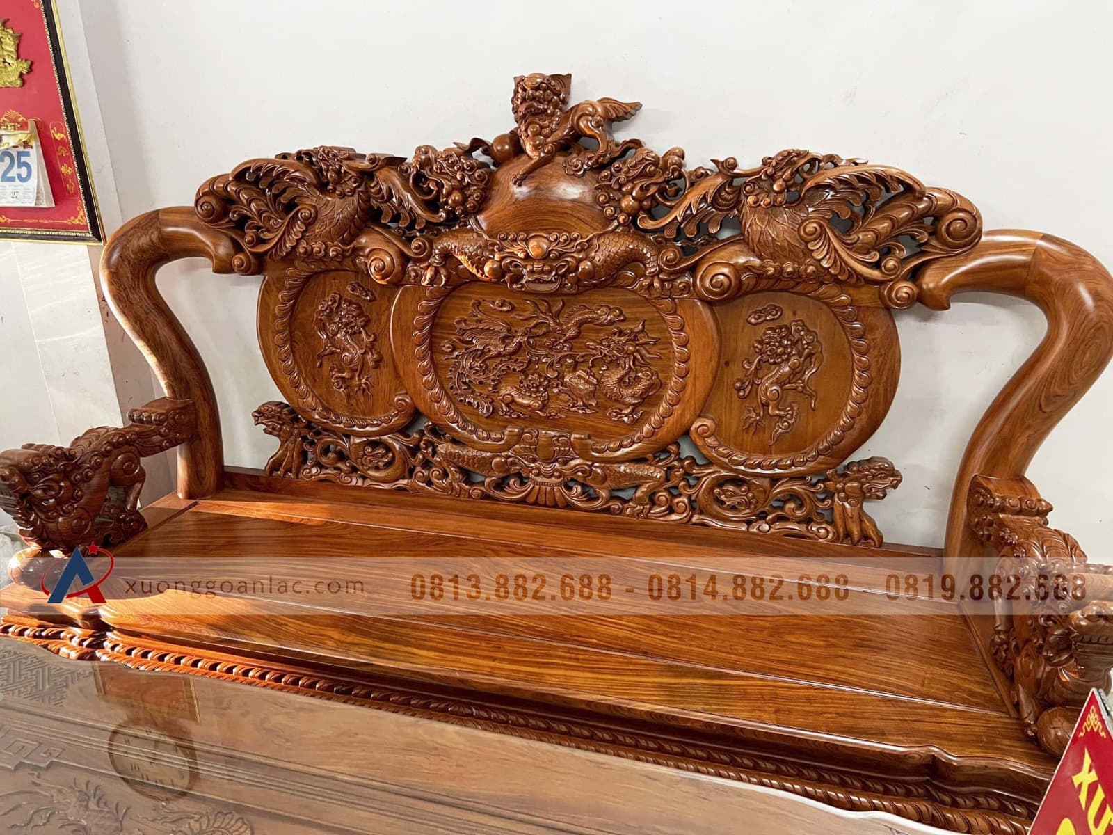 [Bàn giao] Bộ ghế Nghê Phượng 6 món cột 12 chân 14 đục tay gỗ hương đá