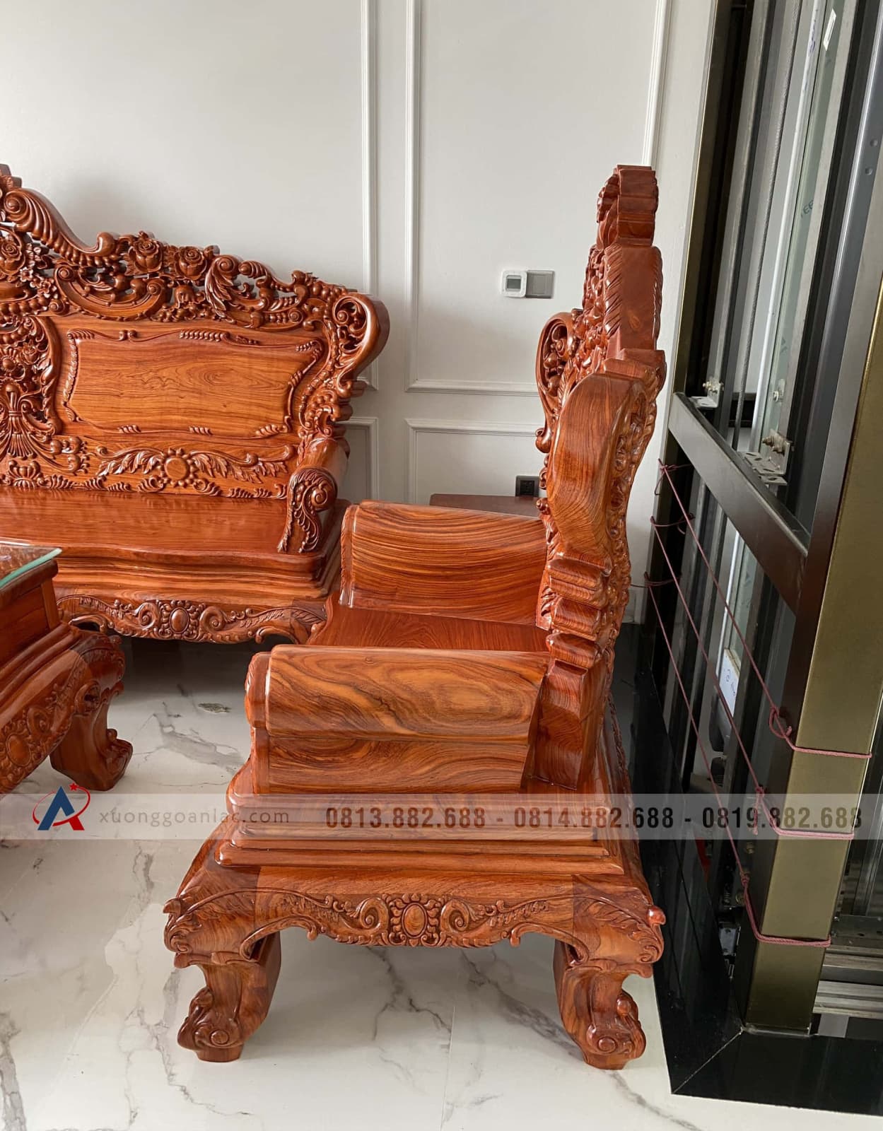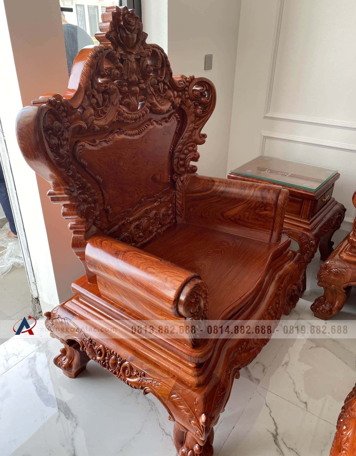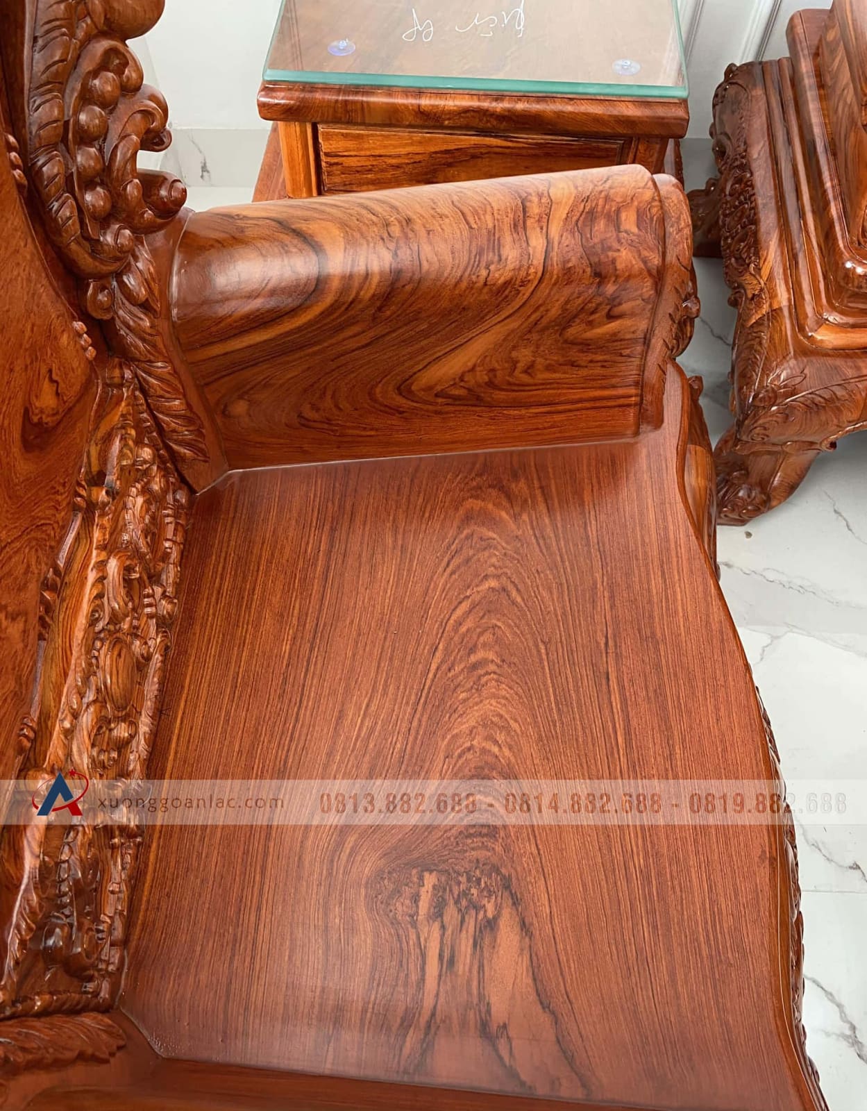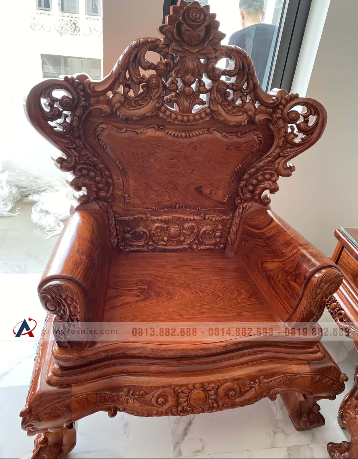 - 2 ghế đơn chạm đối xứng hoàn hảo với những chi tiết chạm khắc được cân đối đồng bộ với chiếc đoản dài. Tay ghế làm kiểu cuộn uốn cong khá nghệ thuật, được làm dày ~10cm rất cứng cáp & ấn tượng.