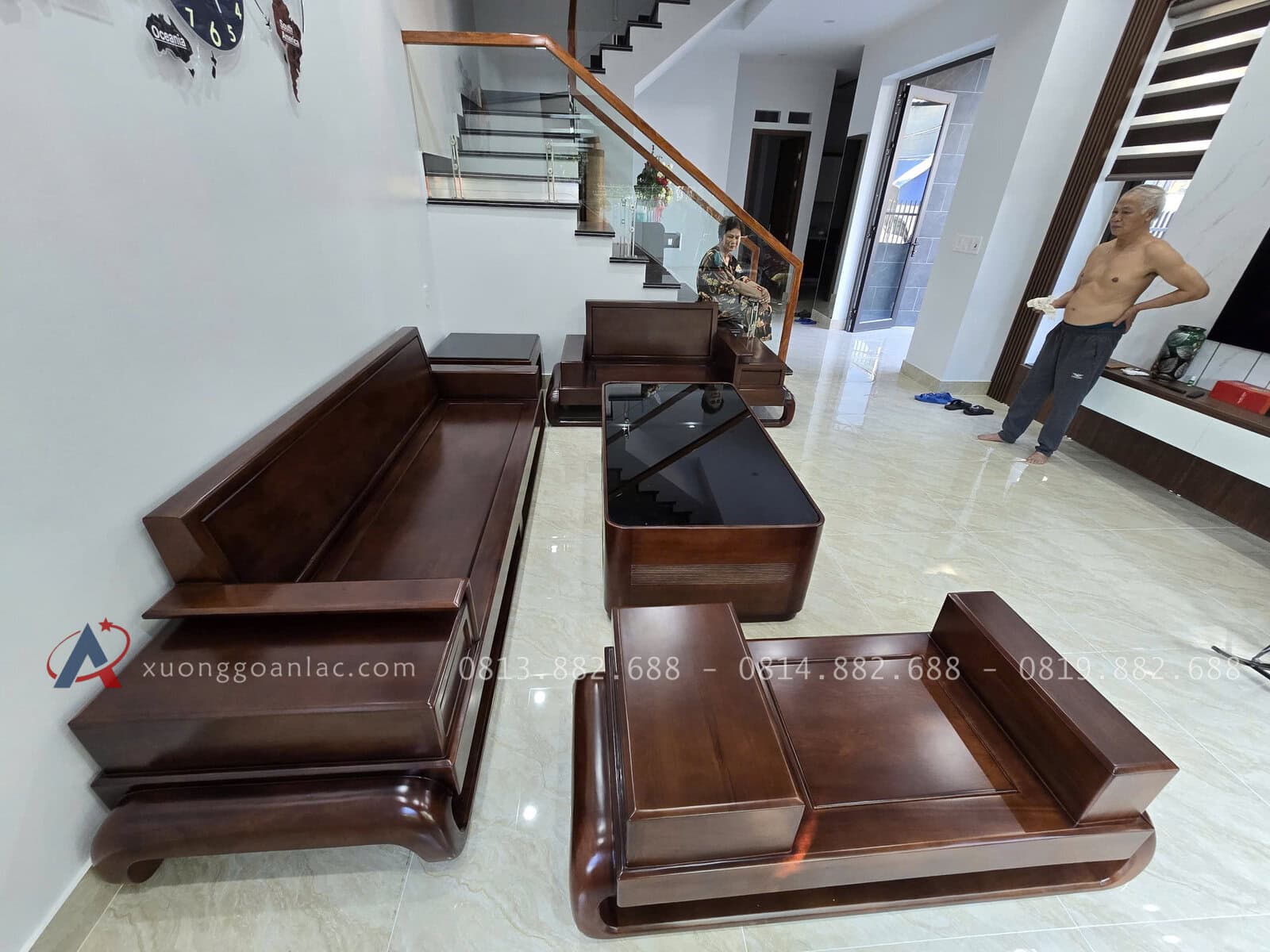 Xưởng gỗ An Lạc bán sofa gỗ buôn và lẻ với giá công khai: Bộ sofa đùi gà gỗ Hương Đá khung 4cm ván 2cm mộng tàu có giá: