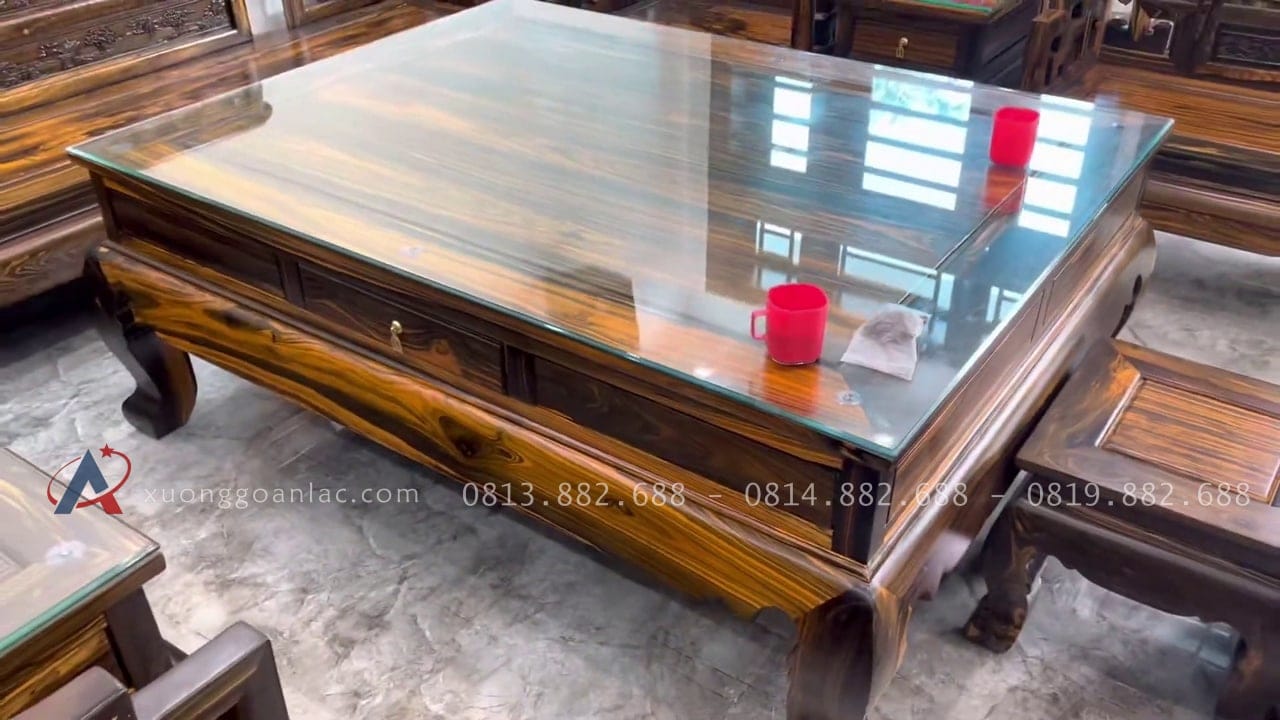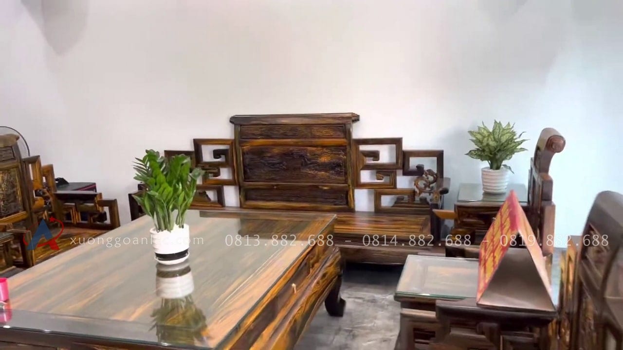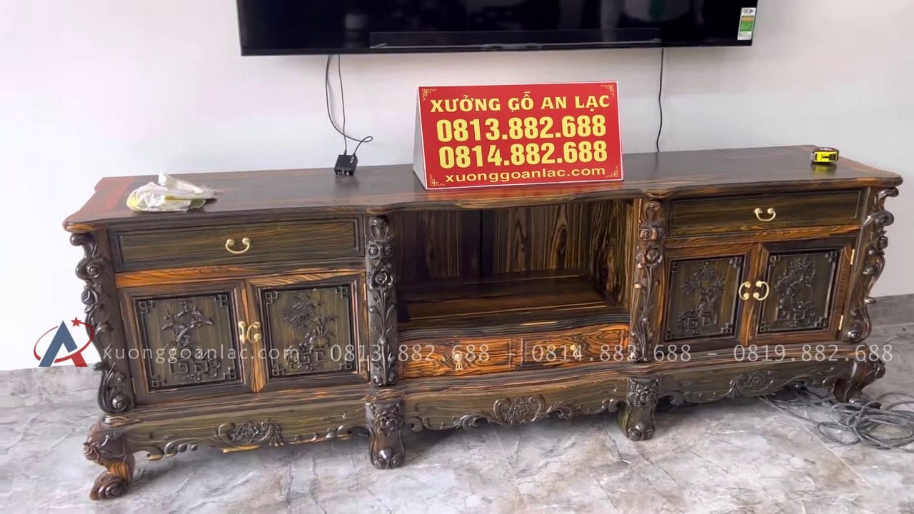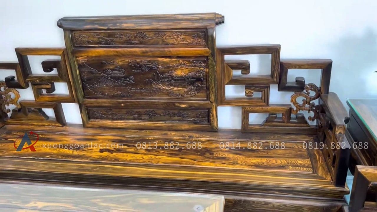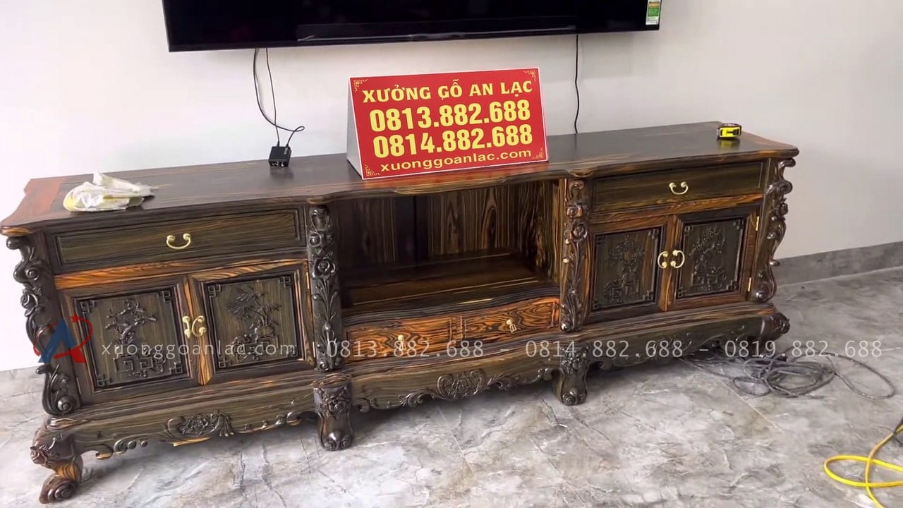 [Bàn giao] Combo bàn ghế sơn thủy chân 12, kệ tivi, đồng hồ gỗ mun hoa Lào (Anh Quân - Bắc Ninh)