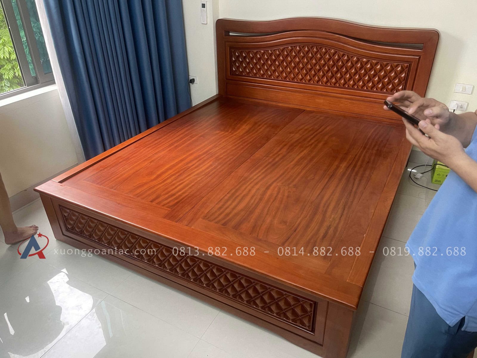 Bàn giao sản phẩm giường luxury trám gỗ gõ đỏ kích thước 1m8x2m cho anh Thắng ở quận Hà Đông TP Hà Nội.
