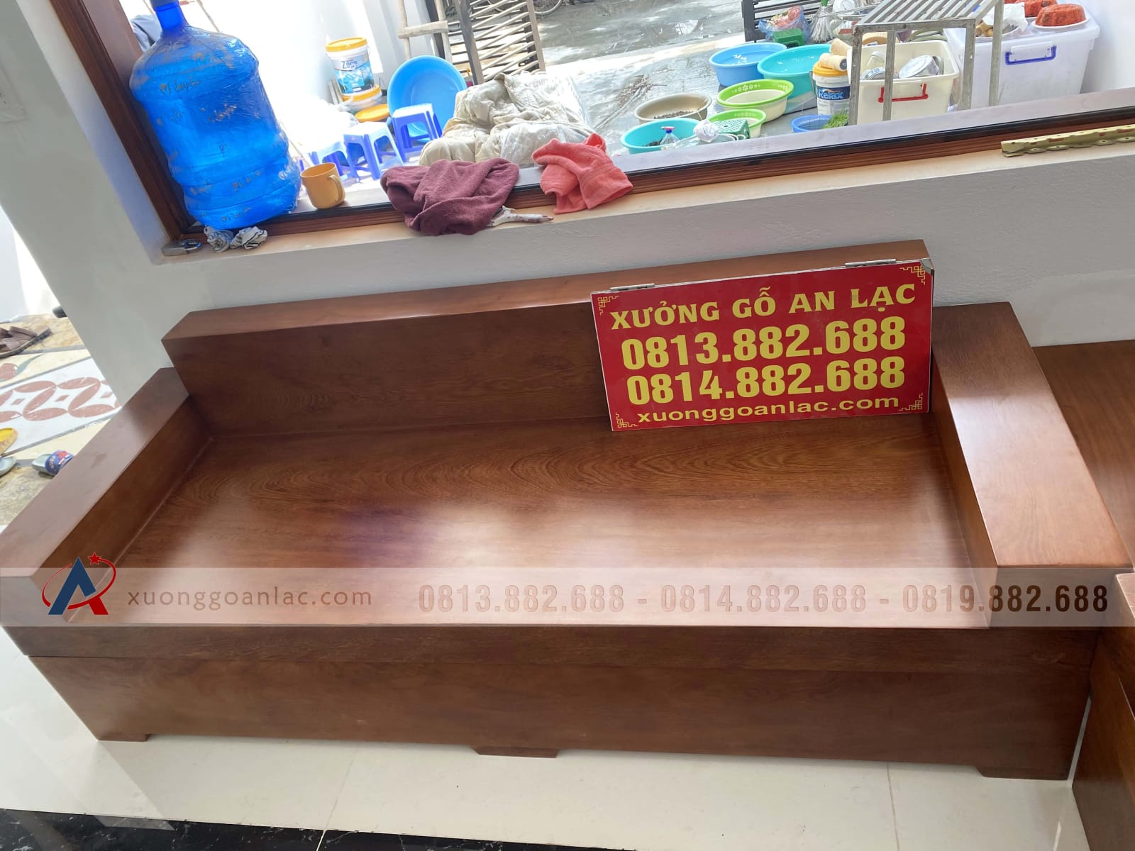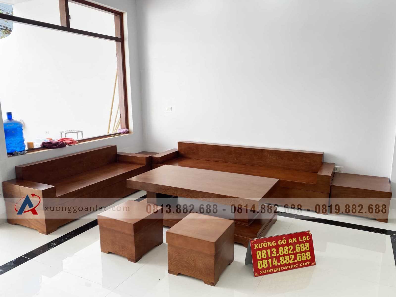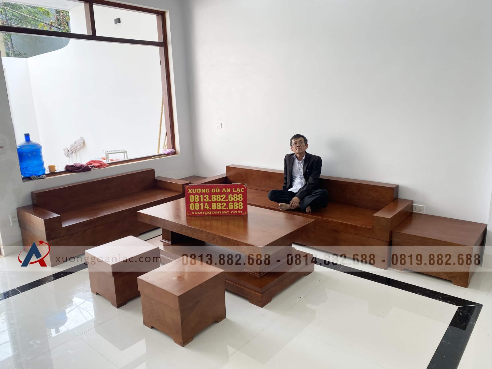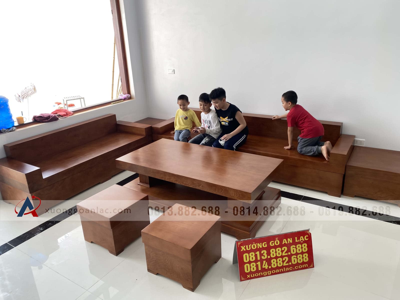 [Bàn Giao] Sofa góc nguyên khối gỗ gõ đỏ tới chú Thuận - Lào Cai