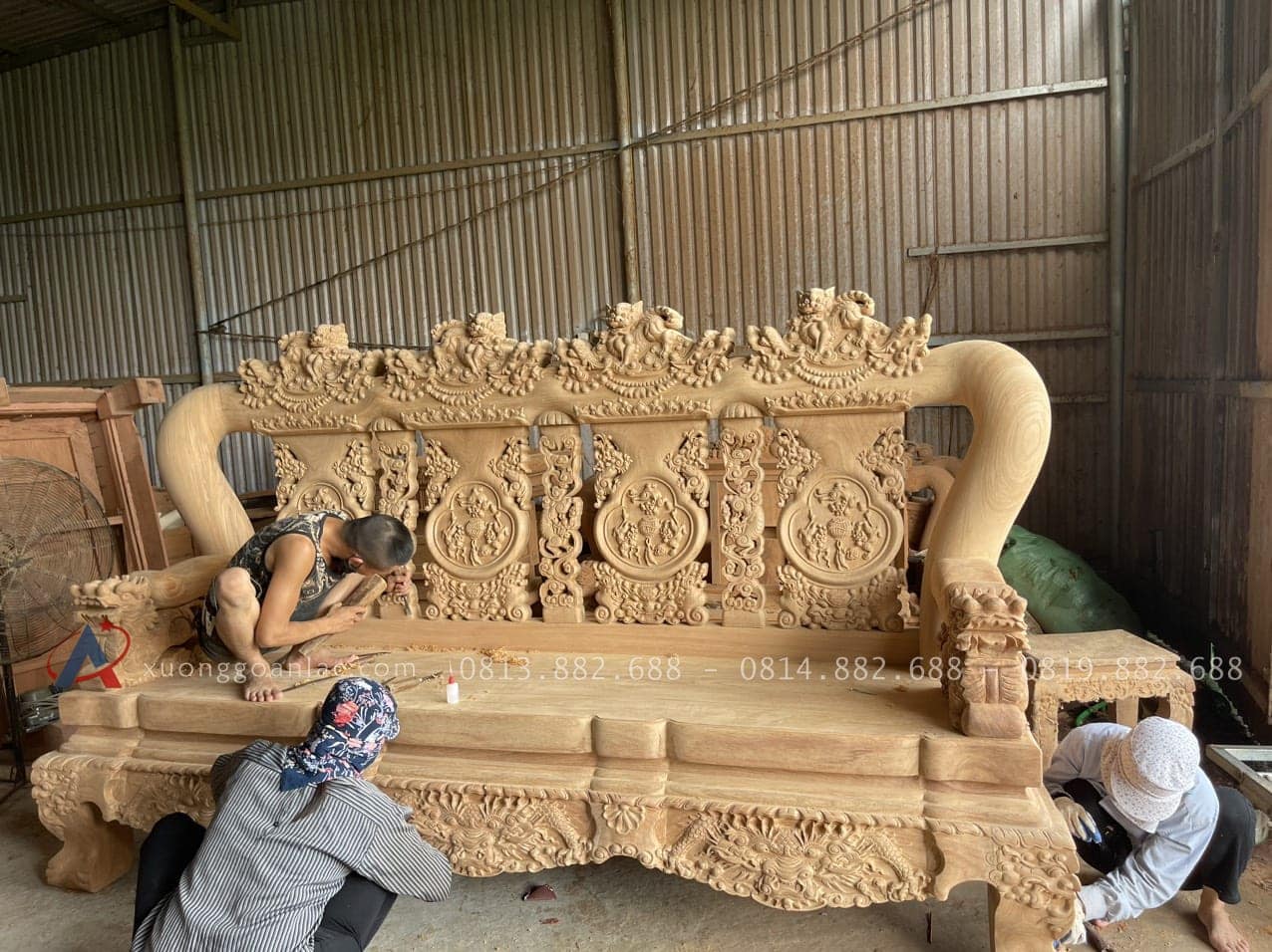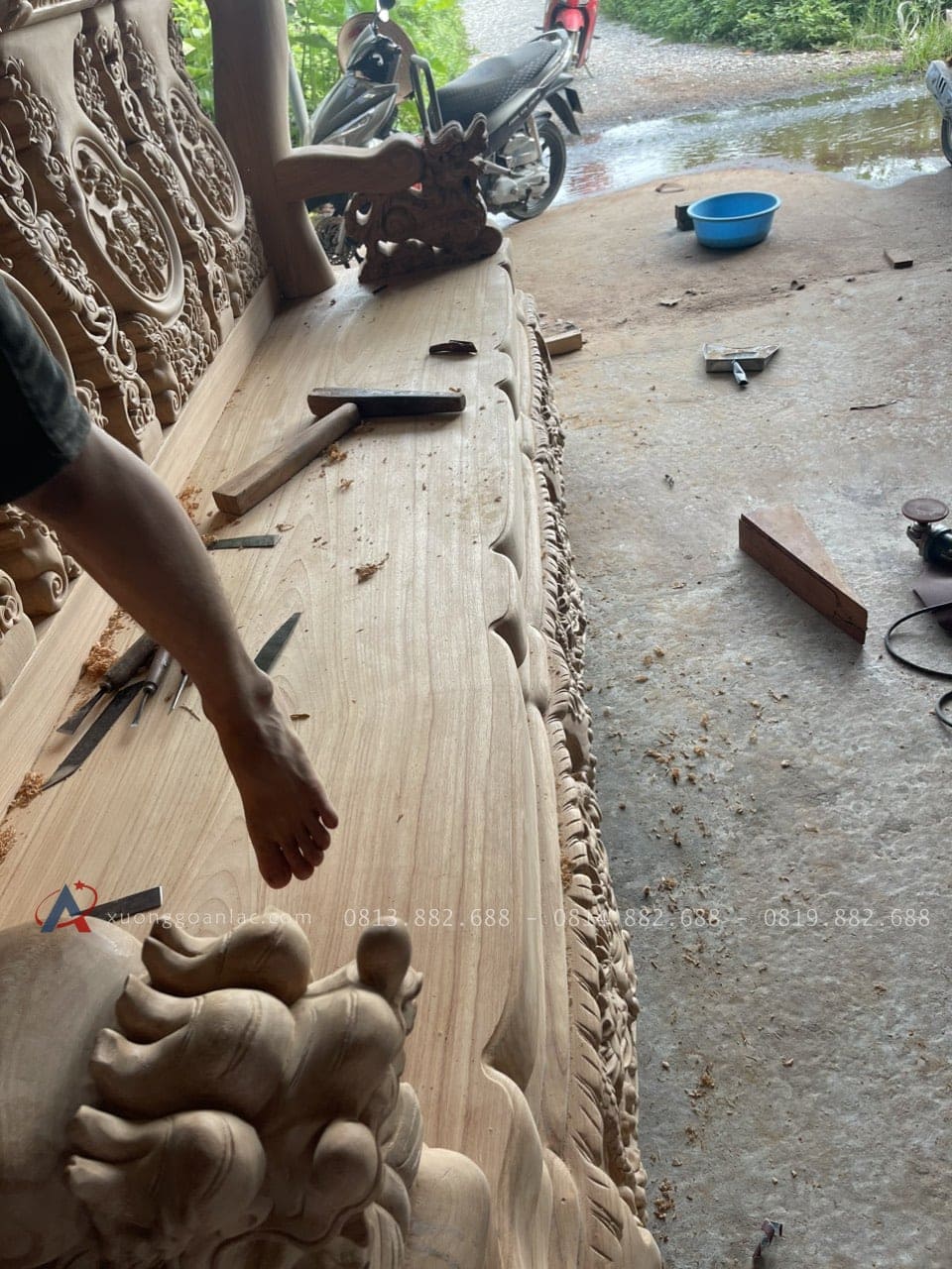 Xưởng Gỗ An Lạc vô cùng phấn khởi khi được trình làng một bộ siêu phẩm bàn ghế nghê đỉnh mẫu mới nhất đang được xưởng hoàn thiện mộc vô cùng đẳng cấp. Sau thời gian dài miệt mài nghiên cứu, sáng tạo thì đội ngũ nghệ nhân của xưởng đã tiến hành ra mẫu mới để tạo sự mới mẻ, mang lại nét đẹp đặc sắc và thời thượng hơn nữa để cuốn hút người nhìn. Mời các bác cùng chiêm ngưỡng sản phẩm.