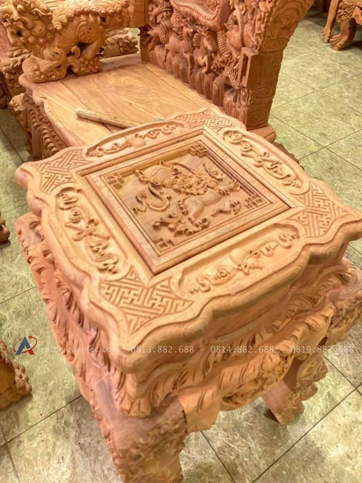 - Mặt bàn liền dày 4cm đục nọng kênh bong, khung non đục rồng sắc nét.