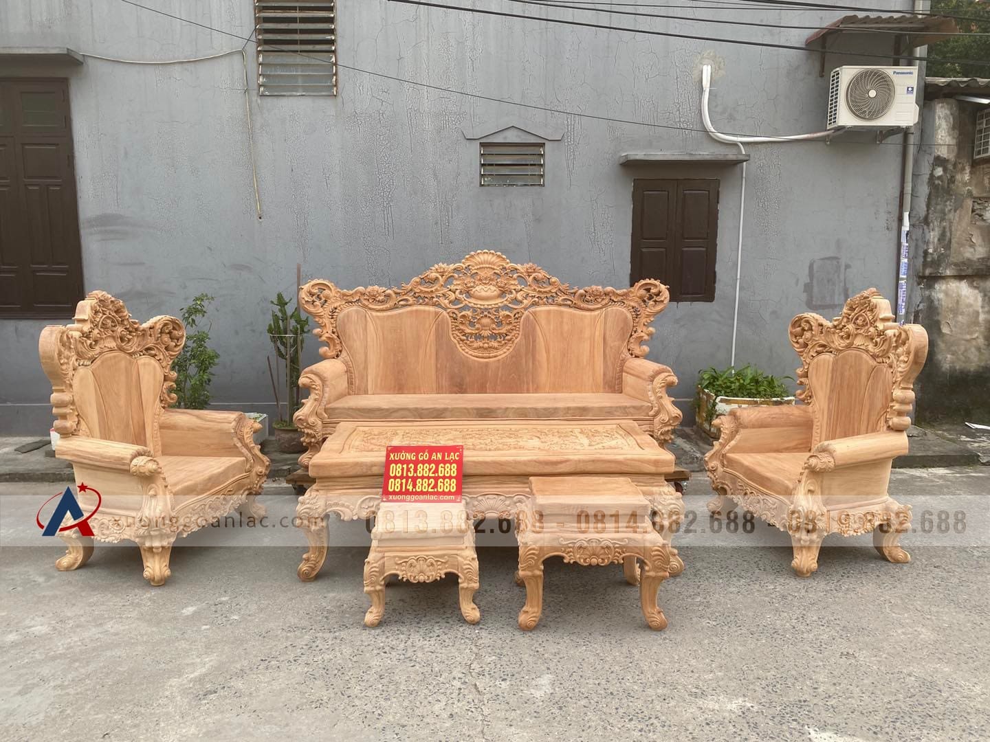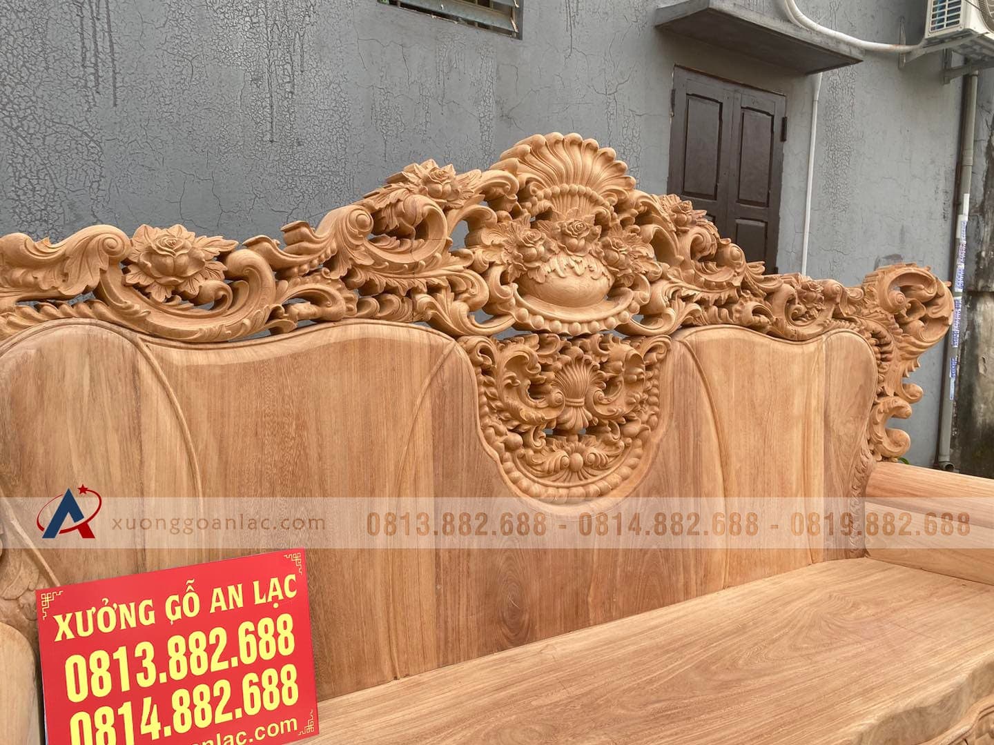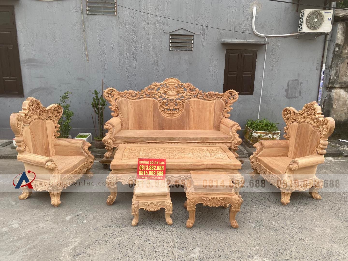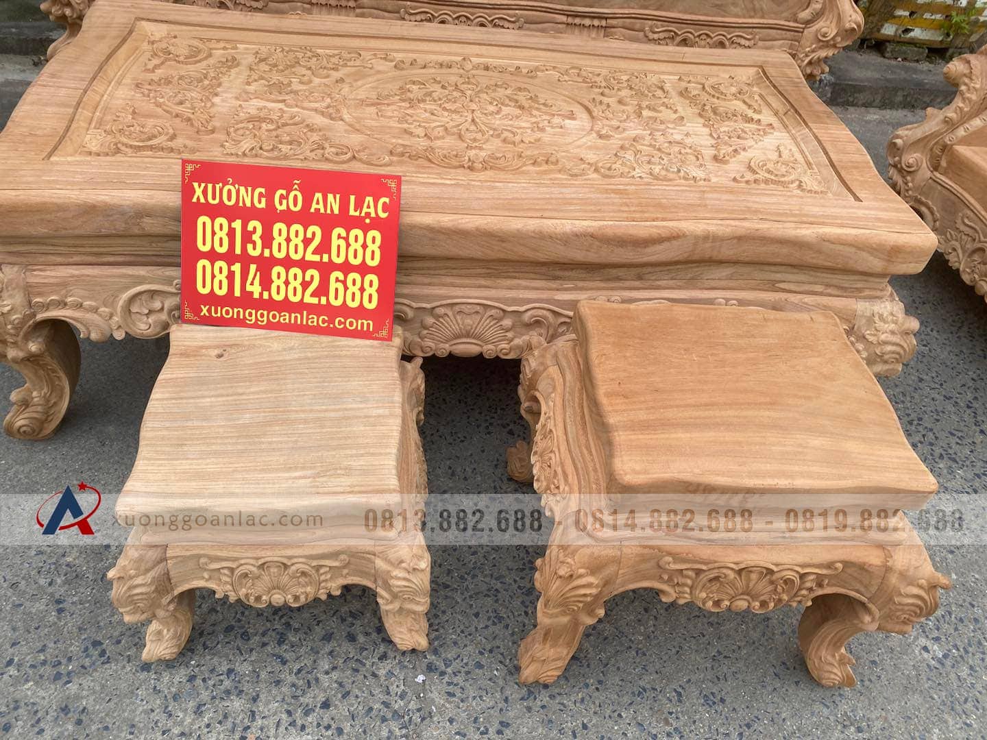 Hoàn thiện xong phần mộc bộ hoàng gia nguyên khối gỗ gõ đỏ cho gia đình anh Quang ở TP Vinh (Nghệ An). Bộ sản phẩm được thiết kế theo phong cách hoàng gia tân cổ điển với các chi tiết đục thủ công hoa lá tây đặc trưng vô cùng tinh xảo và bắt mắt. Với số lượng 6 món được bố trí dạng chữ U để phù hợp với phòng khách sâu hẹp bề ngang nhà anh Quang.