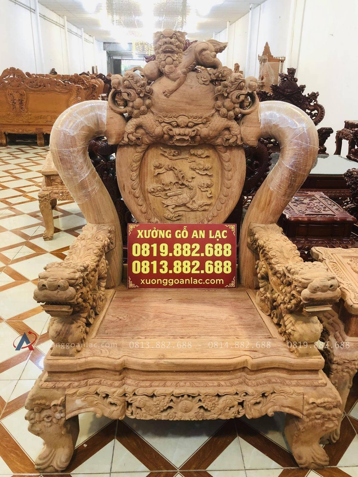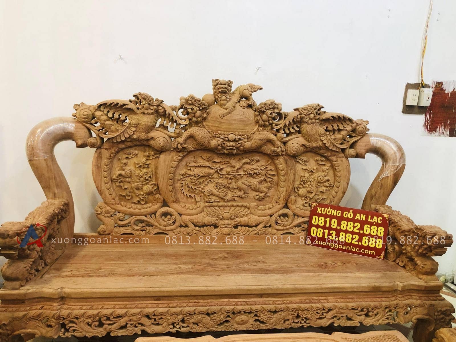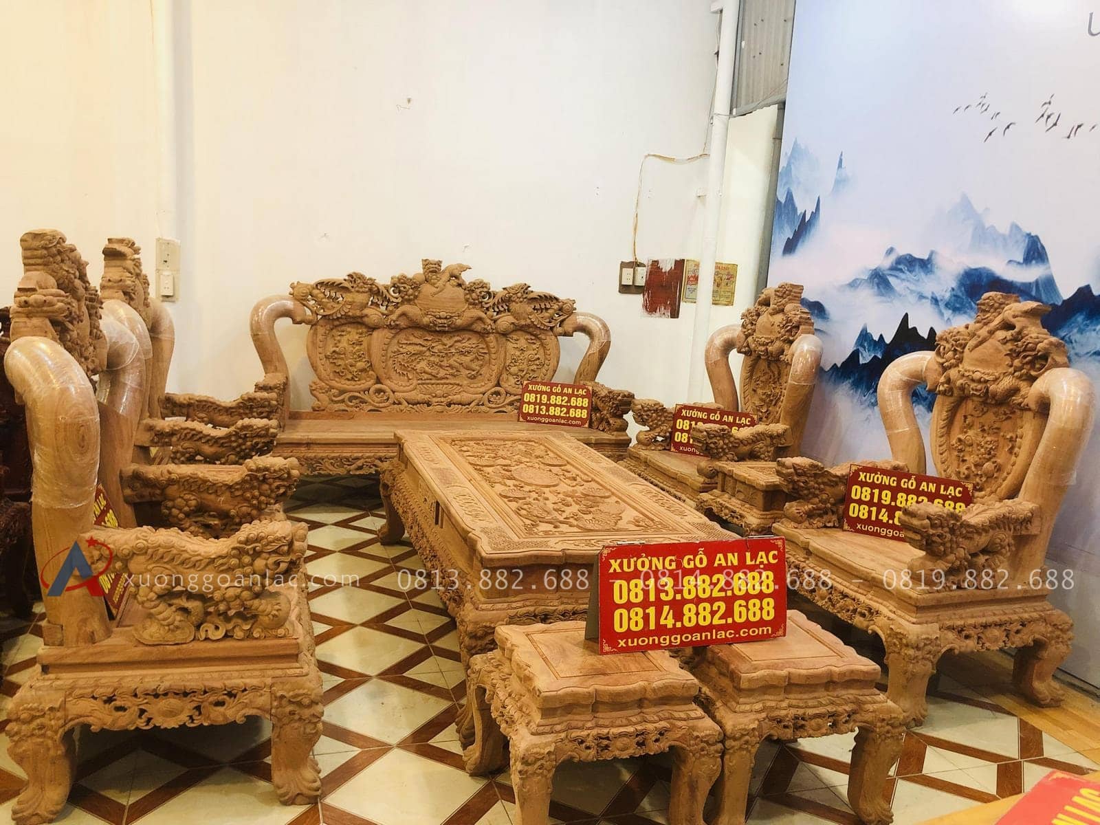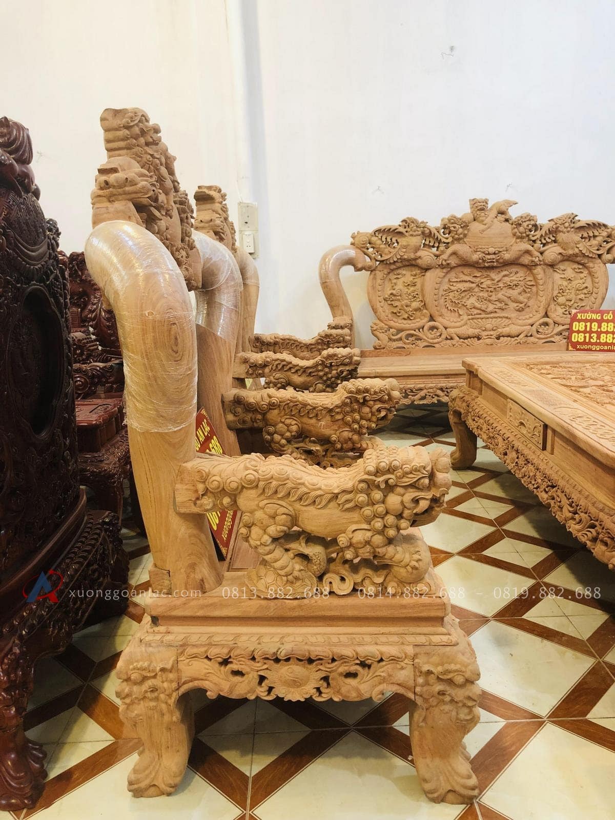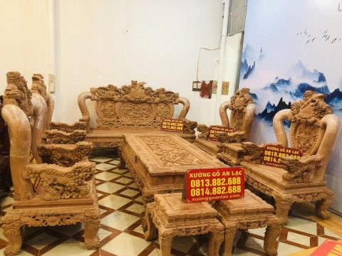 Bộ bàn ghế nghê bảo đỉnh phượng hóa anh Thức đặt gồm 10 món kích thước bề thế phù hợp cho những không gian phòng khách lớn.