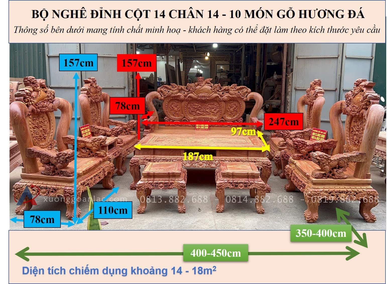 ![[Bản mộc] Bộ bàn ghế Minh Quốc Nghê 10 món gỗ hương đá tay 14 chân 14 nguyên mộc 53 KÍCH THƯỚC BỘ NGHÊ ĐỈNH CỘT 14 CHÂN 14 - 10 MÓN GỖ HƯƠNG ĐÁ](https://xuonggodongky.com/wp-content/uploads/2022/12/BO-NGHE-DINH-COT-14-CHAN-14-10-MON-GO-HUONG-DA.jpg)