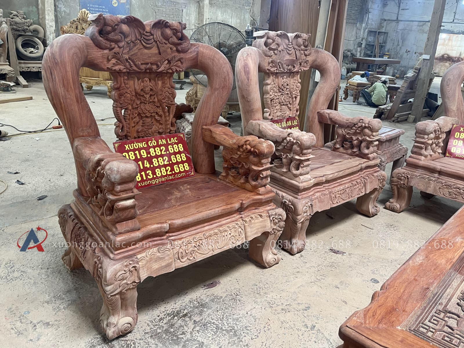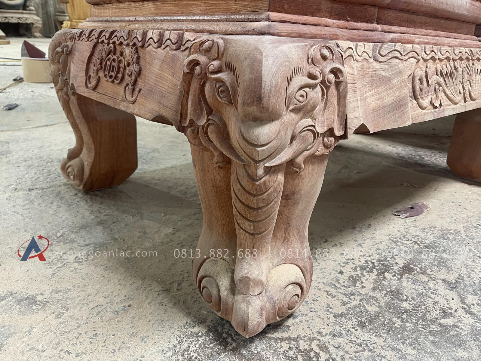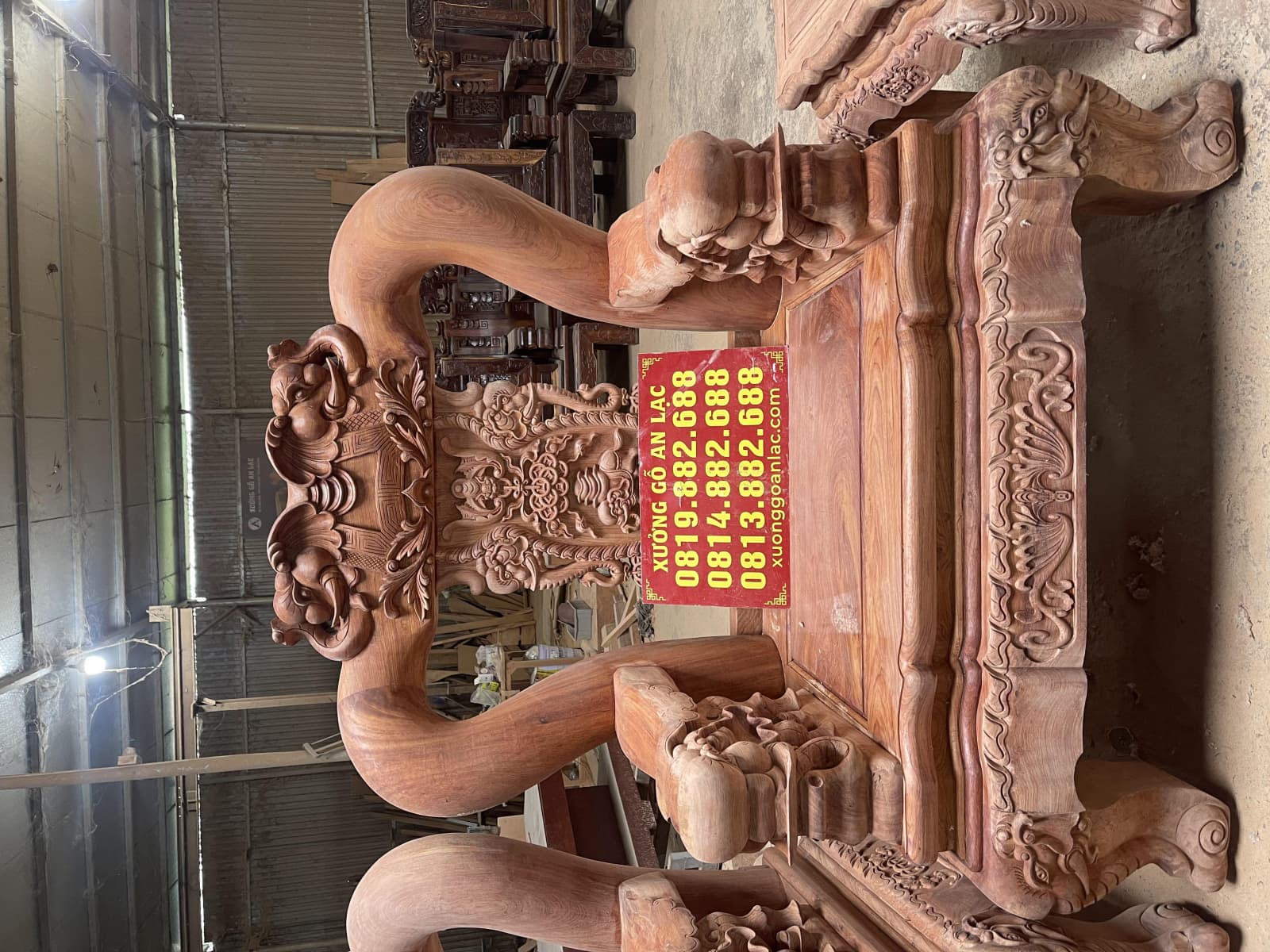 Xưởng Gỗ An Lạc xin trân trọng giới thiệu đến quý khách hàng một mẫu siêu phẩm bàn ghế quốc voi 11 món gỗ hương đá cực vip vừa được xưởng hoàn thiện cho anh Vân ở Thái Nguyên. Bộ bàn ghế mang nét đẹp truyền thống phương Đông với tạo hình ấn tượng lấy cảm hứng từ hình ảnh con voi hùng dũng với sức mạnh bền bỉ cùng sự cần mẫn cực gần gũi với văn hóa người Việt nên được rất nhiều khách hàng yêu thích. Mời các bác cùng chiêm ngưỡng cận cảnh hình ảnh sản phẩm.