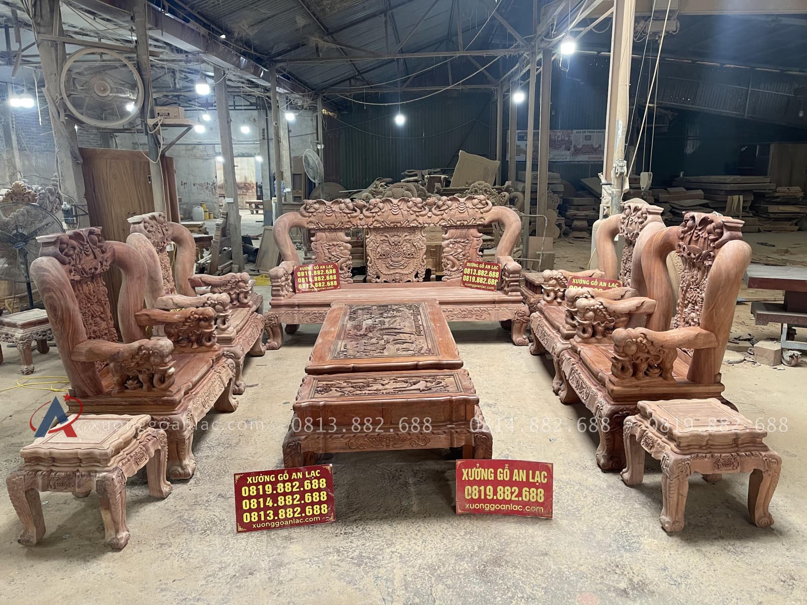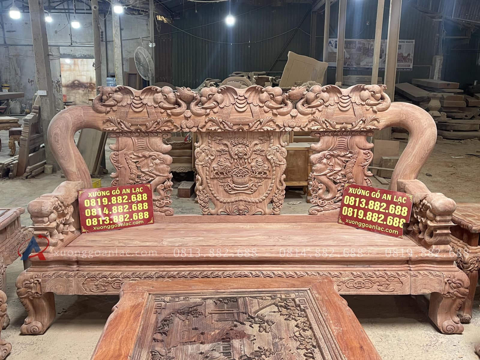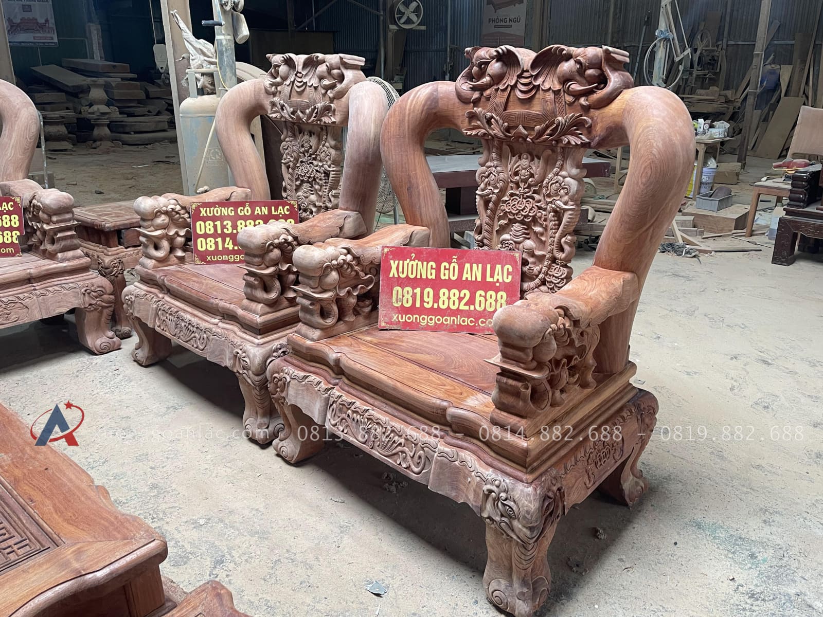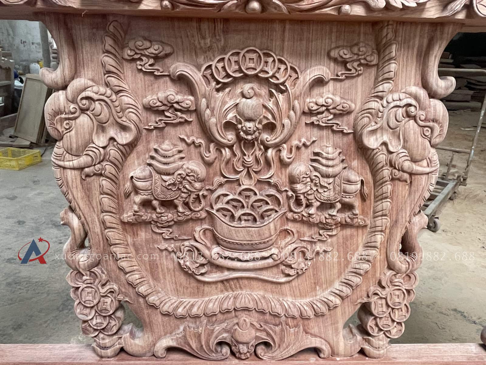 Xưởng Gỗ An Lạc xin trân trọng giới thiệu đến quý khách hàng một mẫu siêu phẩm bàn ghế quốc voi 11 món gỗ hương đá cực vip vừa được xưởng hoàn thiện cho anh Vân ở Thái Nguyên. Bộ bàn ghế mang nét đẹp truyền thống phương Đông với tạo hình ấn tượng lấy cảm hứng từ hình ảnh con voi hùng dũng với sức mạnh bền bỉ cùng sự cần mẫn cực gần gũi với văn hóa người Việt nên được rất nhiều khách hàng yêu thích. Mời các bác cùng chiêm ngưỡng cận cảnh hình ảnh sản phẩm.