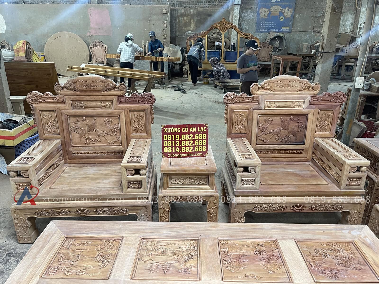 Anh Khánh tham khảo nhiều mẫu bàn ghế phòng khách trên thị trường, sau cùng anh thấy ưng nhất với mẫu bàn ghế phù dung của xưởng gỗ An Lạc nên đã liên hệ đặt hàng. Bộ sản phẩm có thiết kế cổ điển Á Đông, thẩm mỹ và có tính tiện dụng cao đảm bảo sự tiện nghi tối đa, phù hợp cho nhiều không gian sống khác nhau.