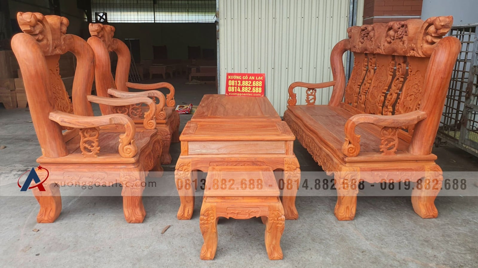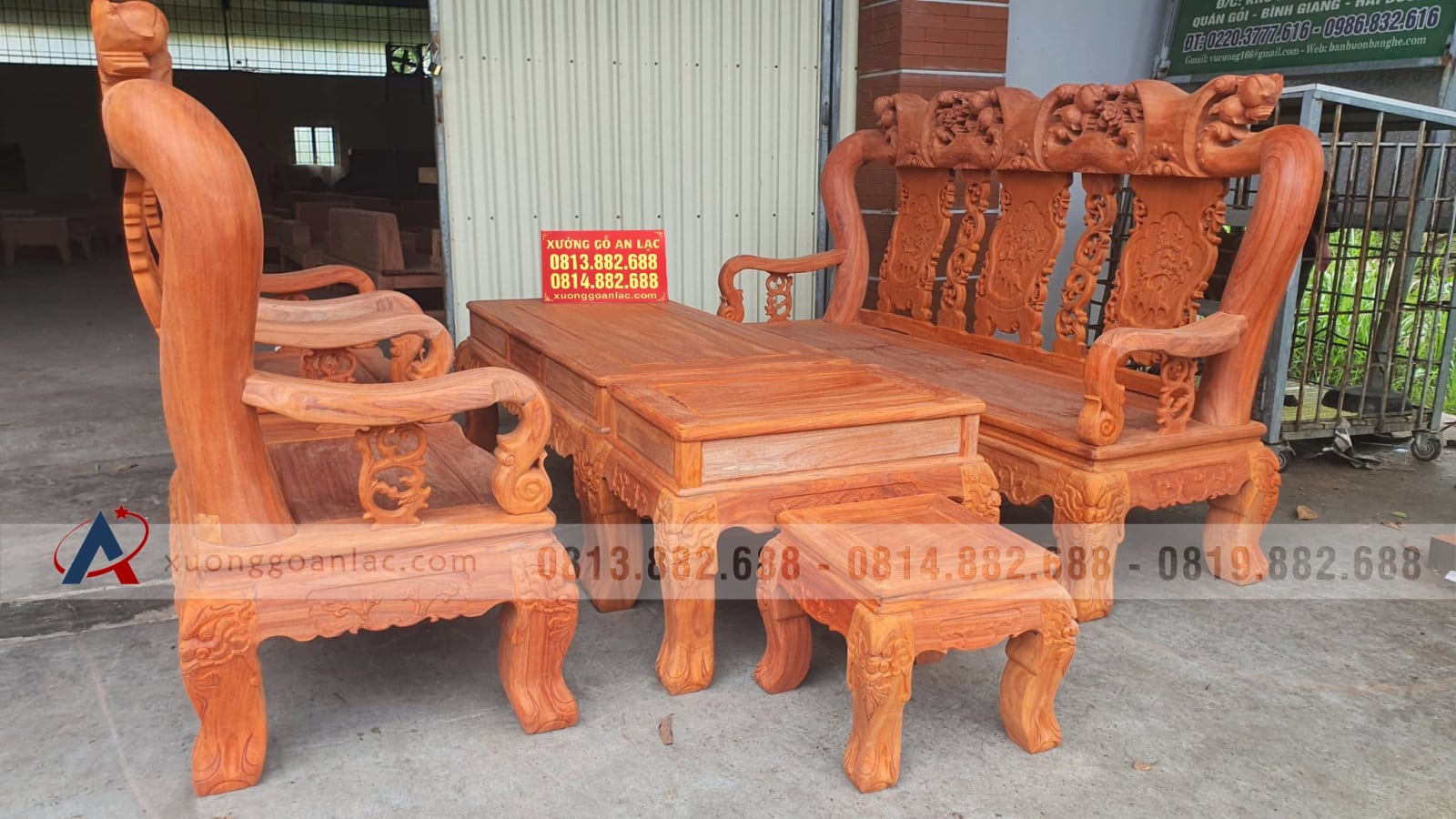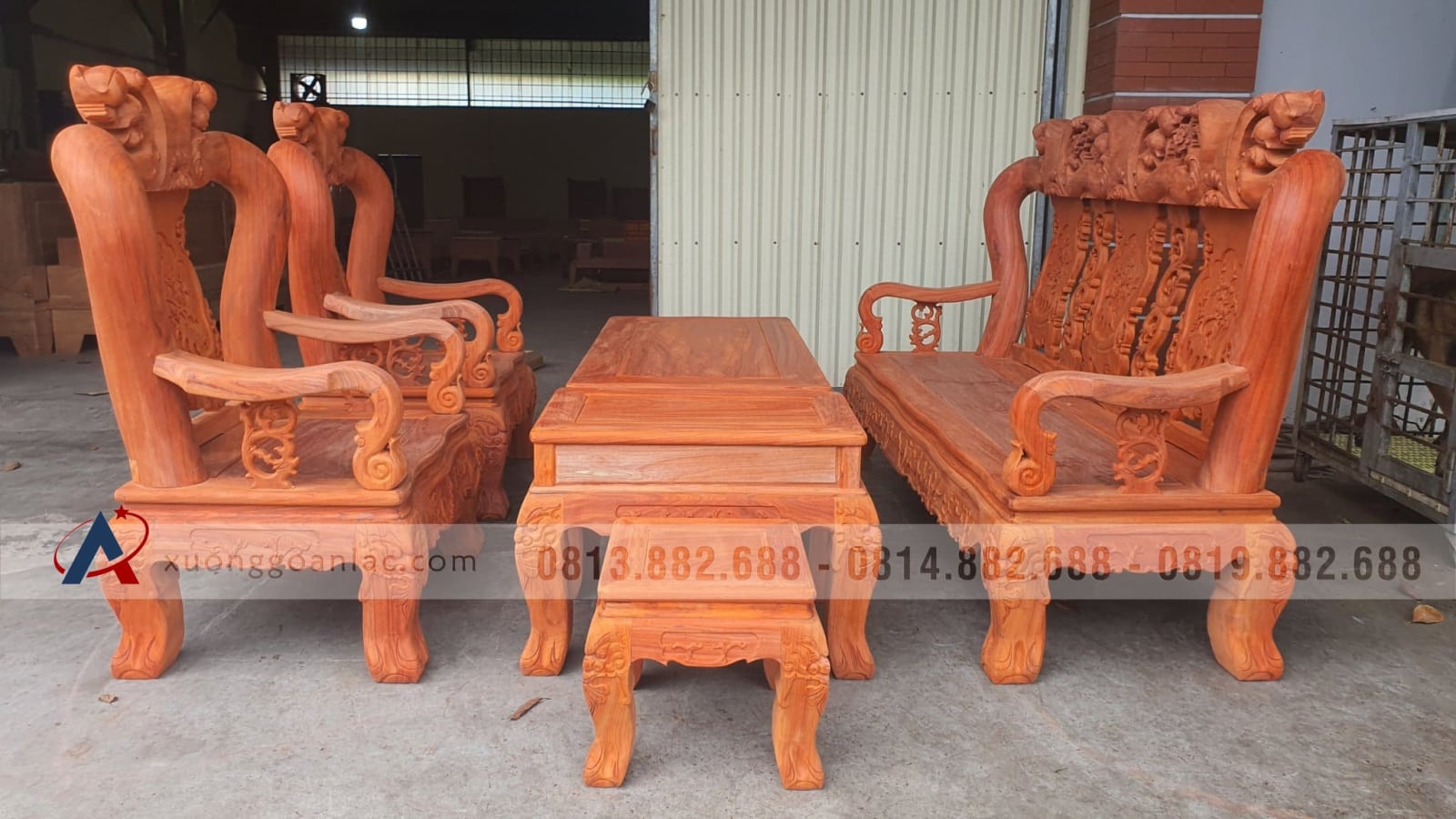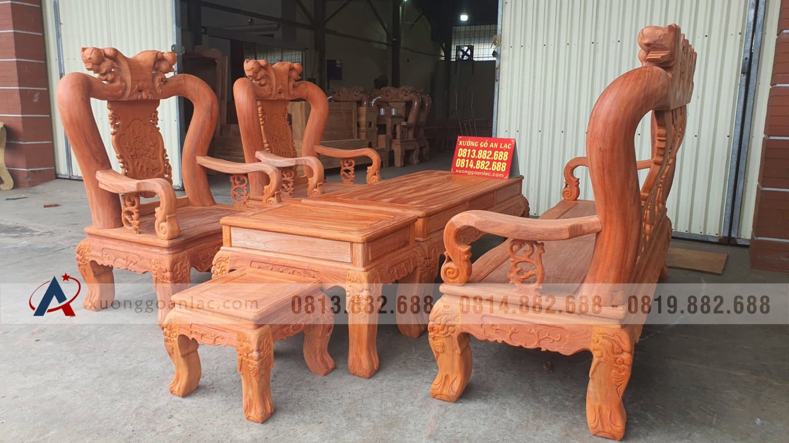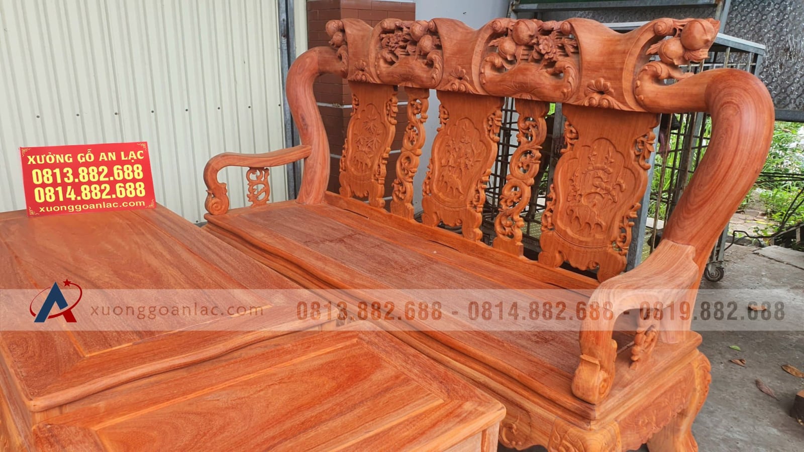 Bộ bàn ghế quốc đào 6 món cột 14 gỗ hương đỏ của anh Lộc (Hà Nội) là hàng kỹ đẹp