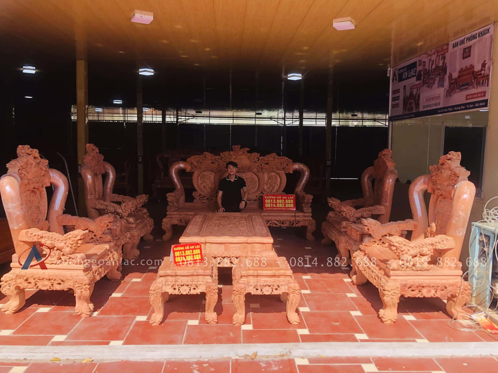 Xưởng gỗ An Lạc giới thiệu bộ bàn ghế Minh quốc nghê 10 món cột 16 hương đá cao cấp hoàn thiện xong phần mộc thô cho gia đình anh Minh ở Hải Phòng.