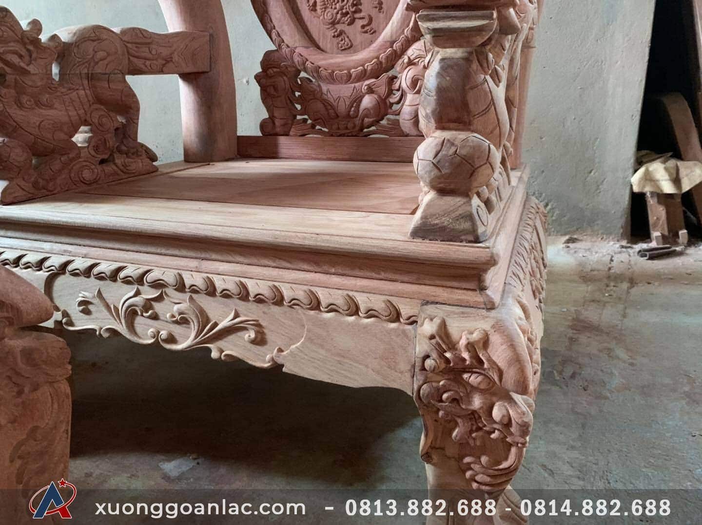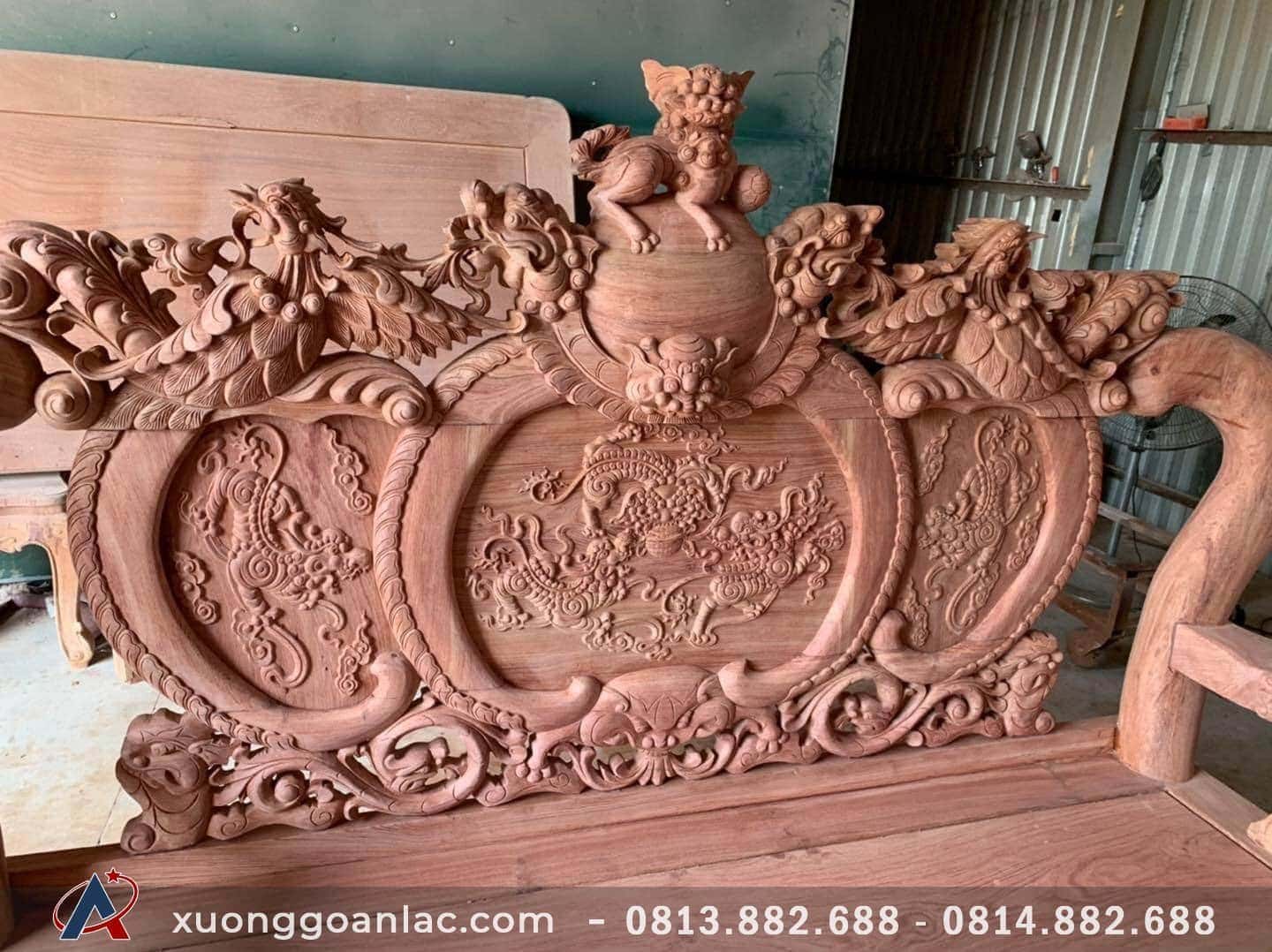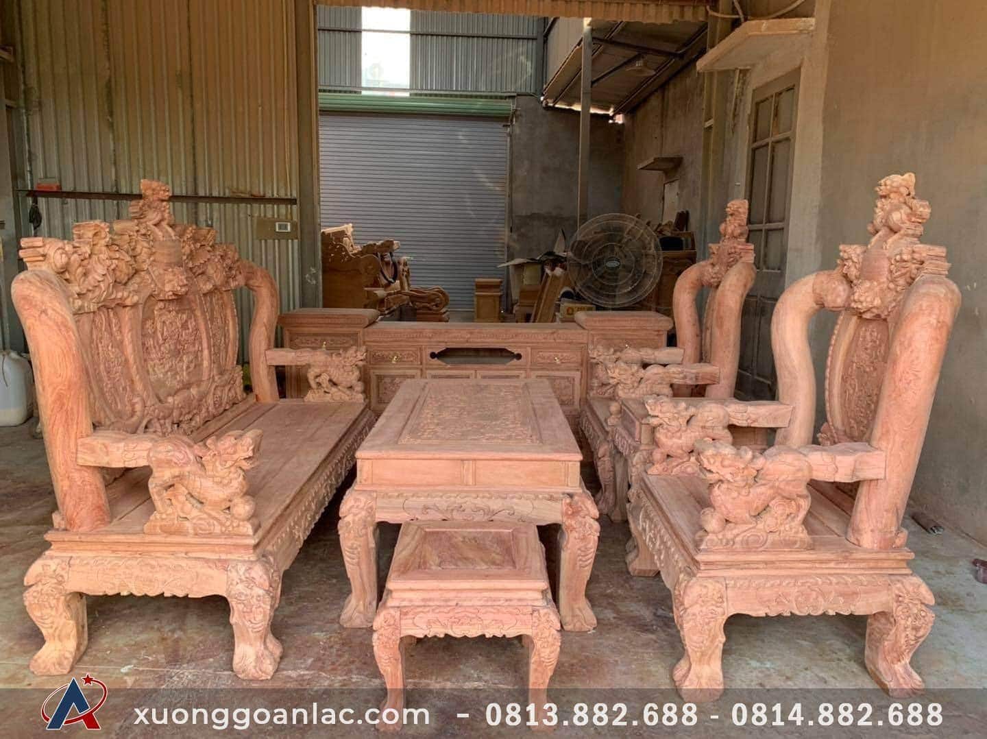 Hôm nay em bổ sung vào bộ sưu tập bàn ghế gỗ phòng khách của Xưởng Gỗ An Lạc một bộ nghê đỉnh phượng hóa gỗ hương đá vừa mới dựng xong còn đang để nguyên mộc.