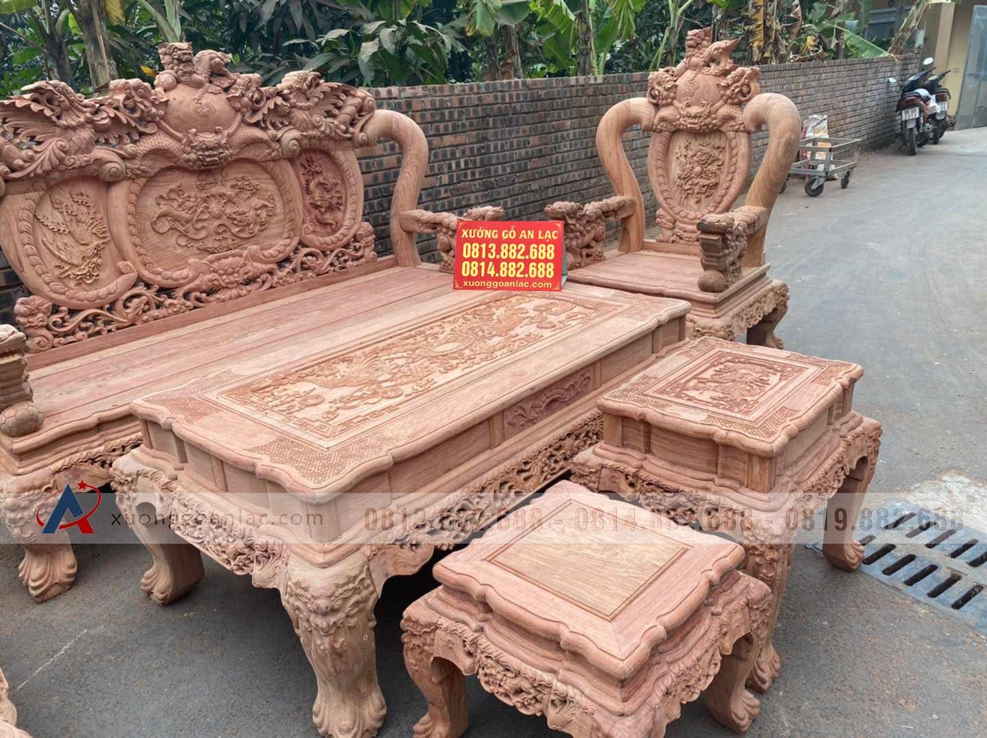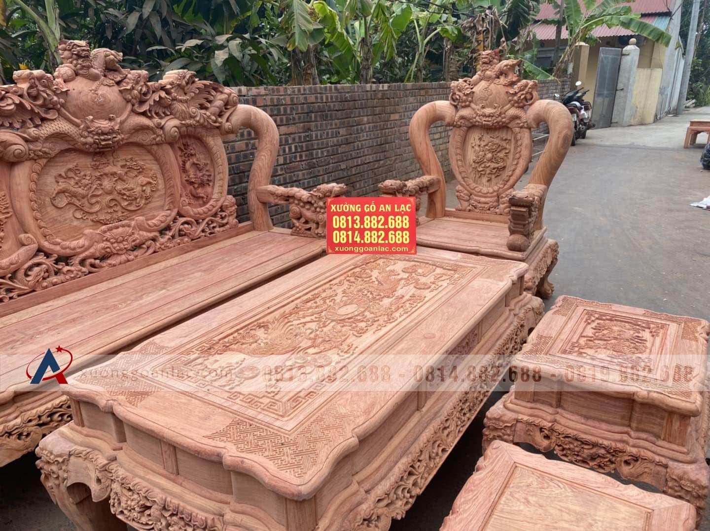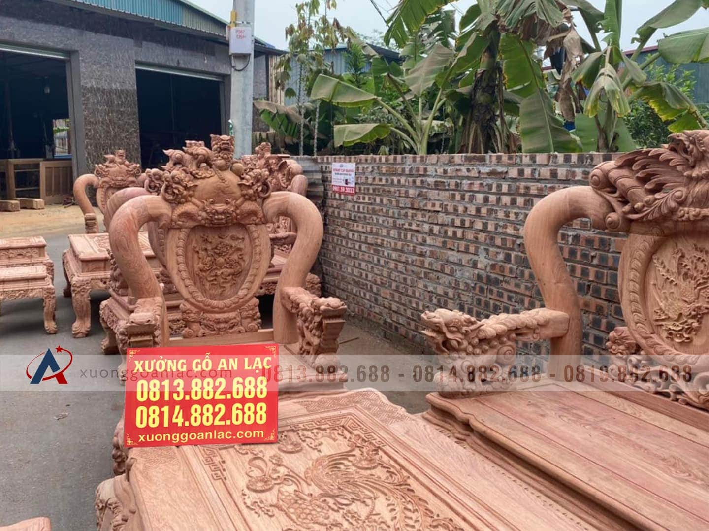 Xưởng gỗ An Lạc tiếp tục chuẩn bị khâu cuối cùng cho sự ra đời bộ bàn ghế Minh Quốc mẫu Nghê Đỉnh tay cột 12cm gỗ hương đá cao cấp siêu khủng, đục khắc nhiều và hoàn toàn thủ công cho anh Tiêu ở Bắc Giang. Từ khâu chọn gỗ, lên bản thiết kế cũng như các công đoạn khác, chúng tôi vô cùng tỉ mỉ và cẩn thận để có 1 sản phẩm hoàn hảo nhất.