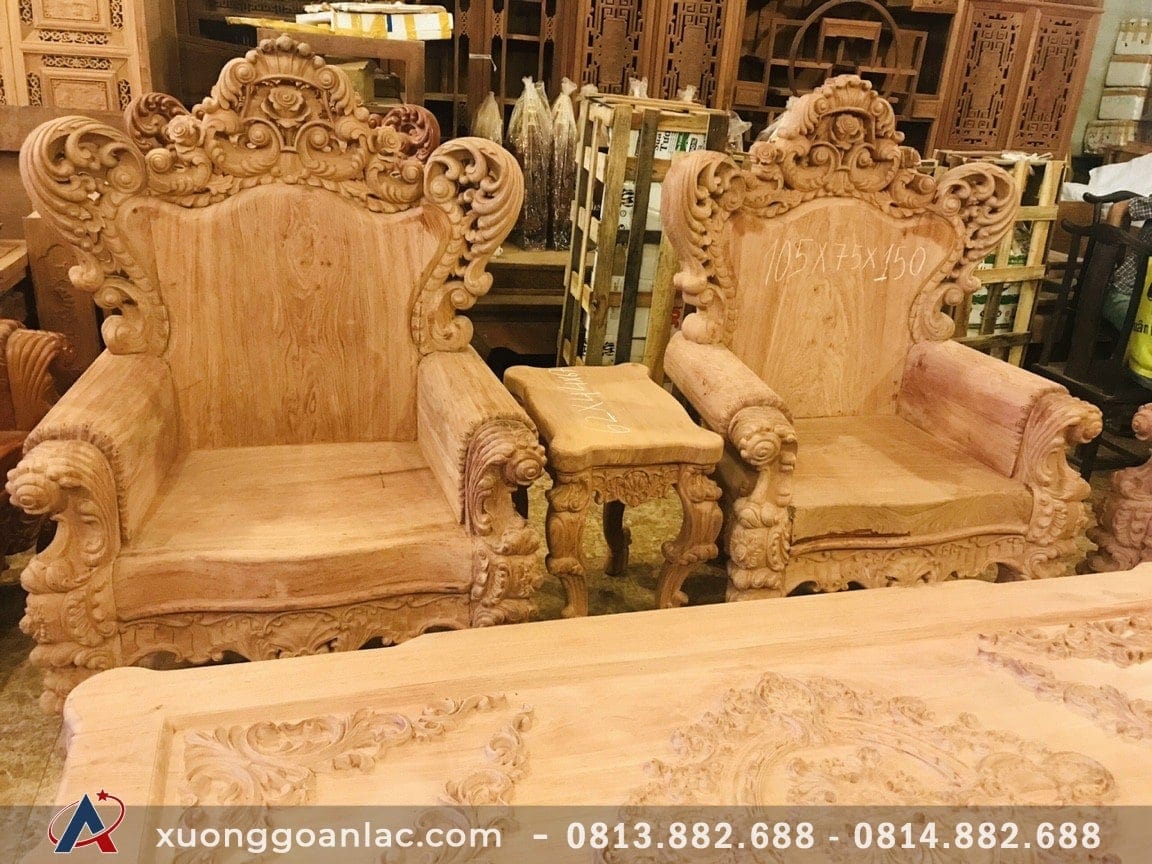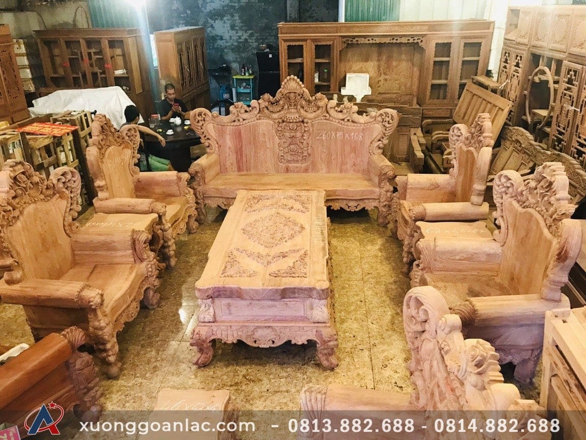 Vợ chồng anh Sơn đi gần 30km đến xưởng gỗ An Lạc để thăm quan và đặt nội thất. Anh chị có đặt của xưởng một bộ bàn ghế hoàng gia 10 món gỗ hương đỏ hàng siêu vip của xưởng. Yêu cầu làm thật kỹ, chụp mộc báo cáo anh chị, sau 1 tháng là phải xong hàng và đây là thành quả: