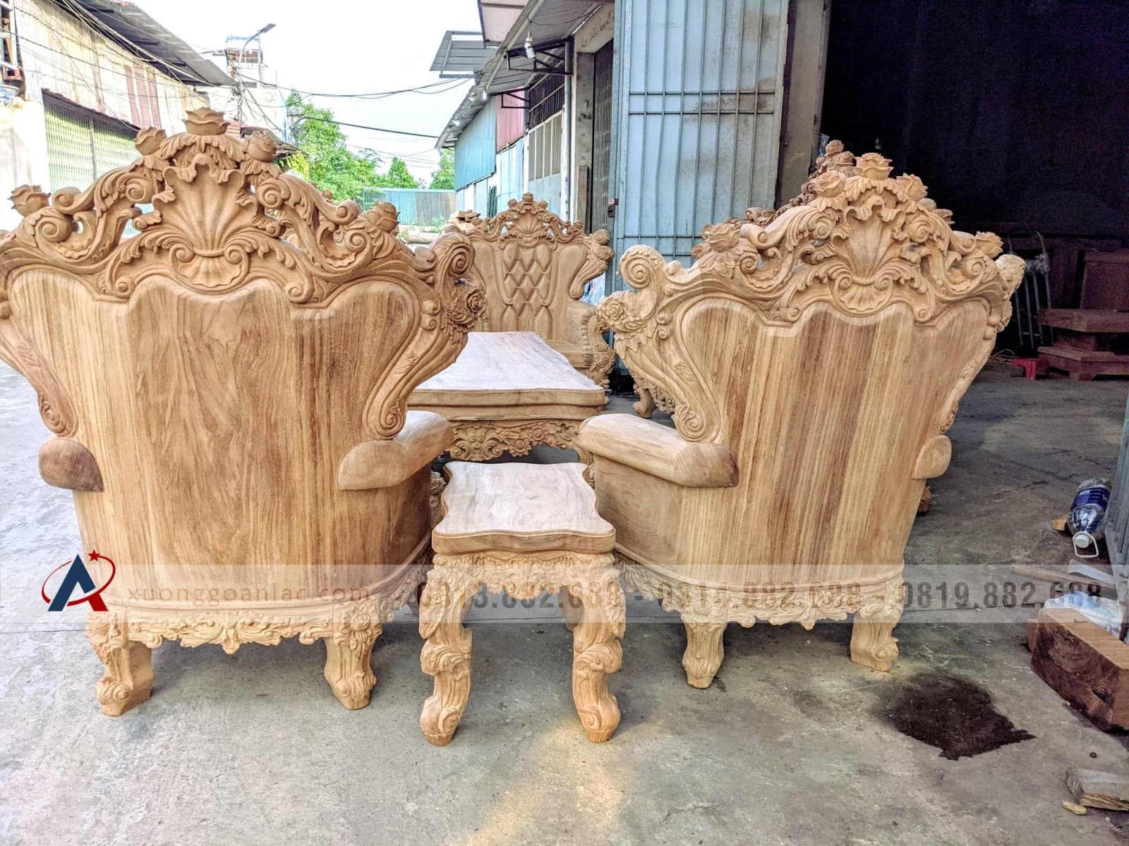 - Bộ bàn ghế Hoàng Gia nguyên khối gỗ gõ đỏ cao cấp được đục tay thủ công 2 mặt vô cùng sắc nét và tinh xảo. Chính kỹ thuật đục 2 mặt đã làm nên độ đẳng cấp và nâng tầm giá trị cho bộ bàn ghế. Đây là yếu tố chỉ có ở các dòng hàng cao cấp siêu phẩm.