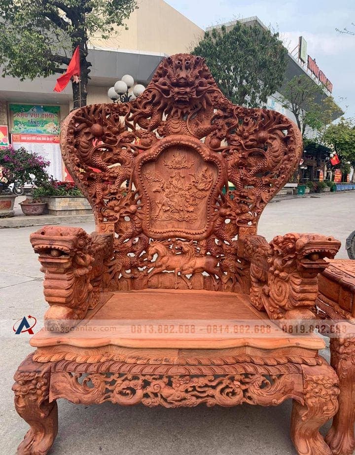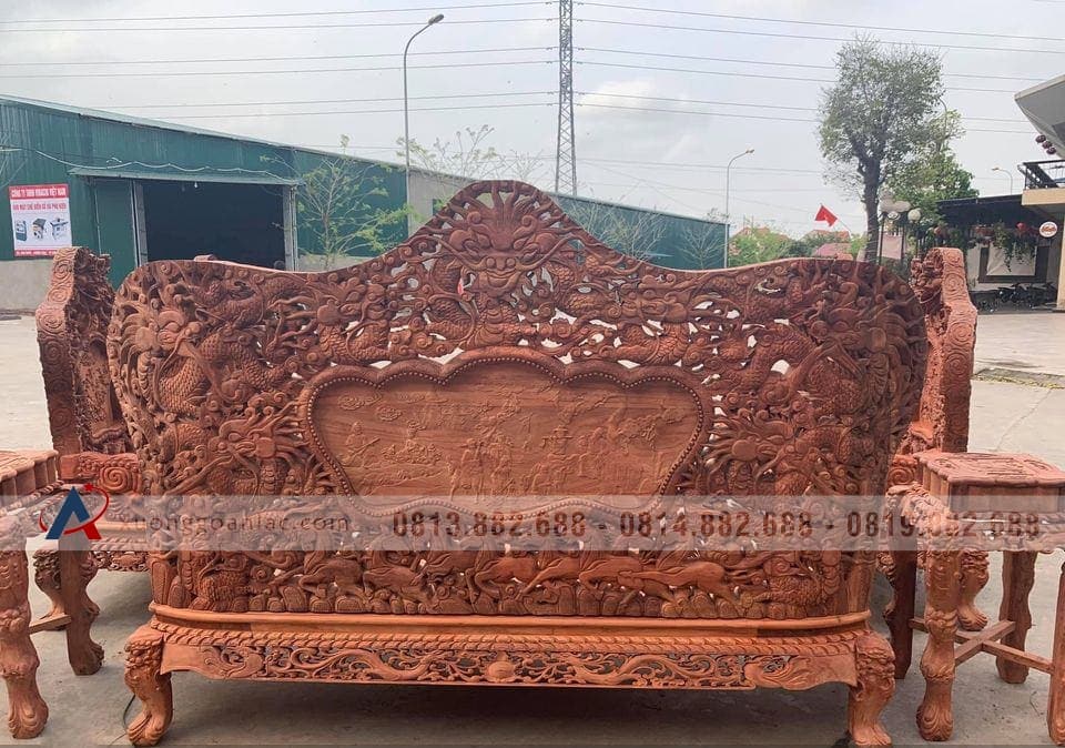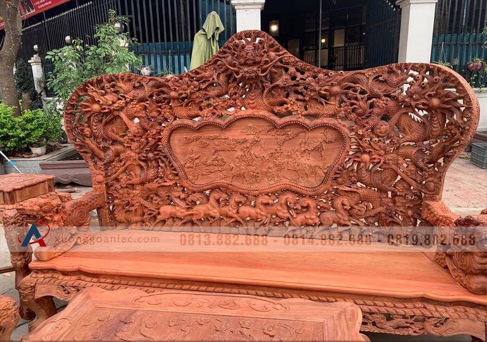 Bộ bàn ghế Cửu Long Bát Mã 2m3 gỗ hương Lào 12 món đục 2 mặt siêu VIP