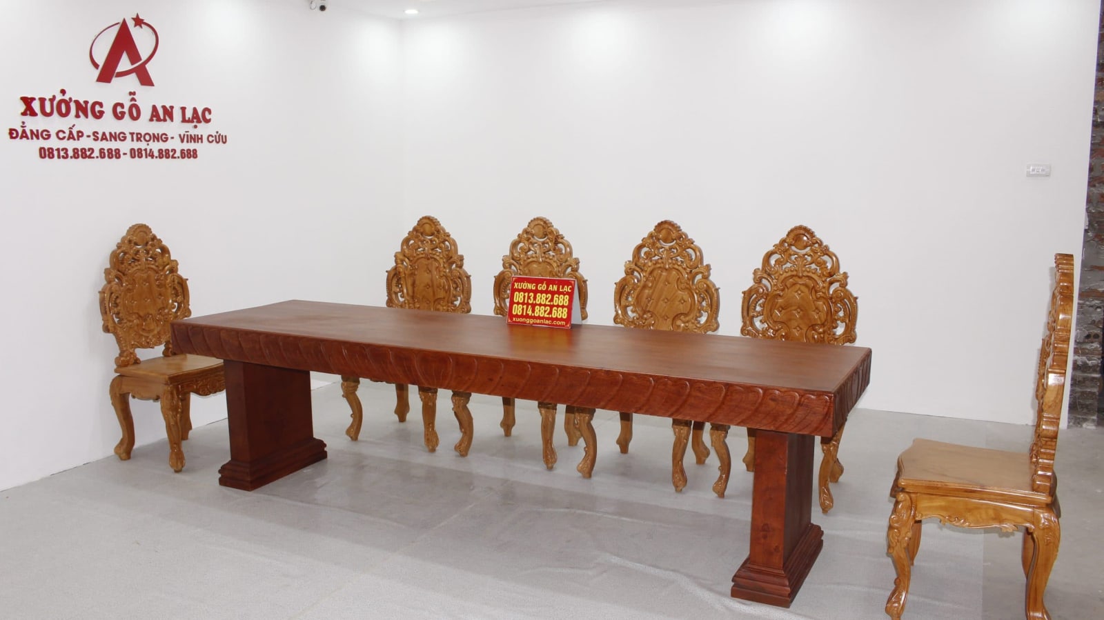 - Điển hình như mẫu bàn ăn nguyên khối kết hợp ghế Louis hoàng gia hoặc bộ bàn nguyên khối K3 phù hợp làm bàn ăn, bàn tiếp khách. Cũng có thể sử dụng nó như một bàn họp công ty,…