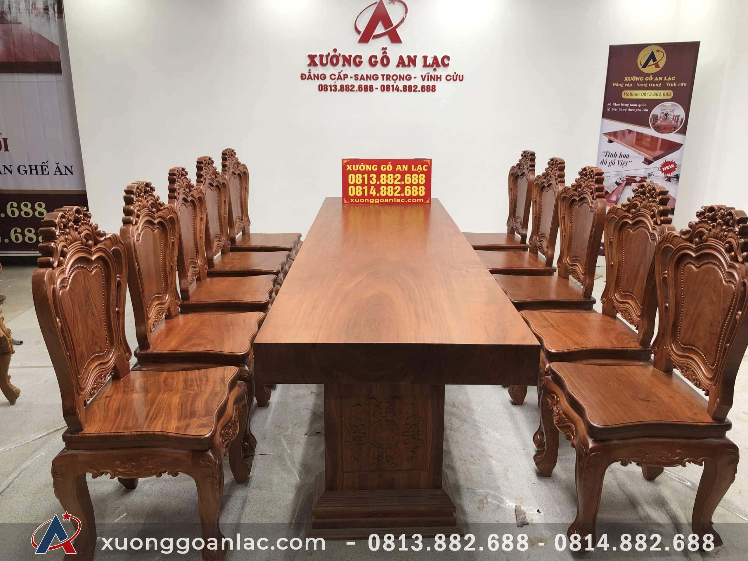 Bàn ăn gỗ hương đá khổ lớn siêu vip có thể sử dụng làm bàn tiếp khách, bàn hội họp, bàn ăn đều rất phù hợp.