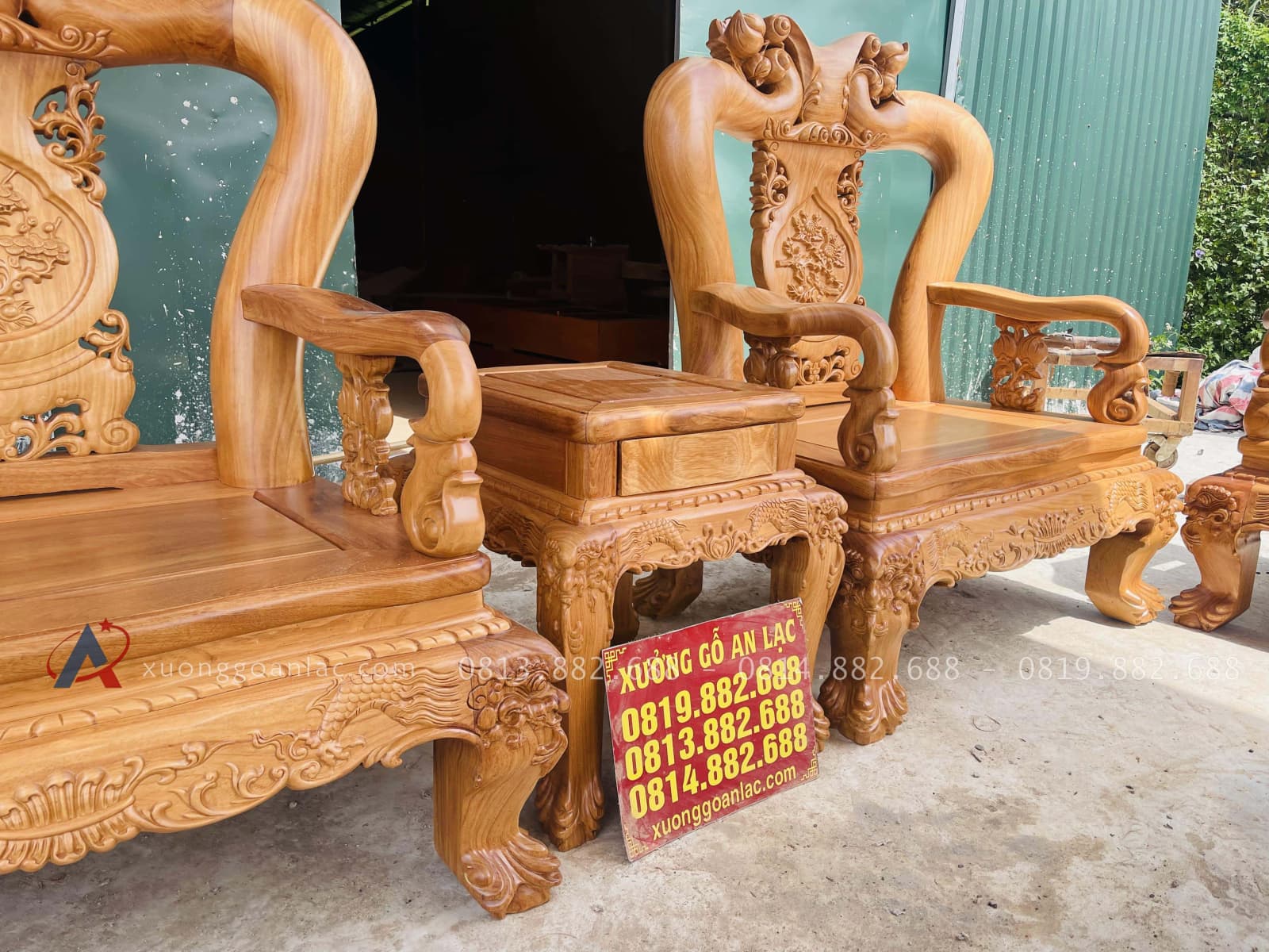 Xưởng Gỗ An Lạc vừa hoàn thiện xong bộ bàn ghế quốc đào 10 món gỗ gõ đỏ cho anh Nghĩa ở Hải Dương. Anh Là người trực tiếp lên kiểm tra ký mộc và yêu cầu xưởng phun sơn Pu màu trần tự nhiên theo đúng sở thích của gia đình. Dưới đây là hình ảnh bộ sản phẩm hoàn thiện chuẩn bị lên đường chuyển về bàn giao cho gia đình anh Nghĩa. Mời các bác cùng tham khảo.