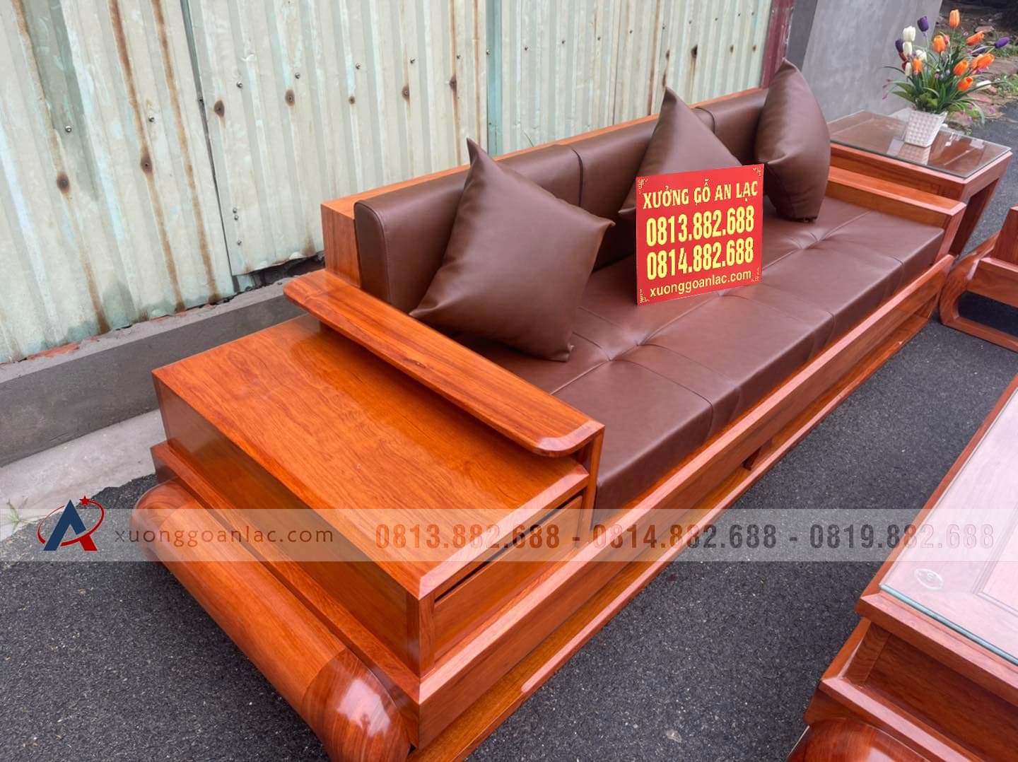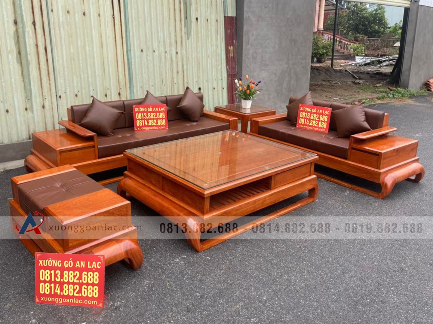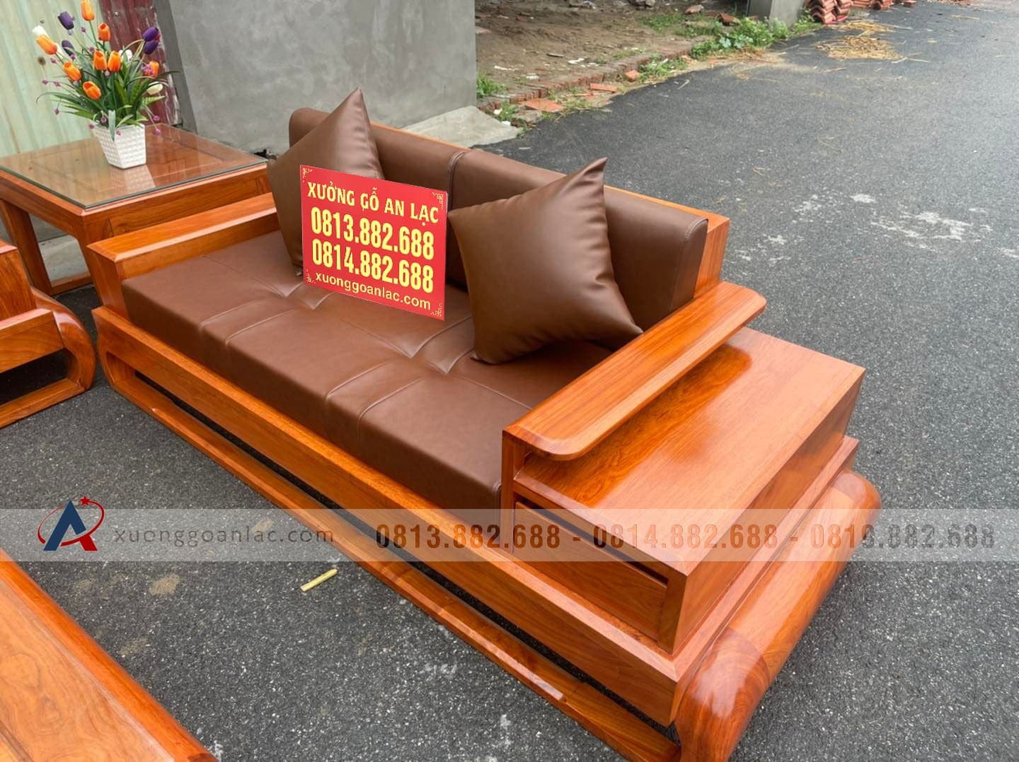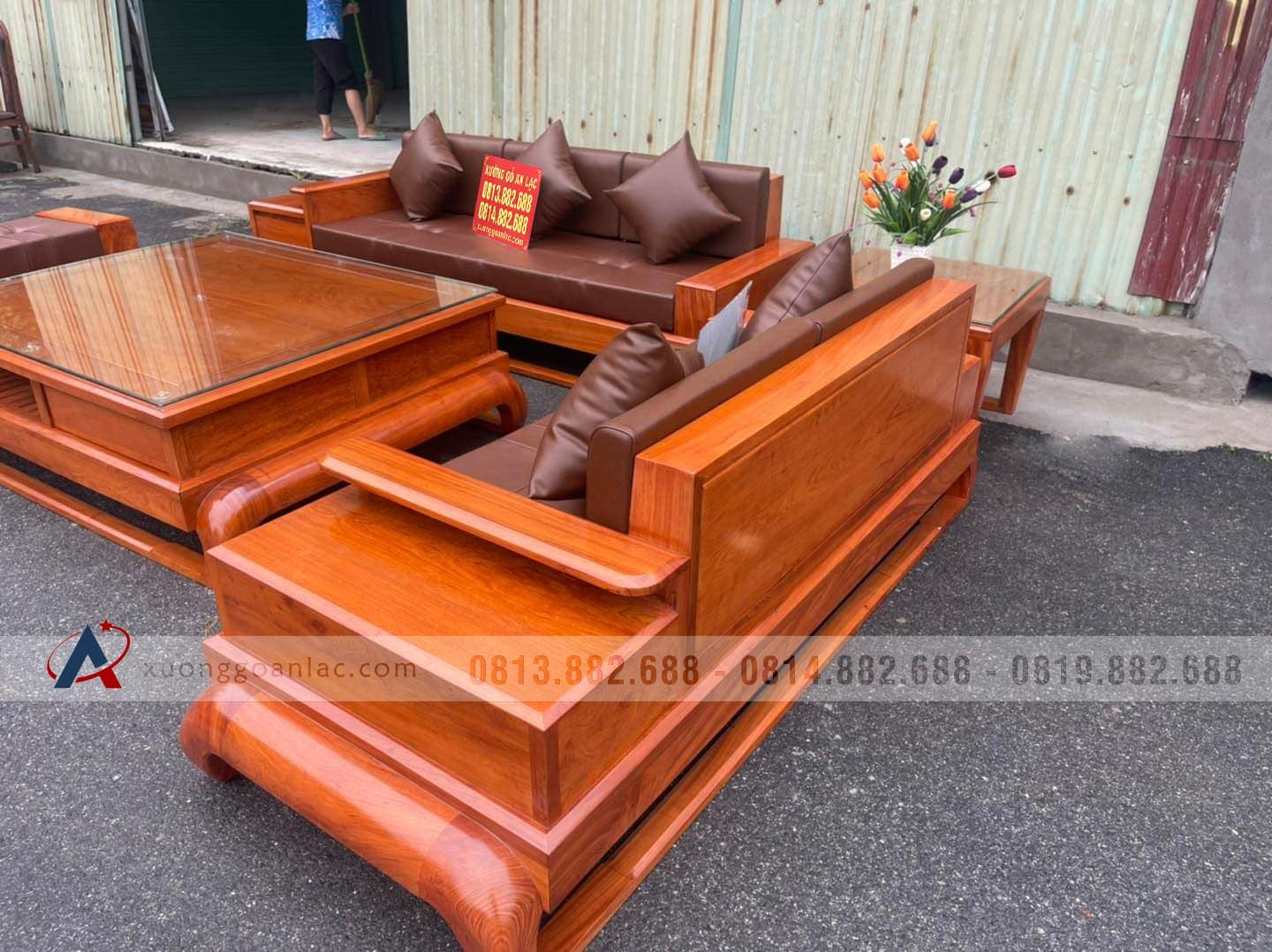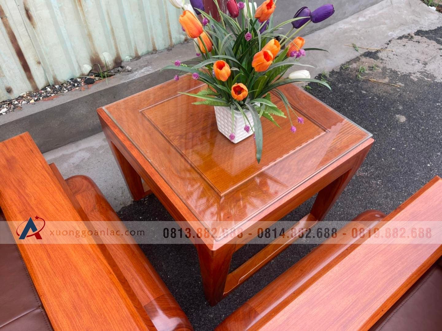 [Hoàn Thiện] Bộ sofa đùi gà bàn vuông đại gỗ hương đá (anh Tuấn, Thái Nguyên)
