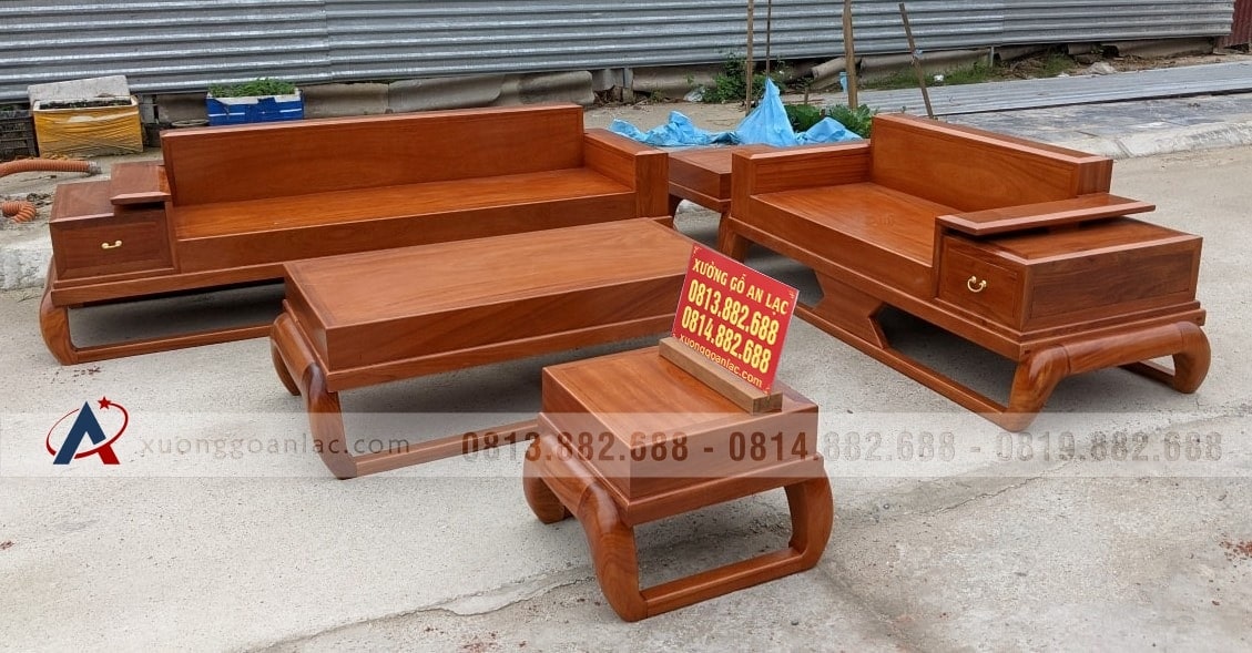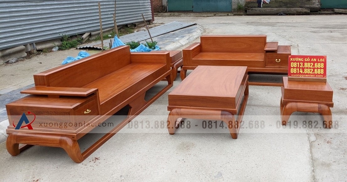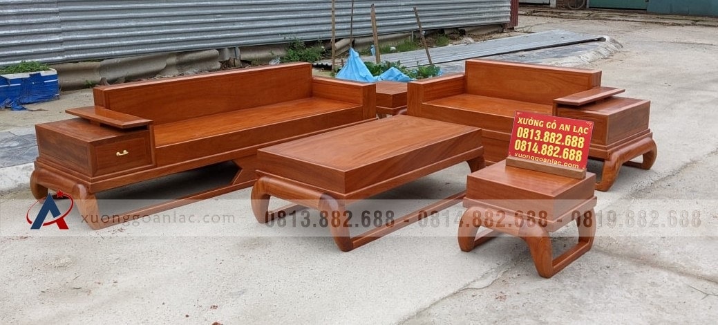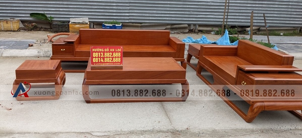 [Hoàn Thiện] Bộ sofa gỗ gõ đỏ hàng đóng hộp ván long mộng khung (chị Thoan, Bắc Ninh)