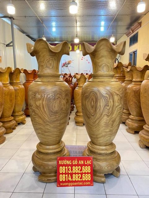 Anh Chinh ở Nam Định đã gọi điện để đặt xưởng đôi lục bình gỗ cẩm vàng cao 1m97. Anh yêu cầu lựa cho anh đôi thật đẹp, không mắt, không nứt, và sơn pu bóng mờ cho anh. Mộc và hoàn thiện đều phải để anh kiểm tra, xong thì giao hàng ngay. Mời các bác cùng chiêm ngưỡng sản phẩm bên dưới: