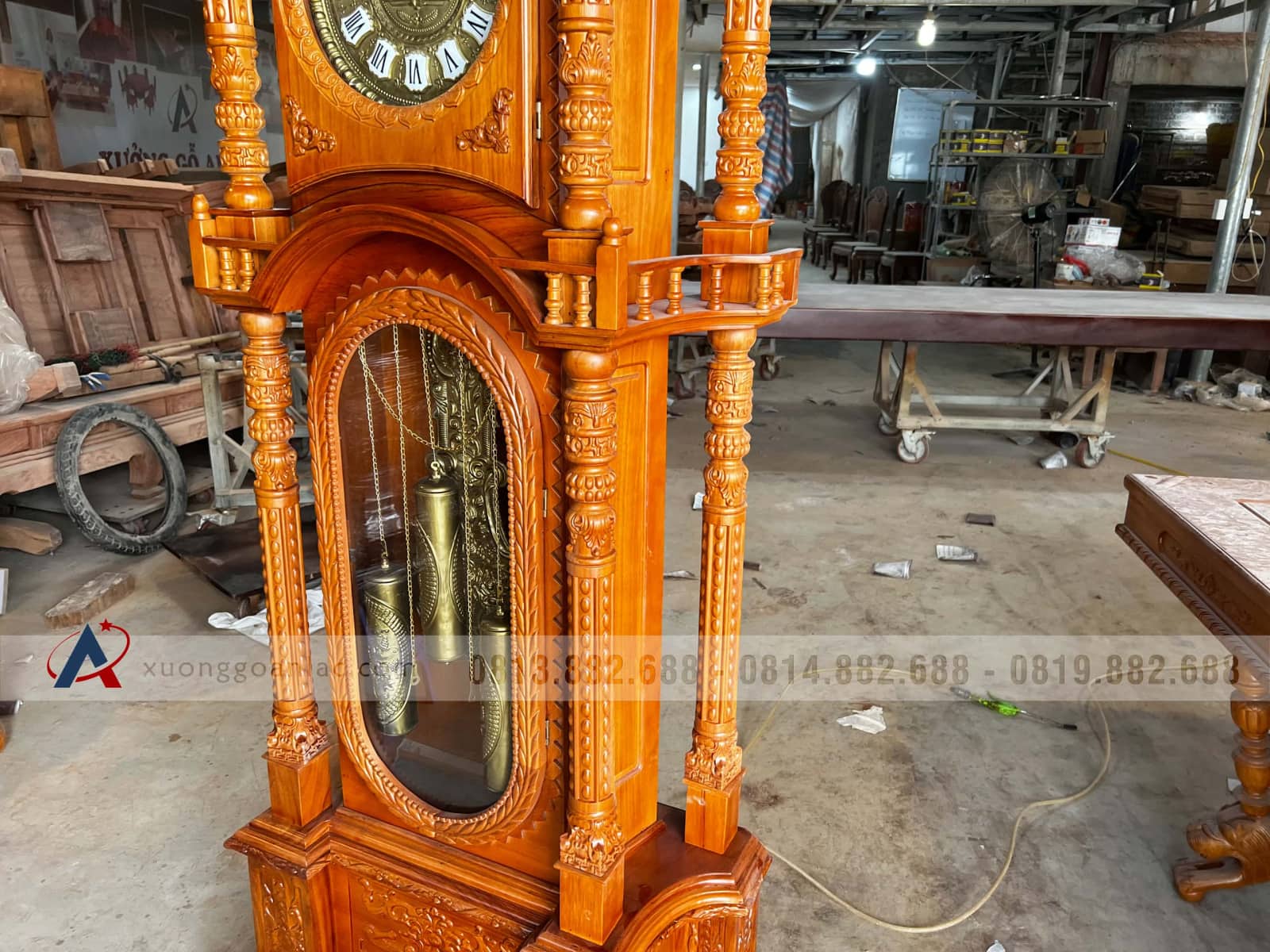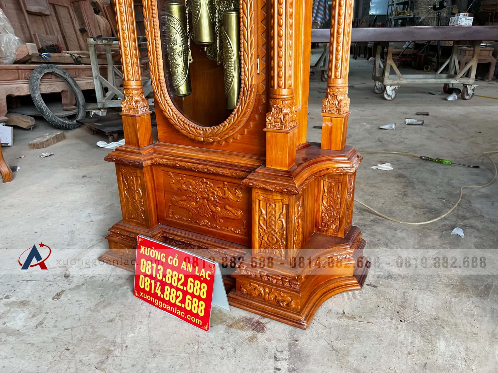 Đồng hồ mẫu trụ vát gỗ gõ đỏ cao cấp (anh Thịnh, Lào Cai)