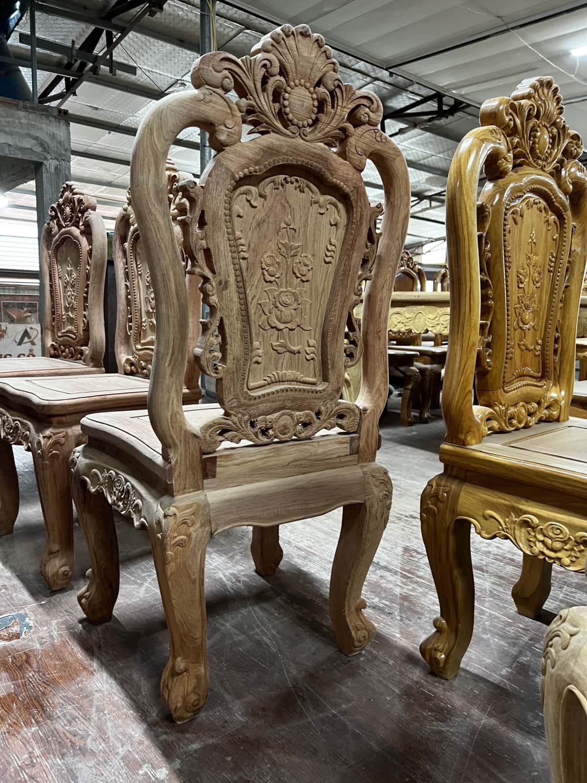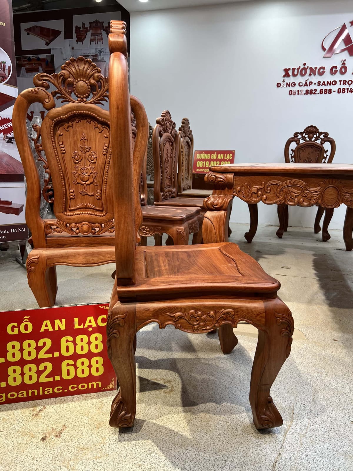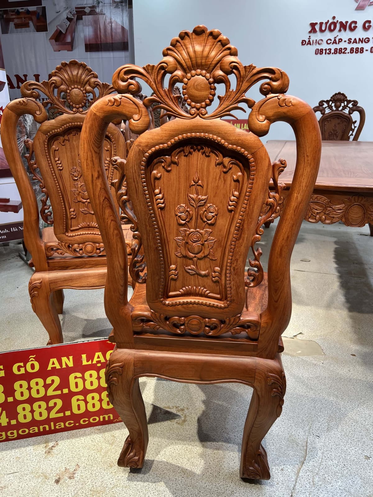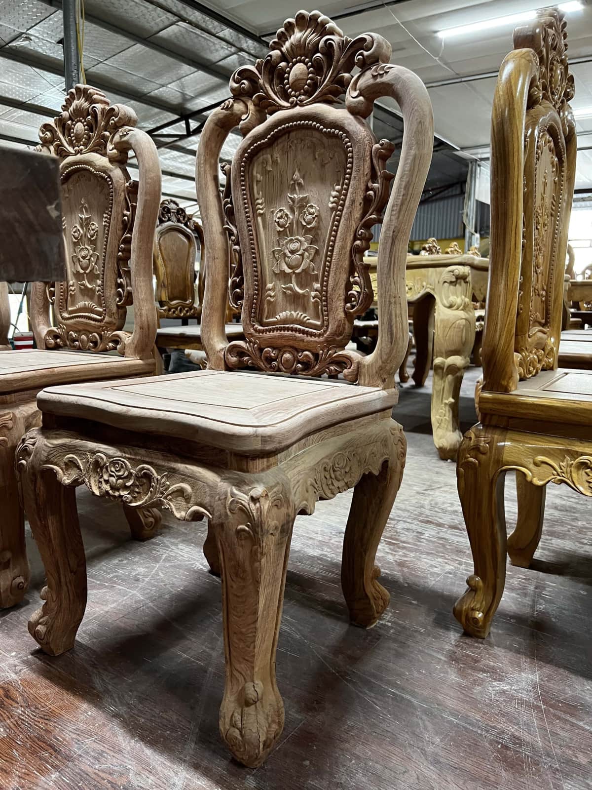 Ghế ăn louis hồng hạt hương đá đục 2 mặt khung 4 ván 2cm