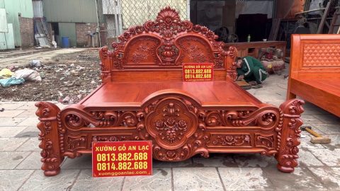 Giường hoa hồng 1m8 x 2m gỗ Hương Đá