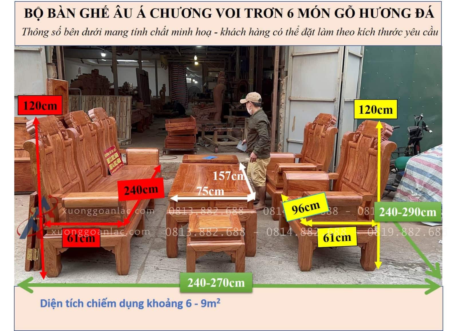 Thông số kích thước bộ bàn ghế Âu Á chương voi của anh Linh: