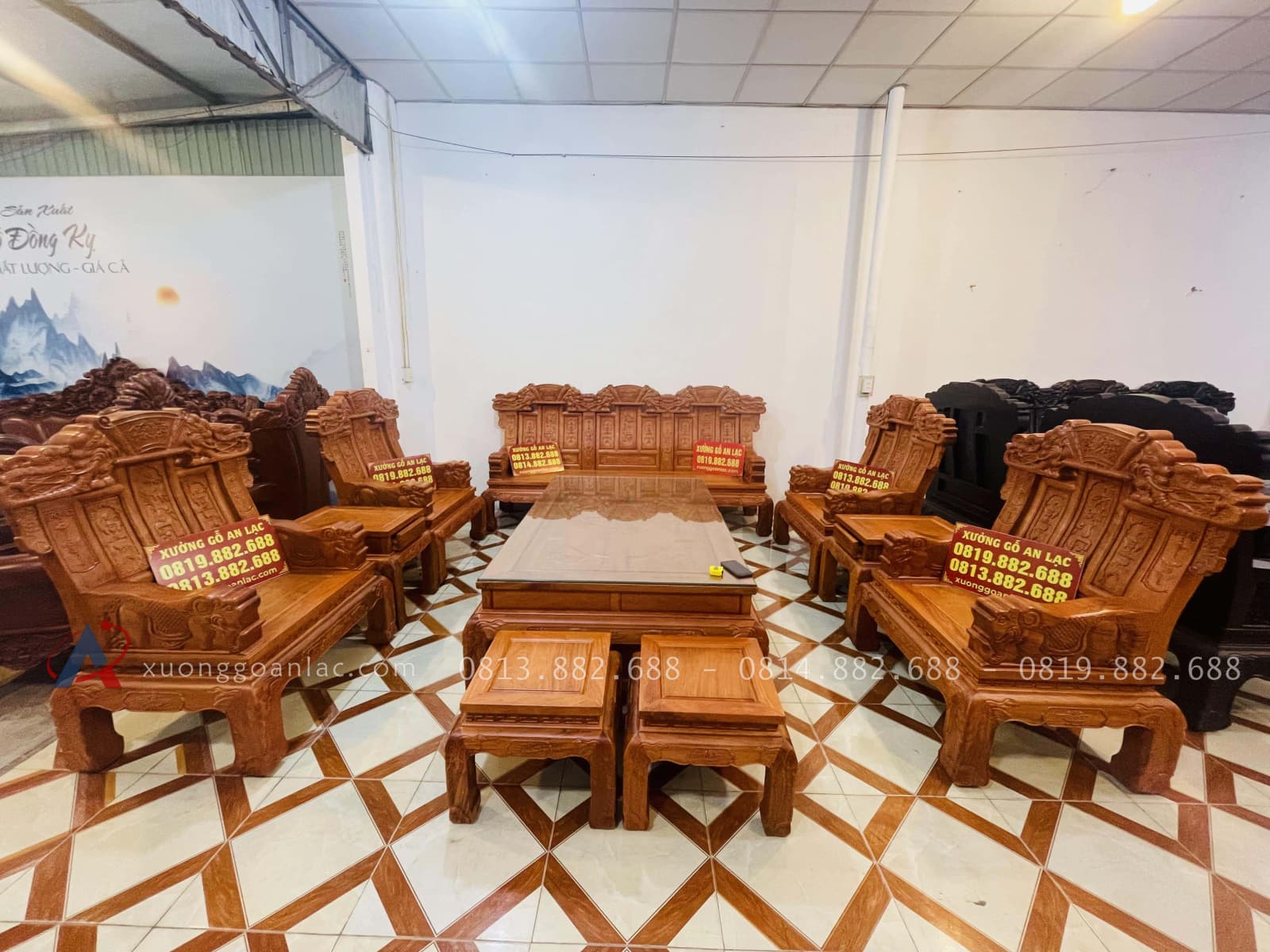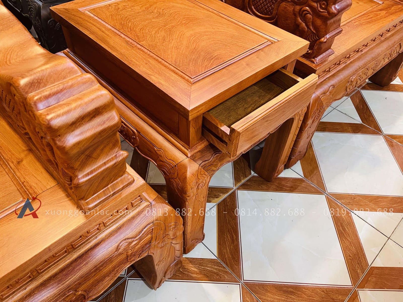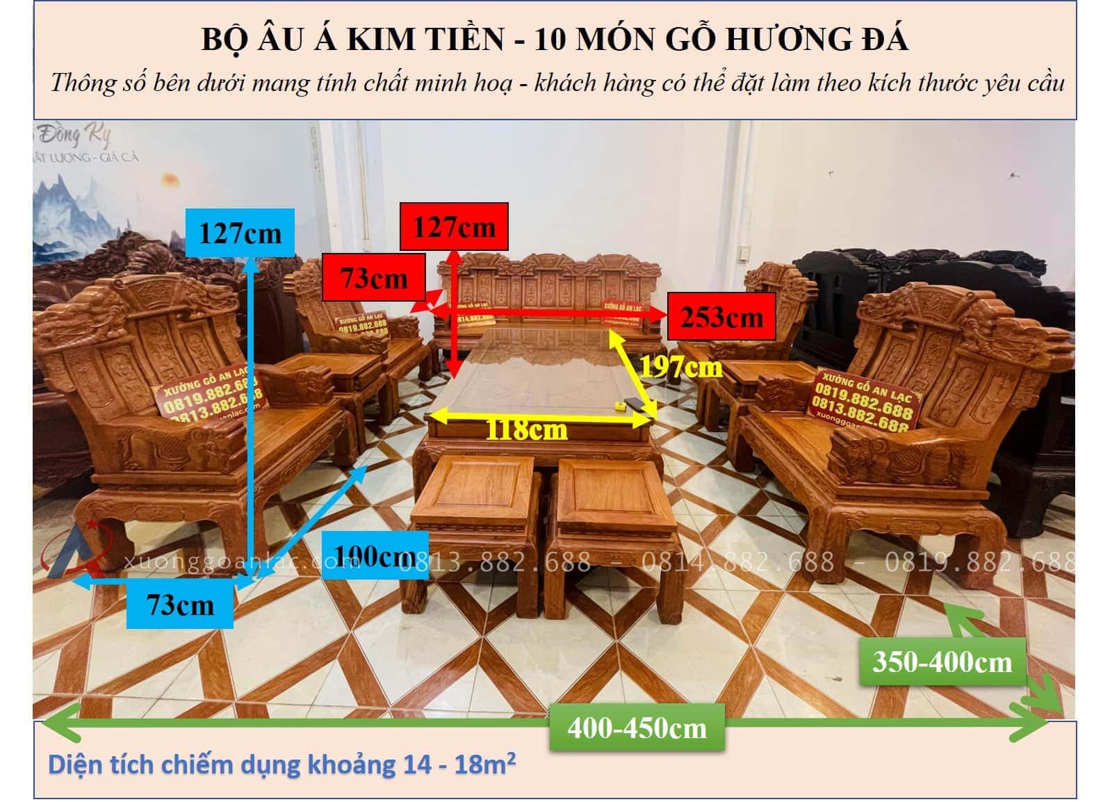 [Hoàn thiện] Bộ bàn ghế Âu Á kim tiền gỗ hương đá 10 món.