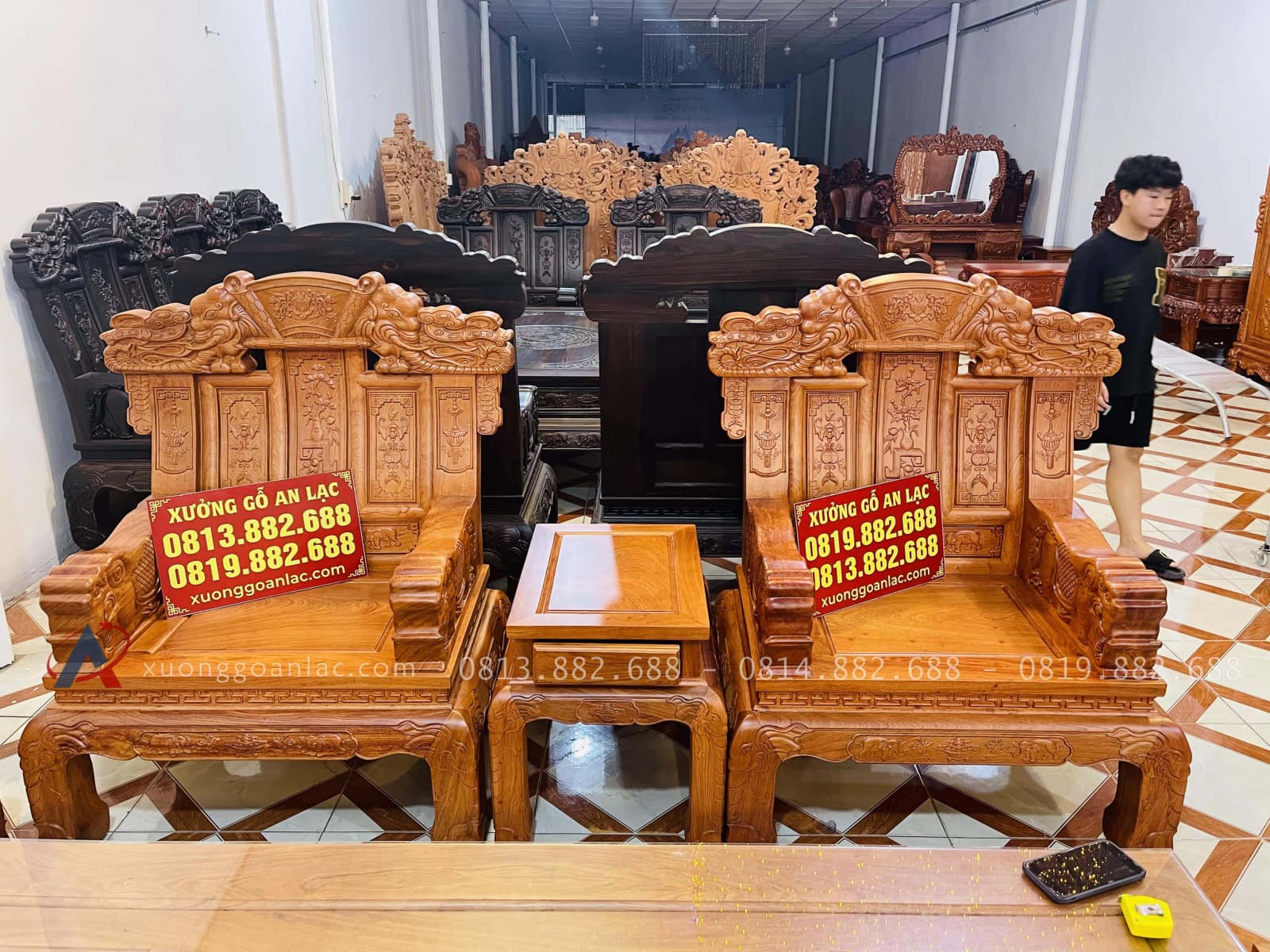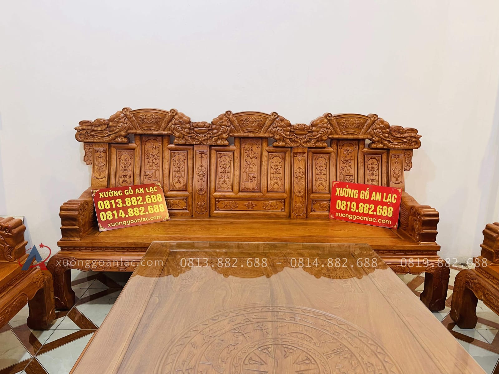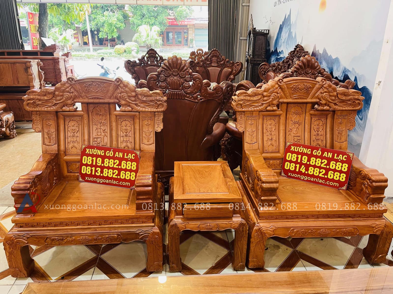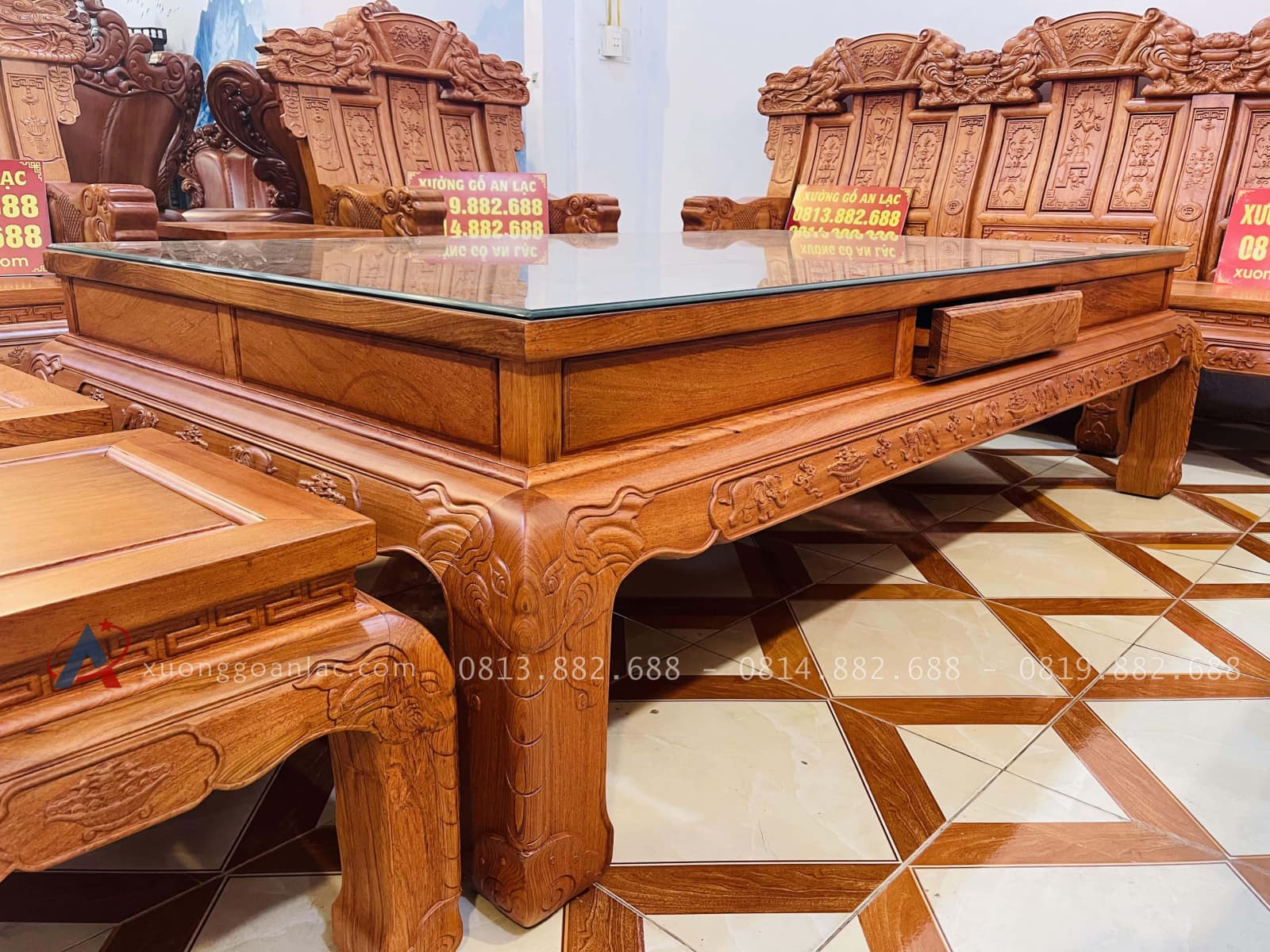 [Hoàn thiện] Bộ bàn ghế Âu Á kim tiền gỗ hương đá 10 món.