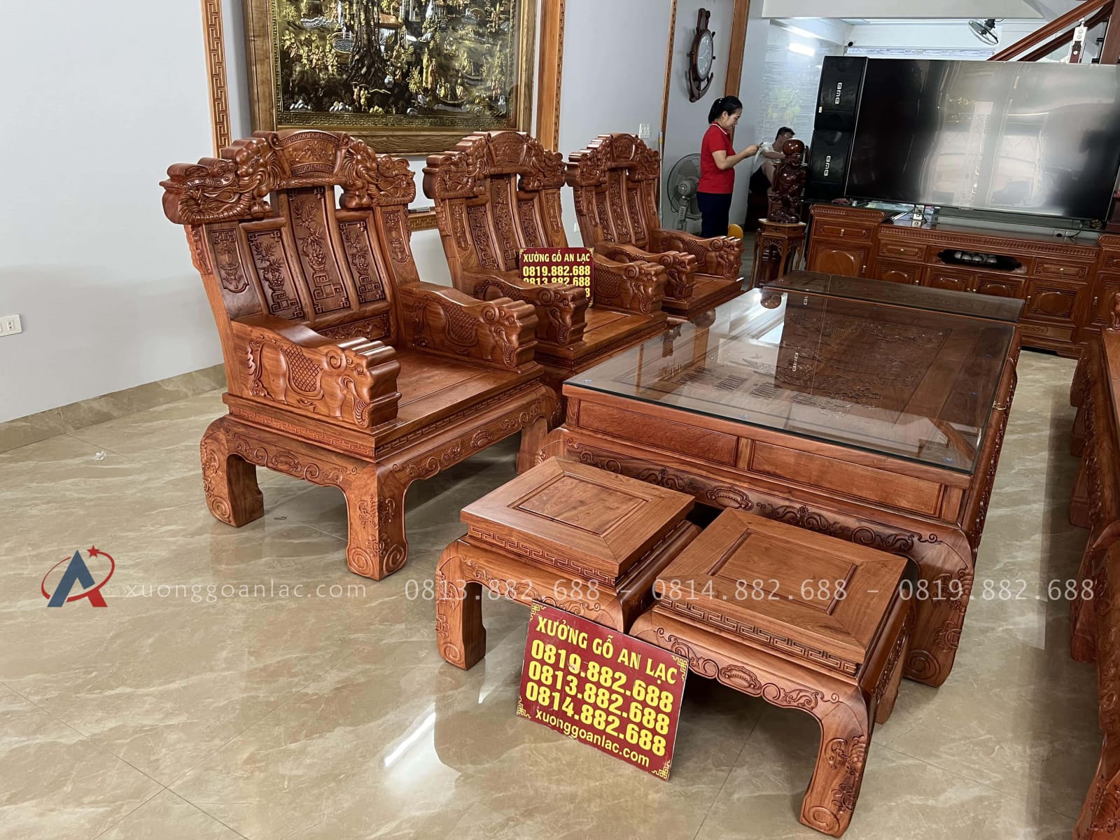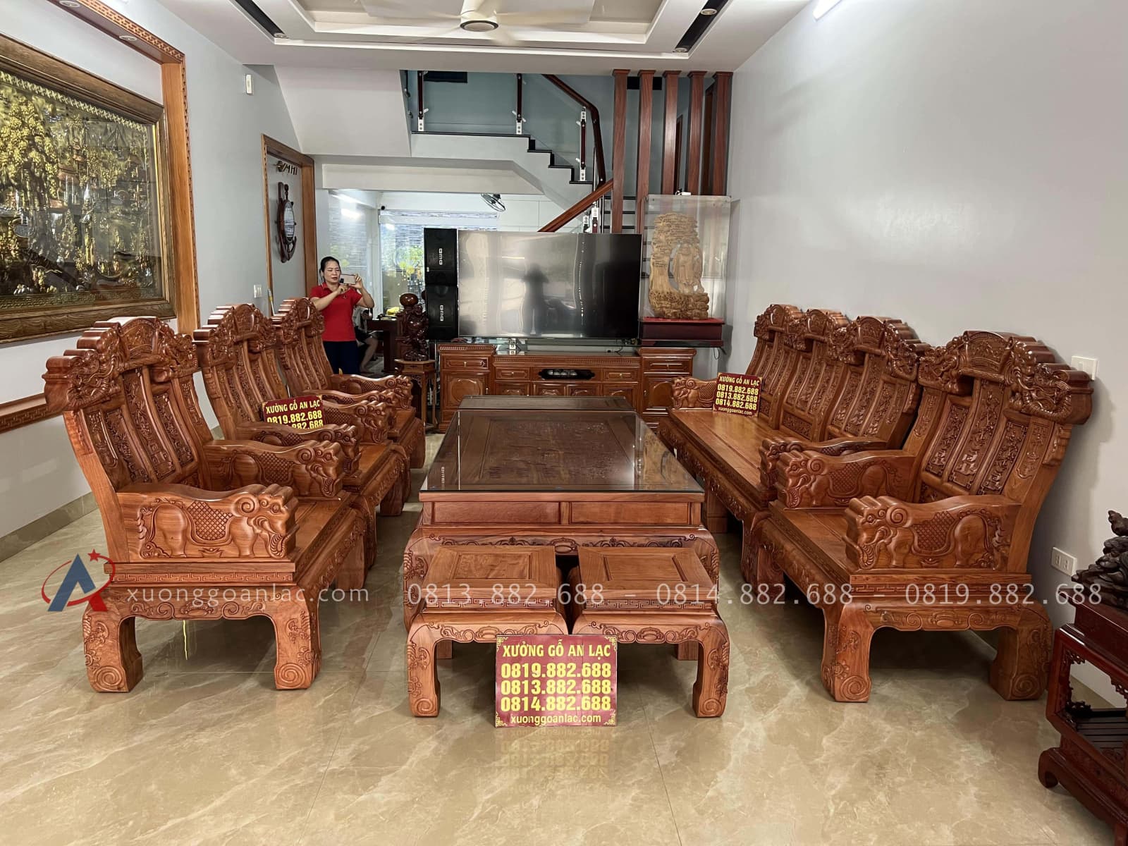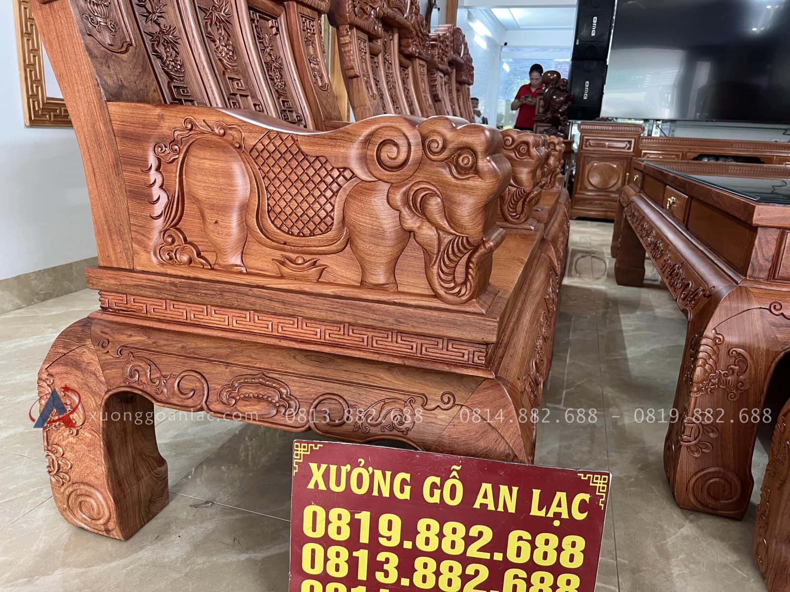 [Hoàn thiện] Bộ bàn ghế Âu Á voi Như Ý 10 chân 14 món gỗ hương đá cao cấp