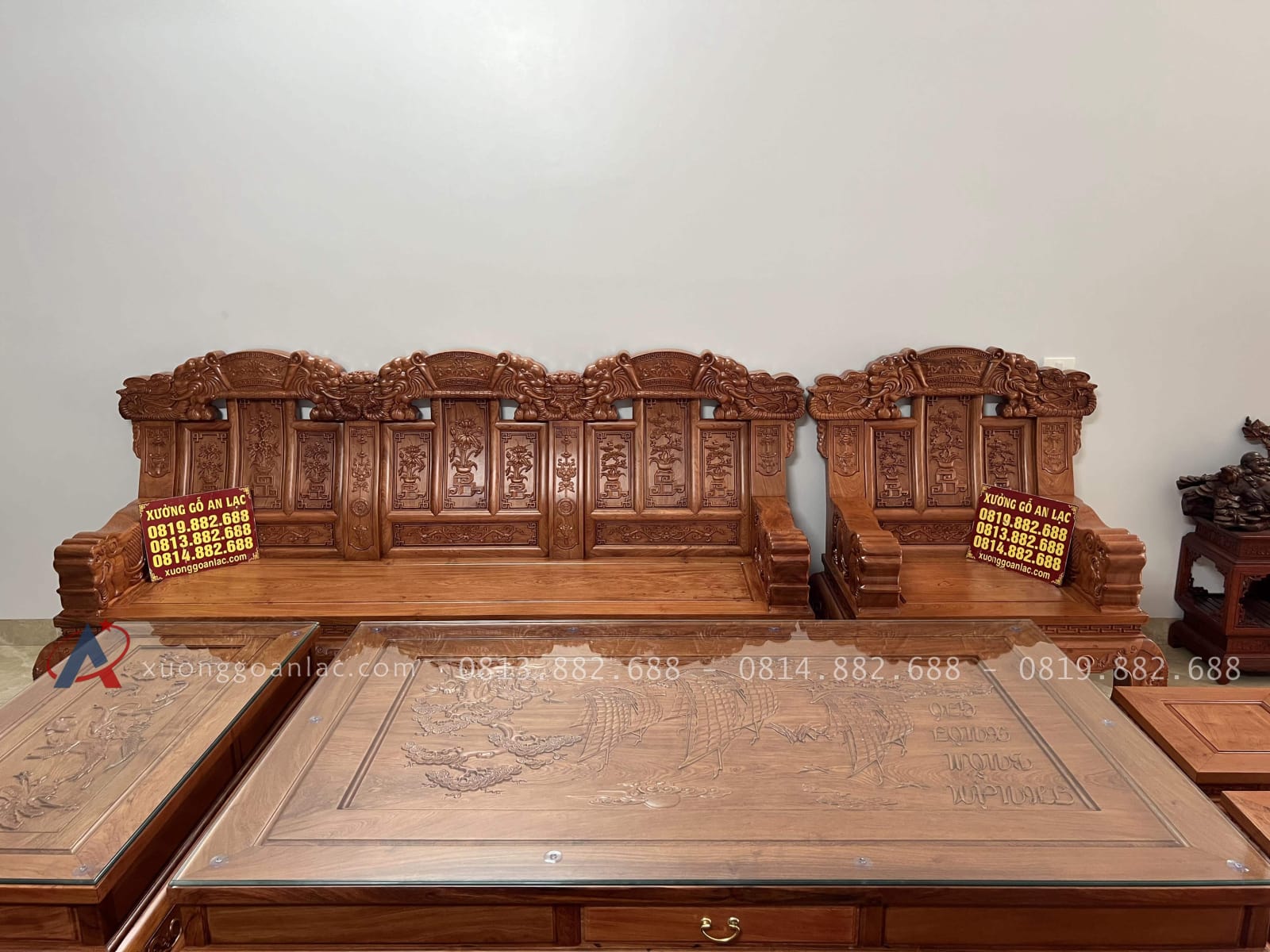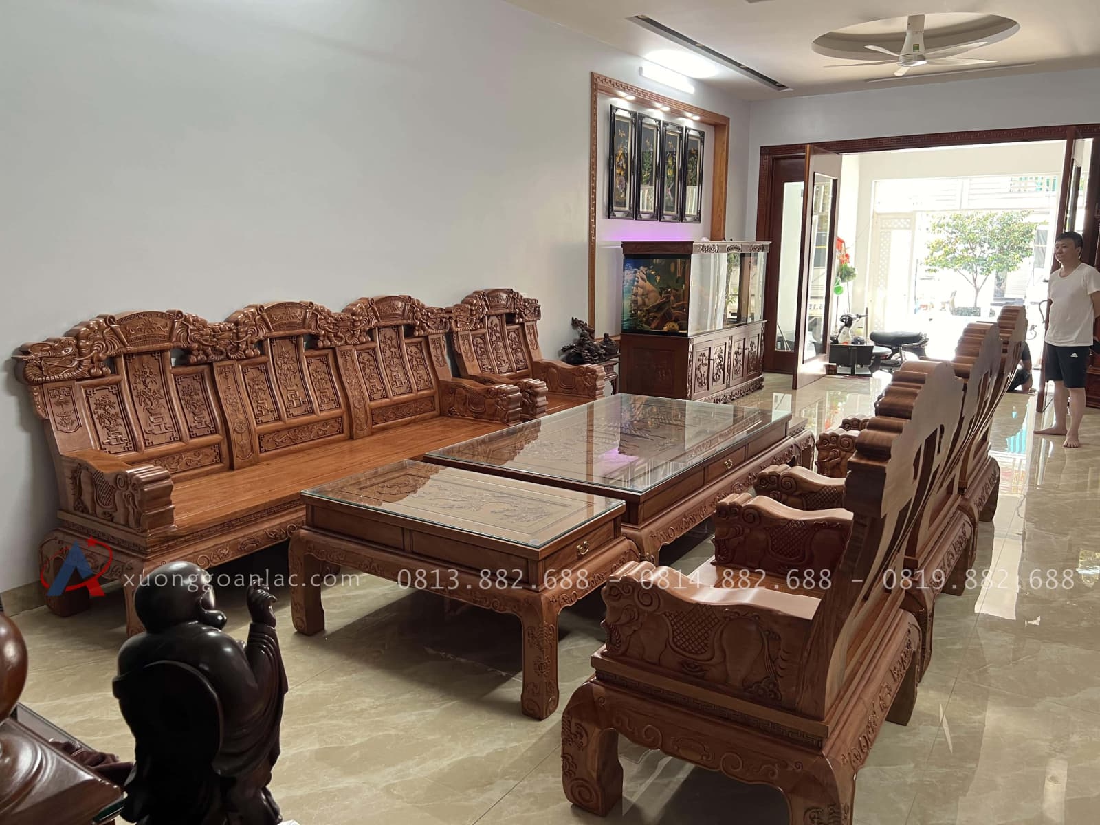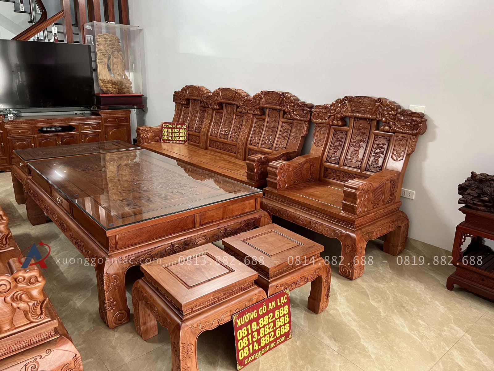 [Hoàn thiện] Bộ bàn ghế Âu Á voi Như Ý 10 chân 14 món gỗ hương đá cao cấp