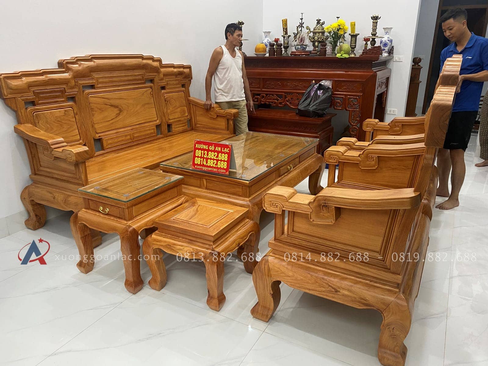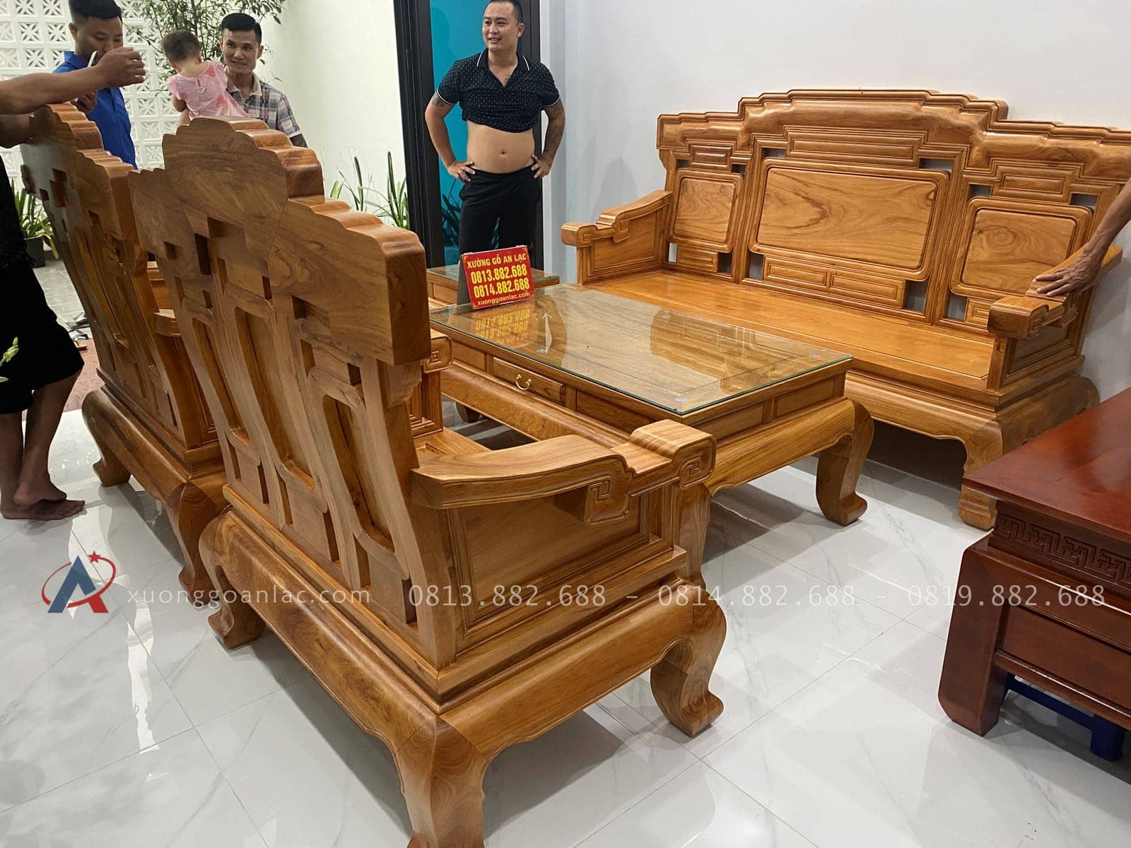 [Hoàn thiện] Bộ bàn ghế Kim Khánh 2m3 gỗ gõ đỏ cao cấp (Chú Tuyên, Bắc Giang)