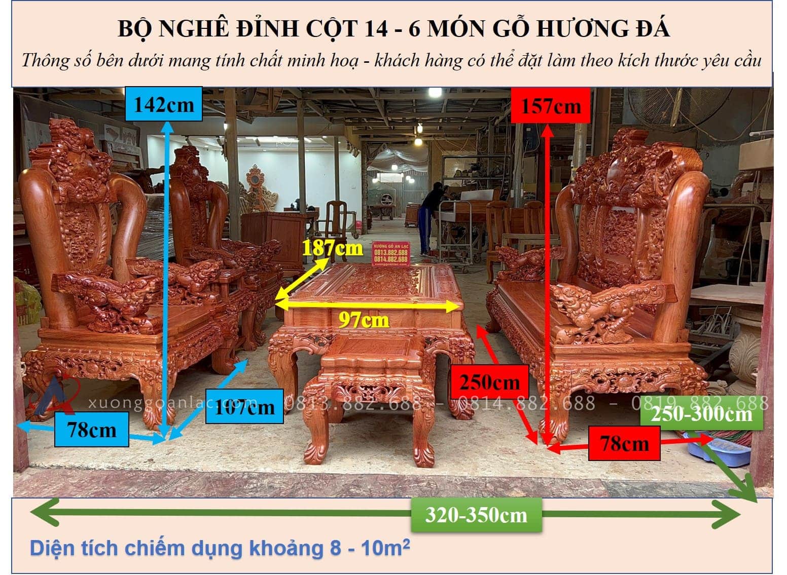 [Hoàn thiện] Bộ bàn ghế minh quốc nghê cột 14 6 món gỗ hương đá