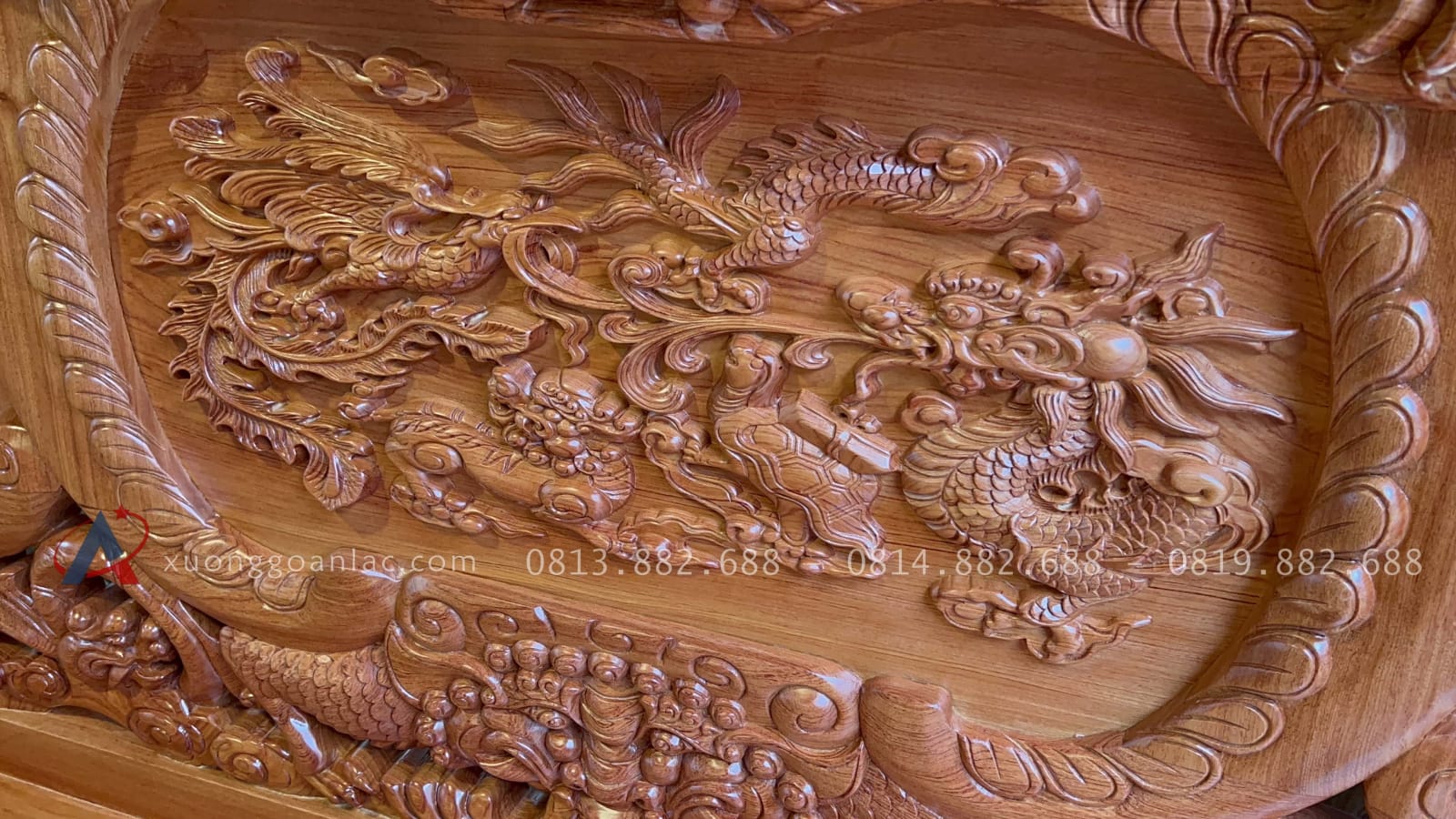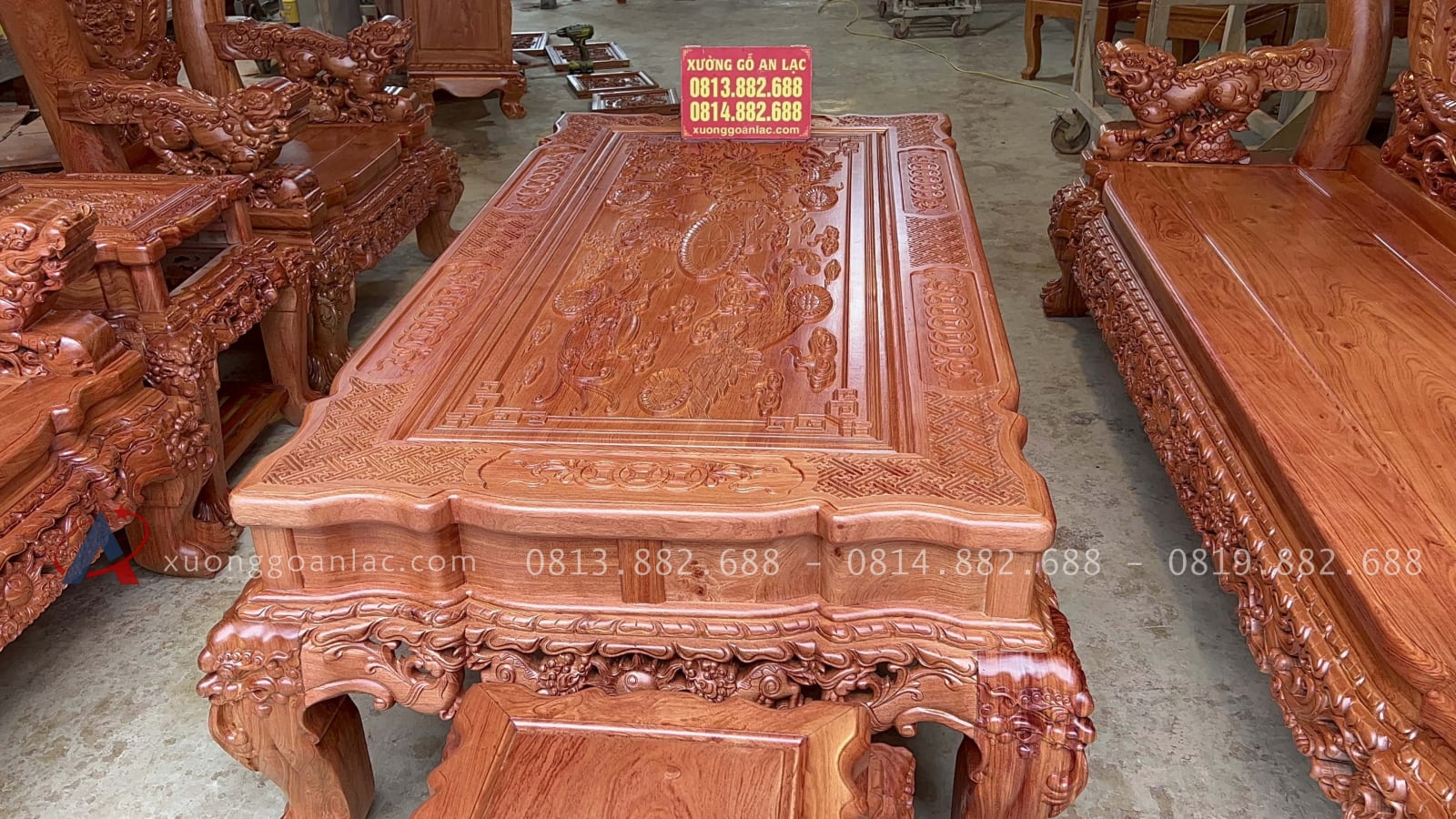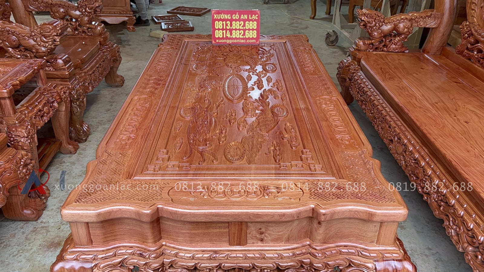 • Mặt bàn: Chạm tứ linh, Chữ nhật, Có khuôn tranh