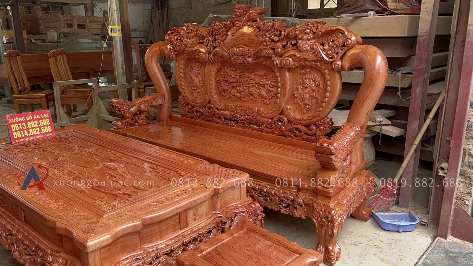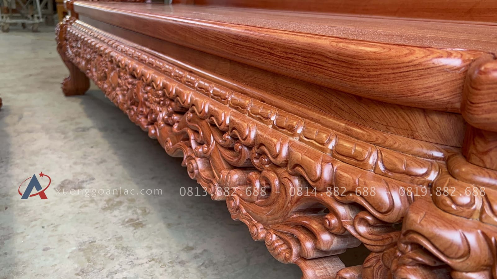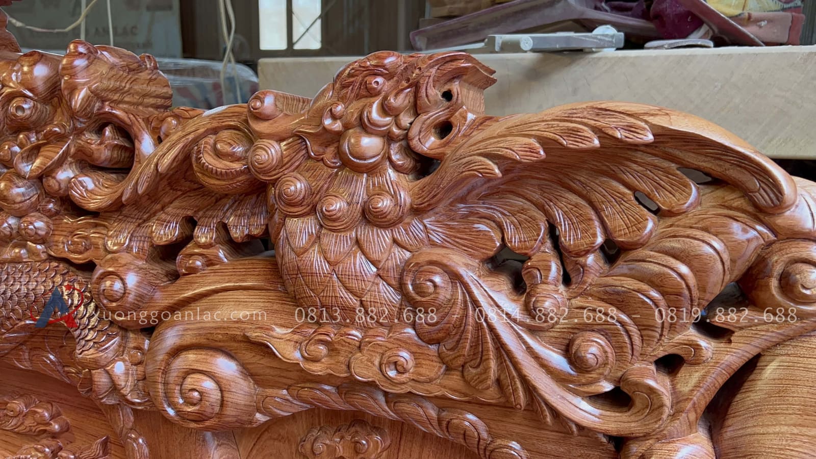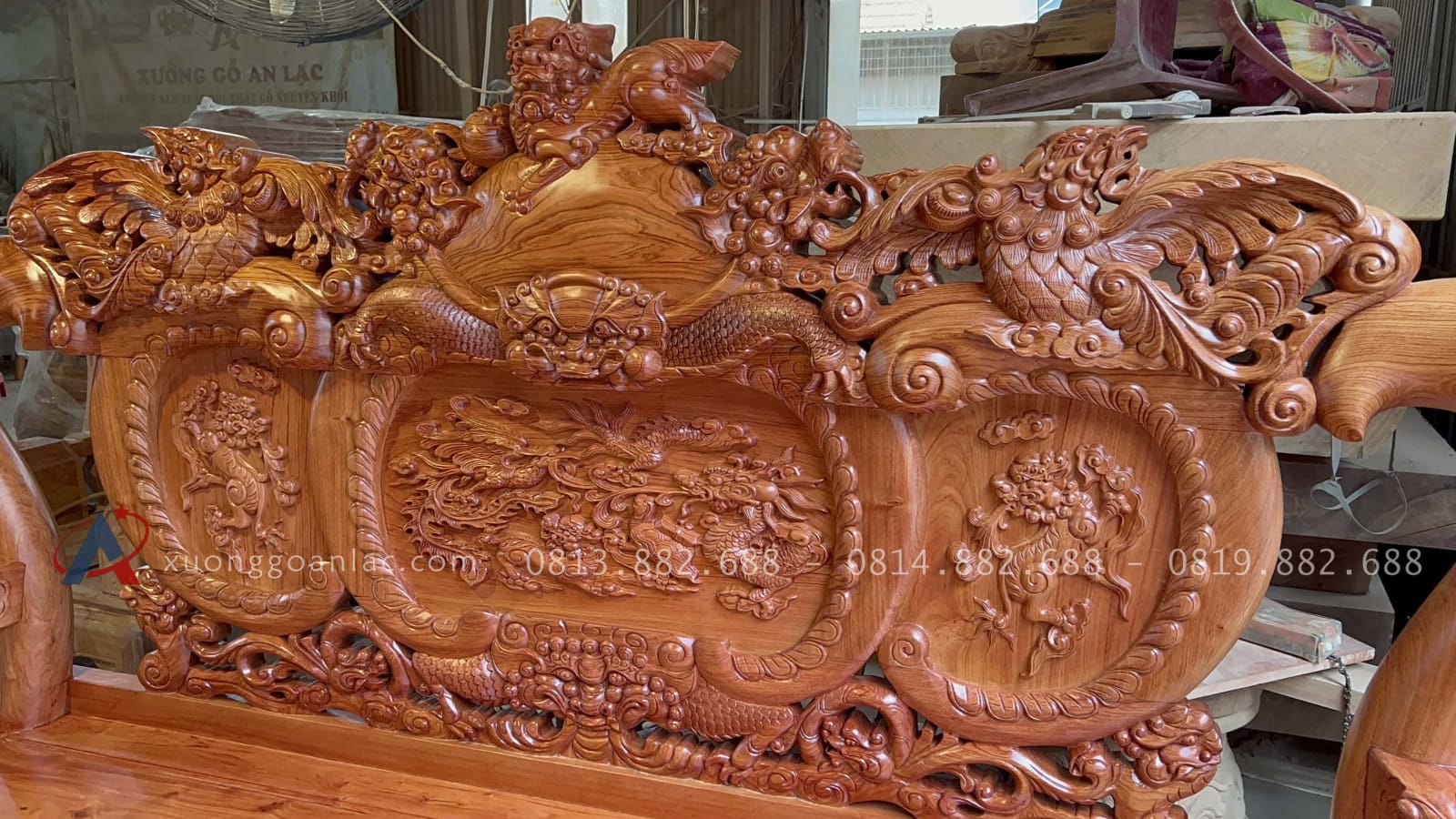 • Mặt bàn: Chạm tứ linh, Chữ nhật, Có khuôn tranh