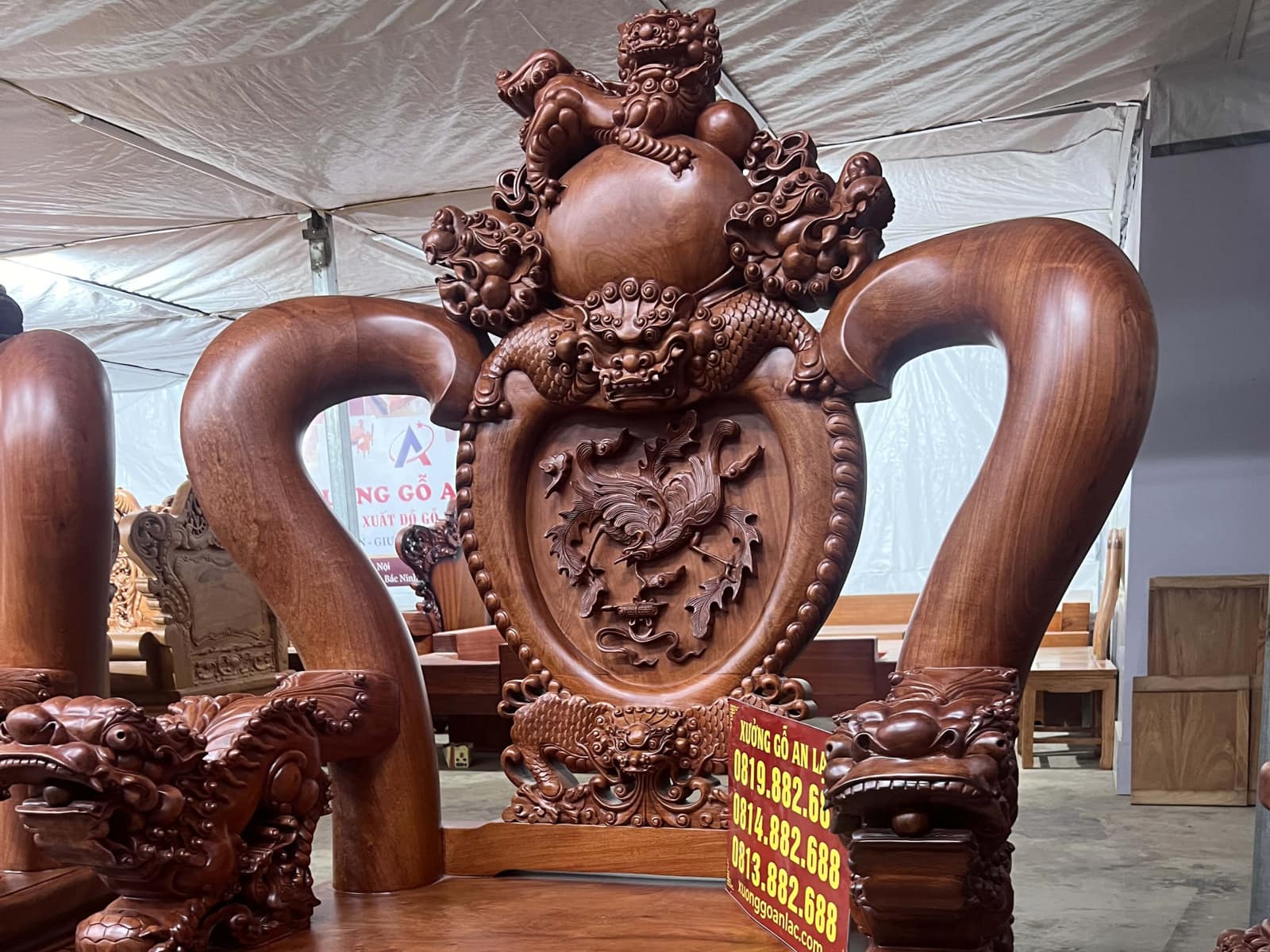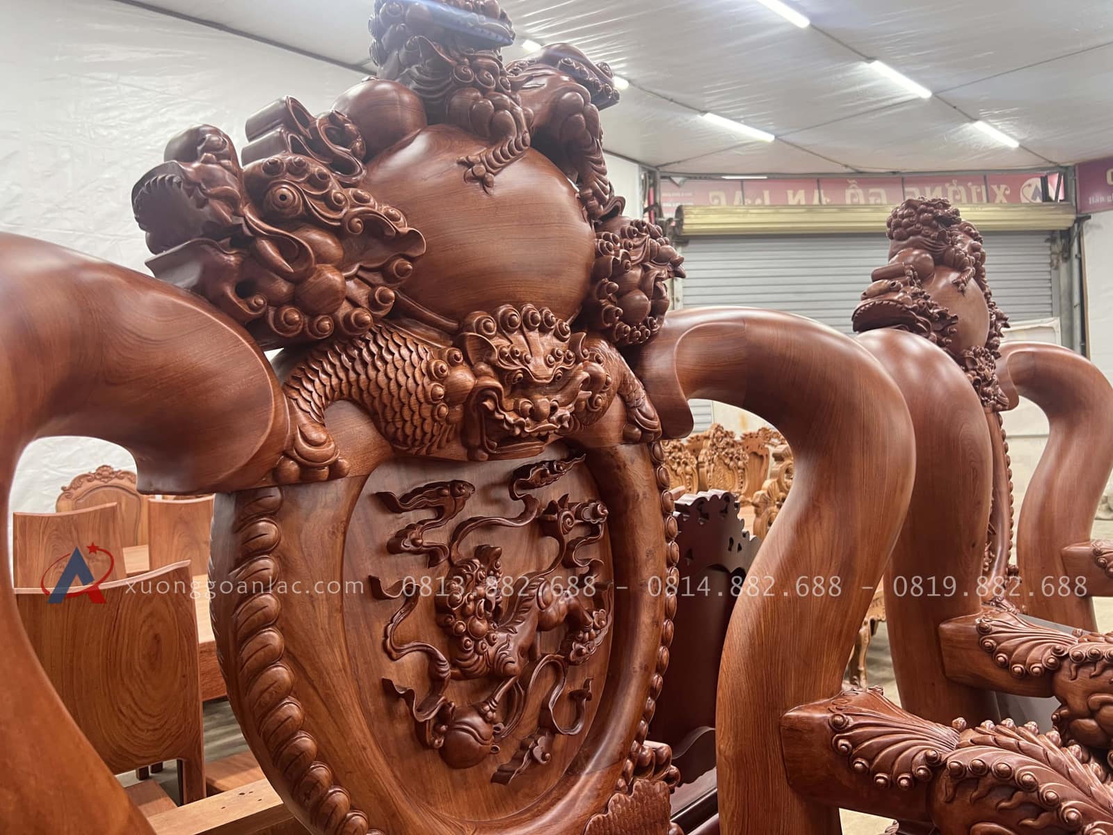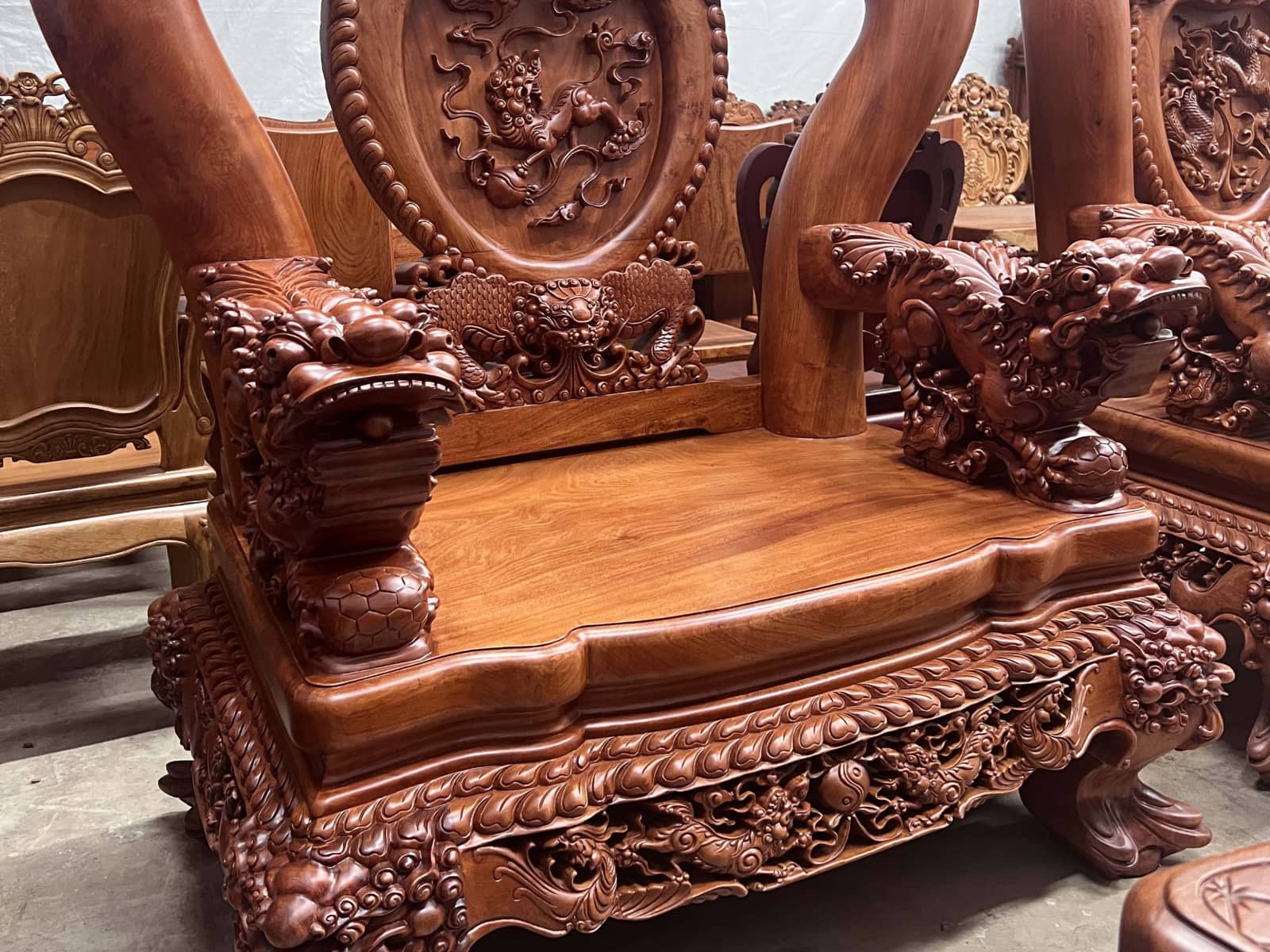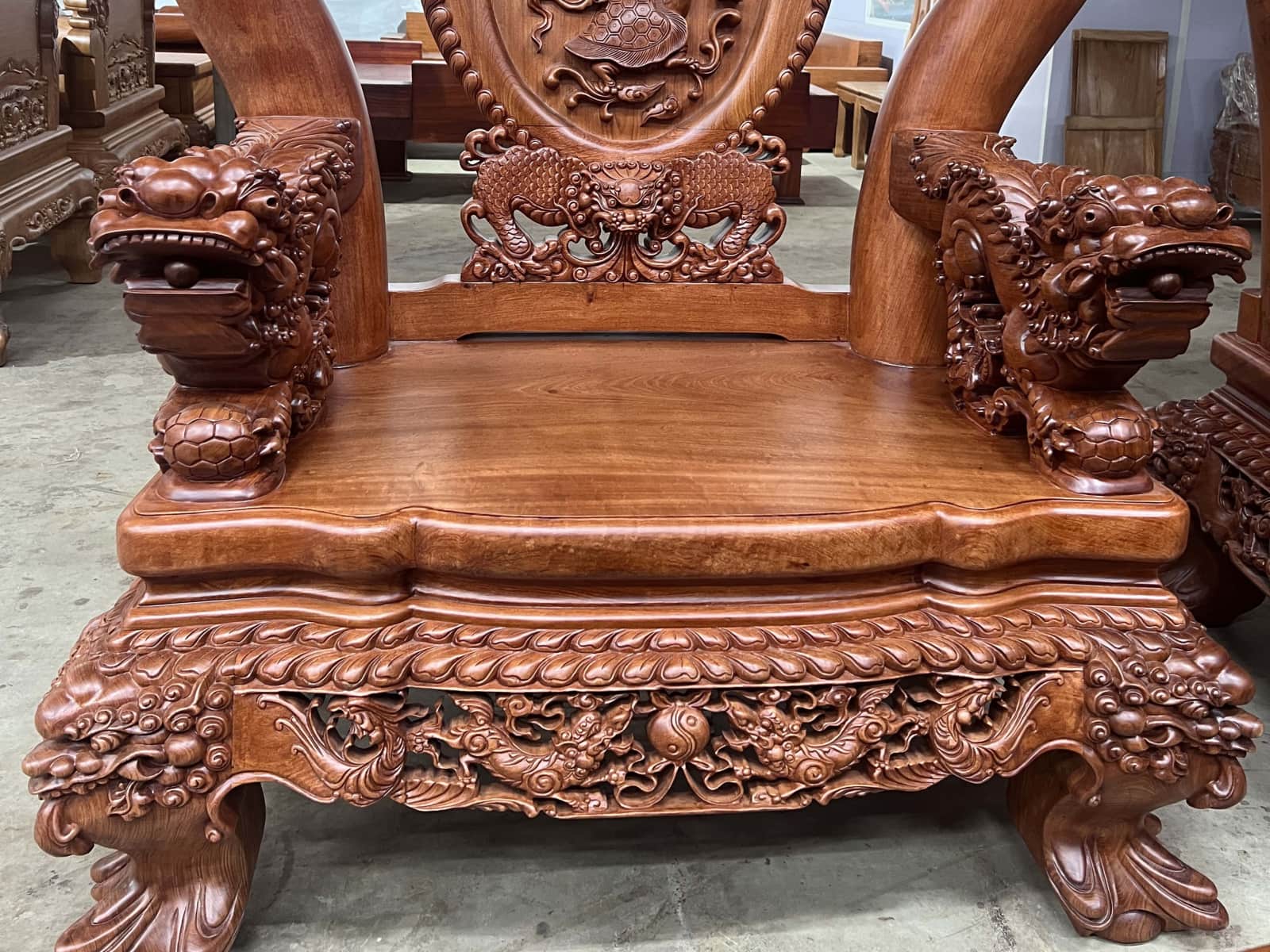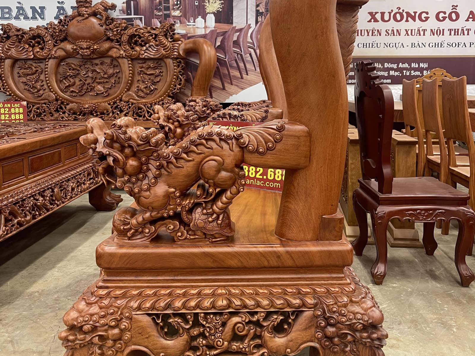 [Hoàn thiện] Bộ bàn ghế minh quốc nghê gỗ hương đá tay 18 chân 20 siêu vip